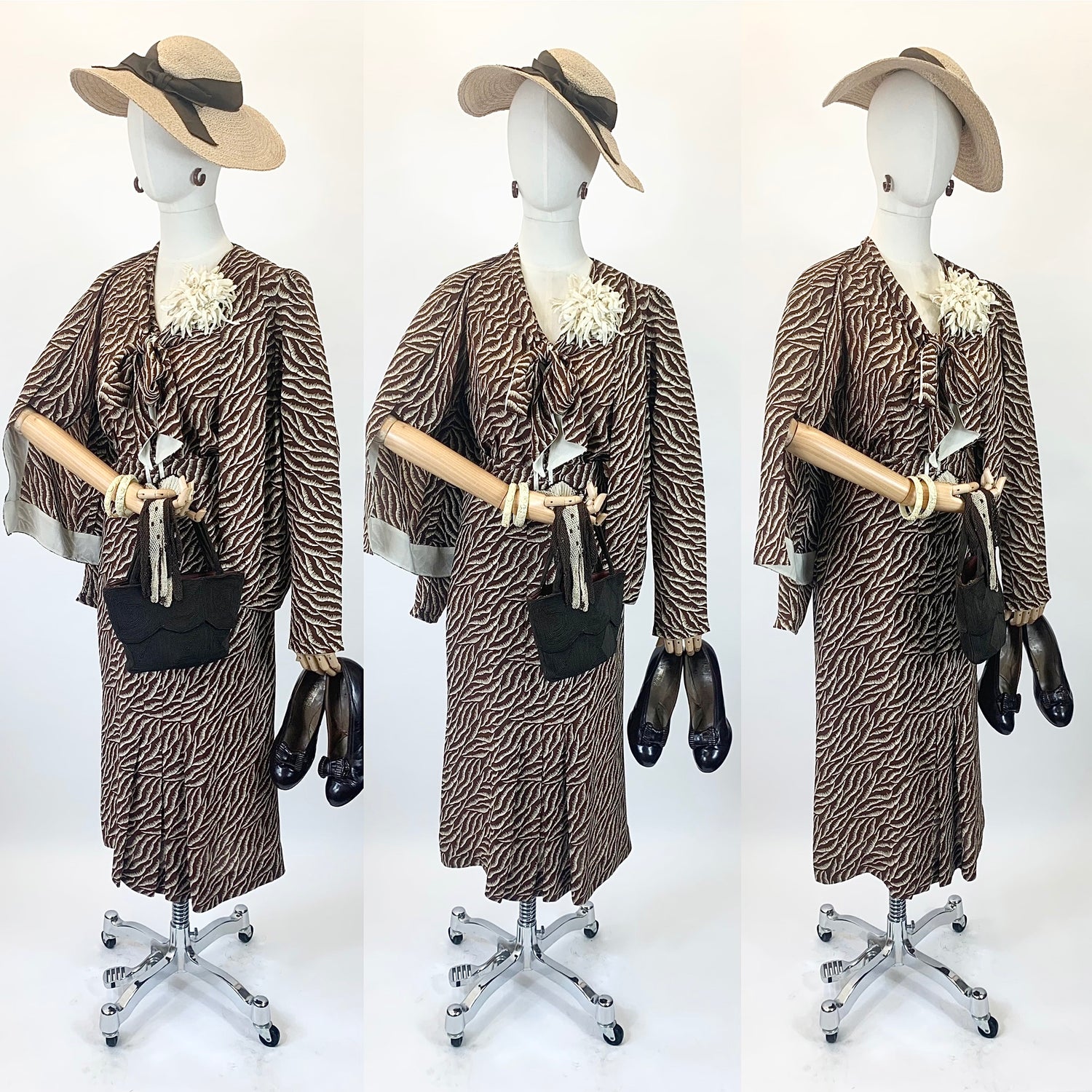 Original 1940's Stunning Floral Rayon dress in tonal golds and stencilled black