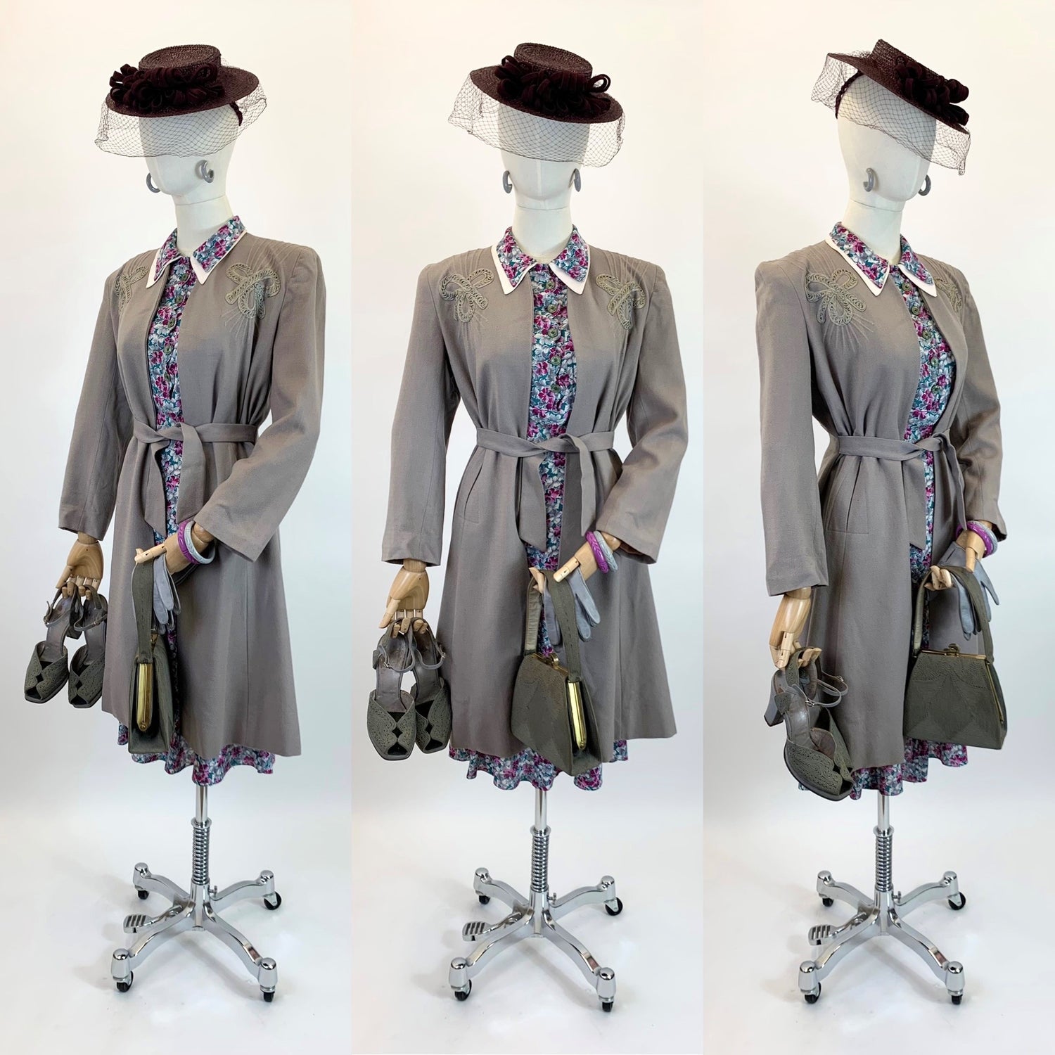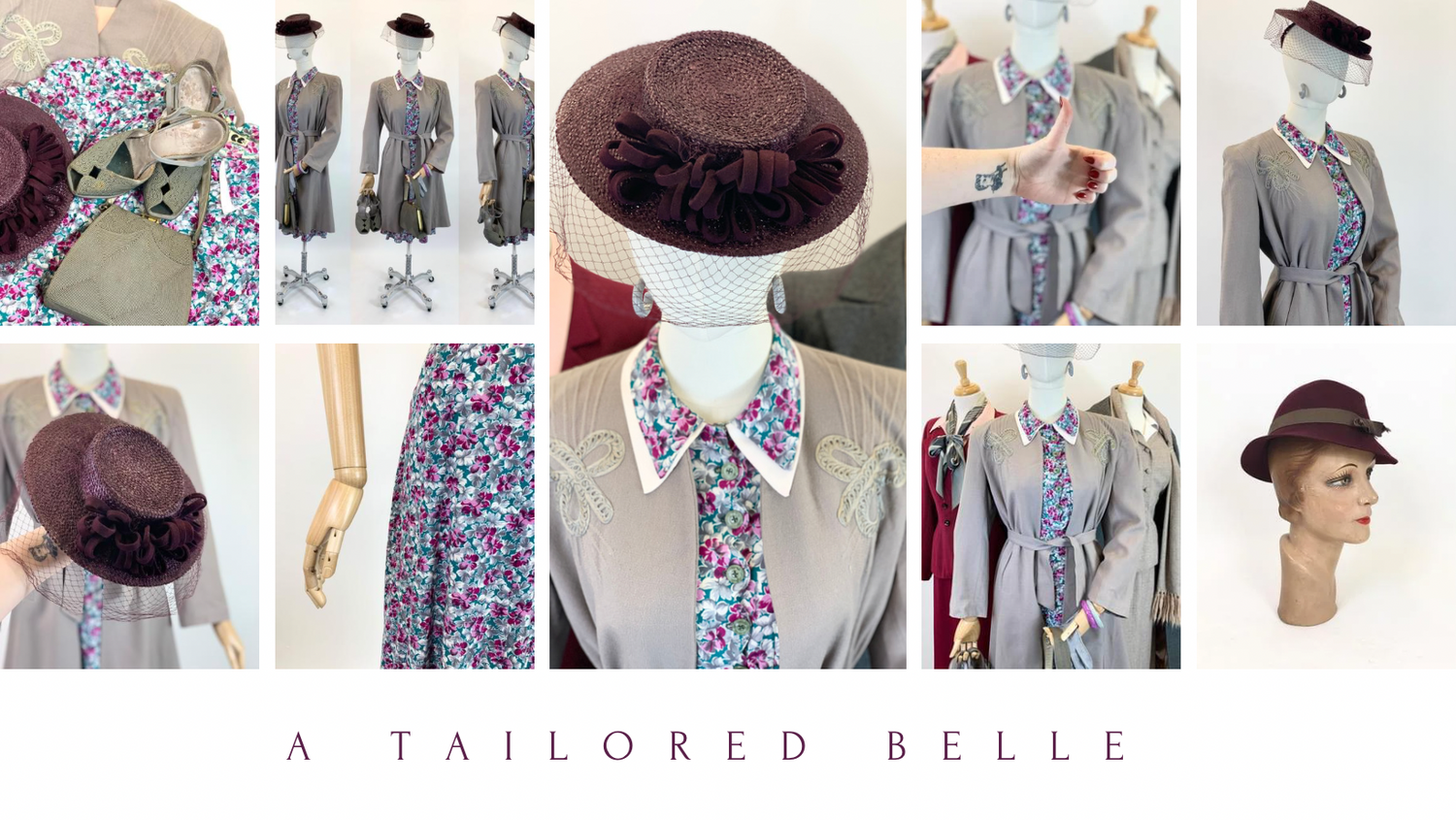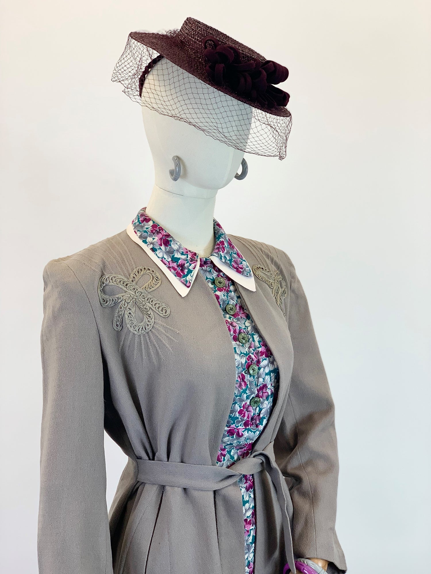 Original 1940's STUNNING 3pc Suit - In Soft Fawn with A Draped Tasselled Scarf