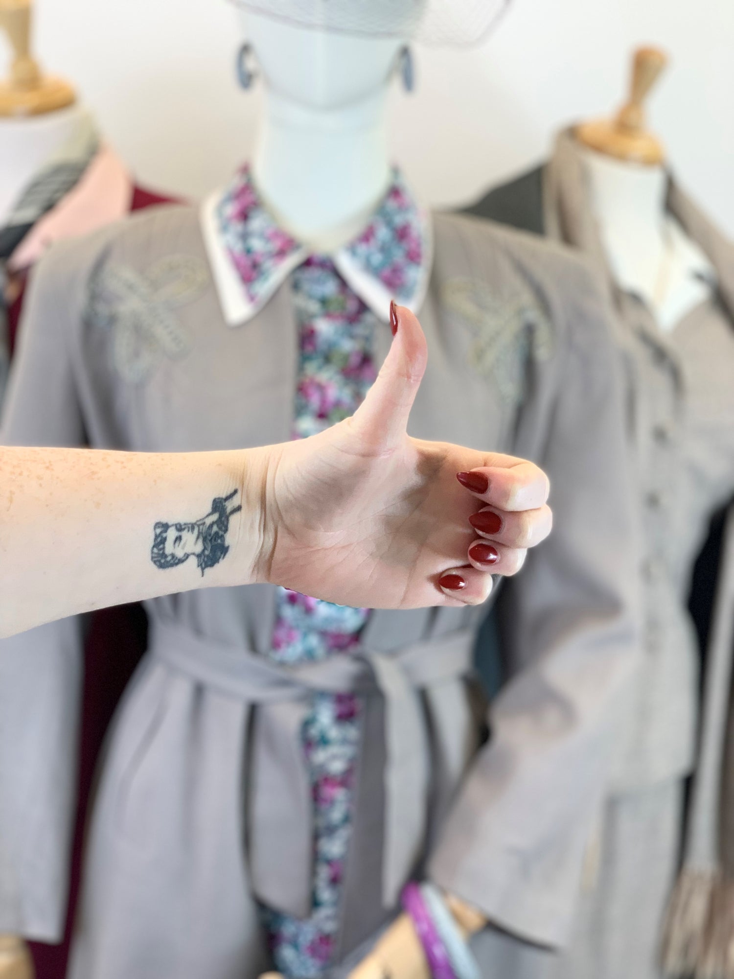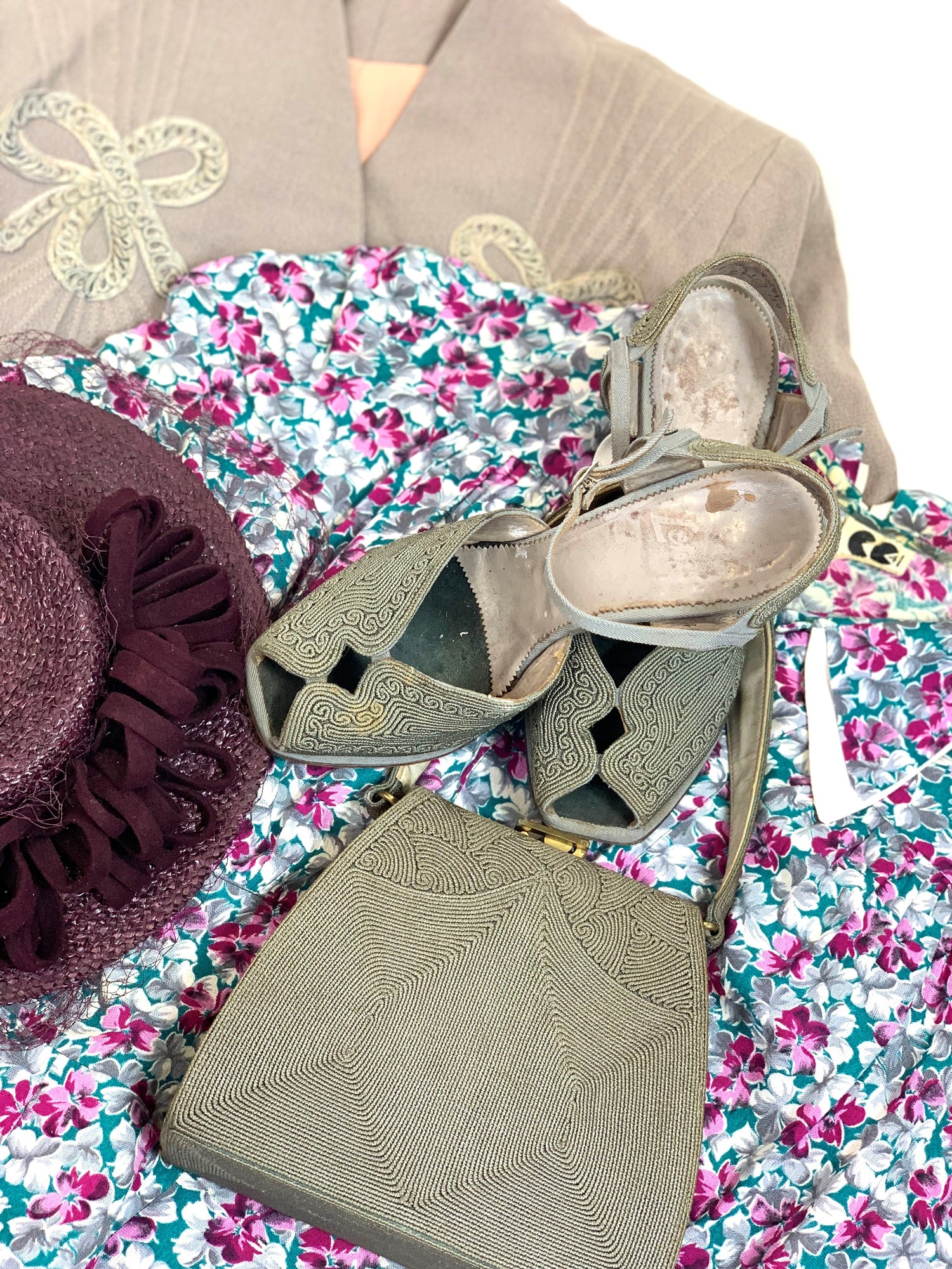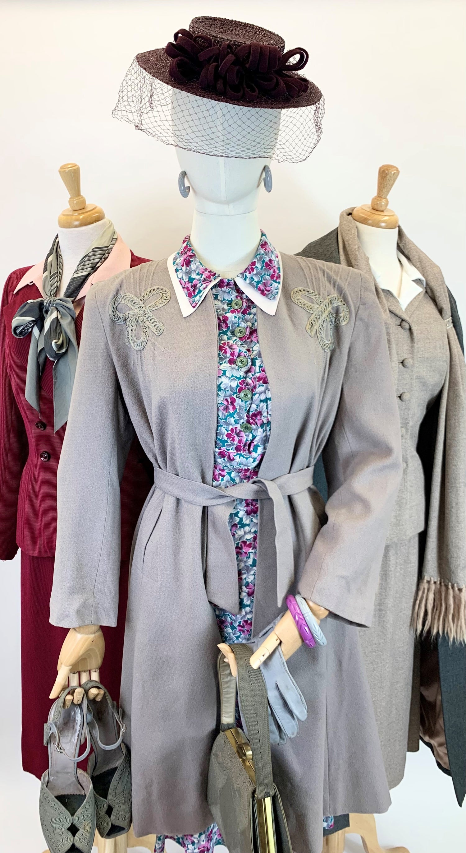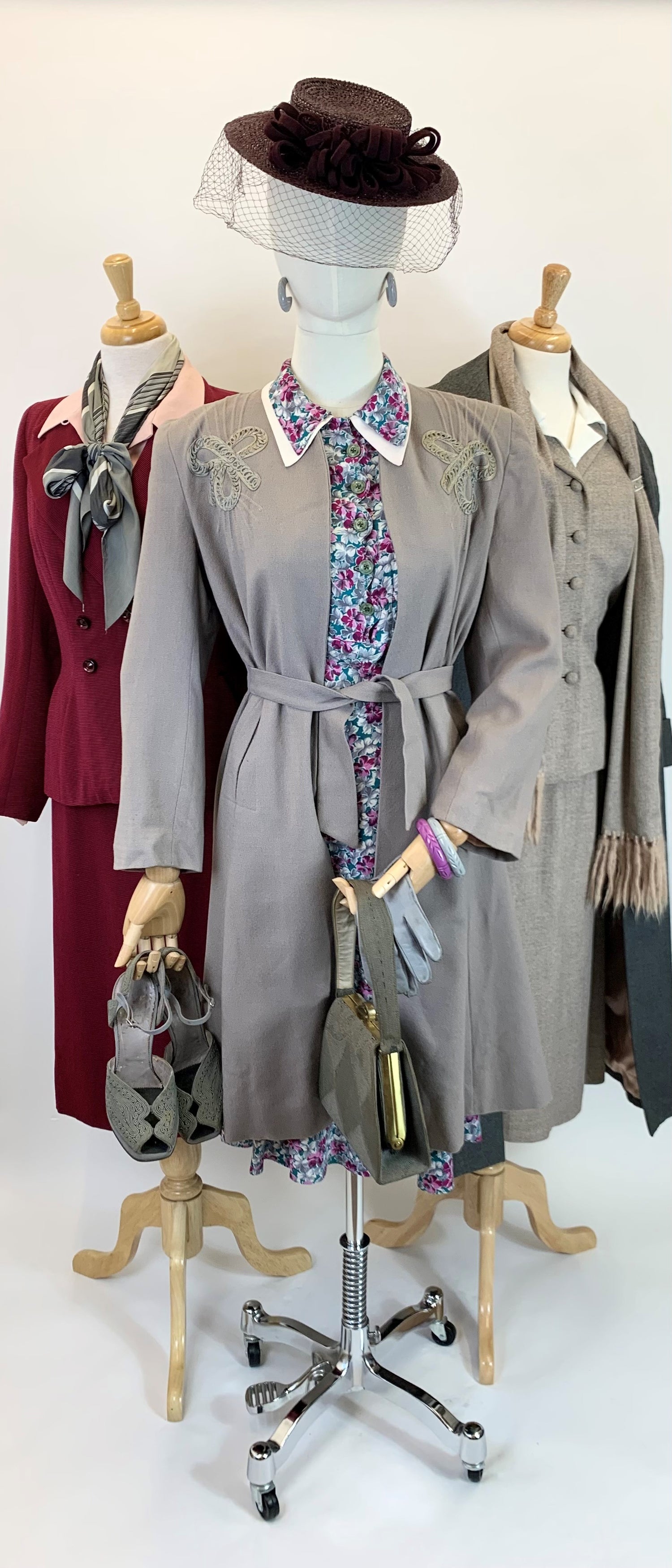 Original 1940's STUNNING 3pc Suit - In Soft Fawn with A Draped Tasselled Scarf