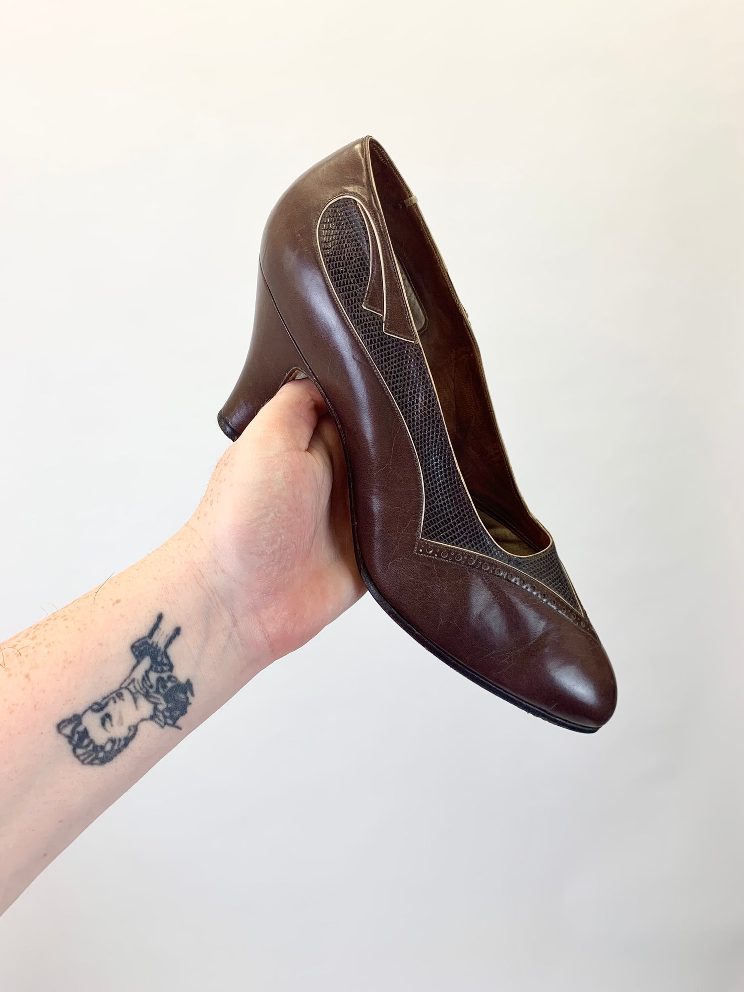 Original 1930's Classic Leather Clutch Handbag - With Handy Internal Compartments