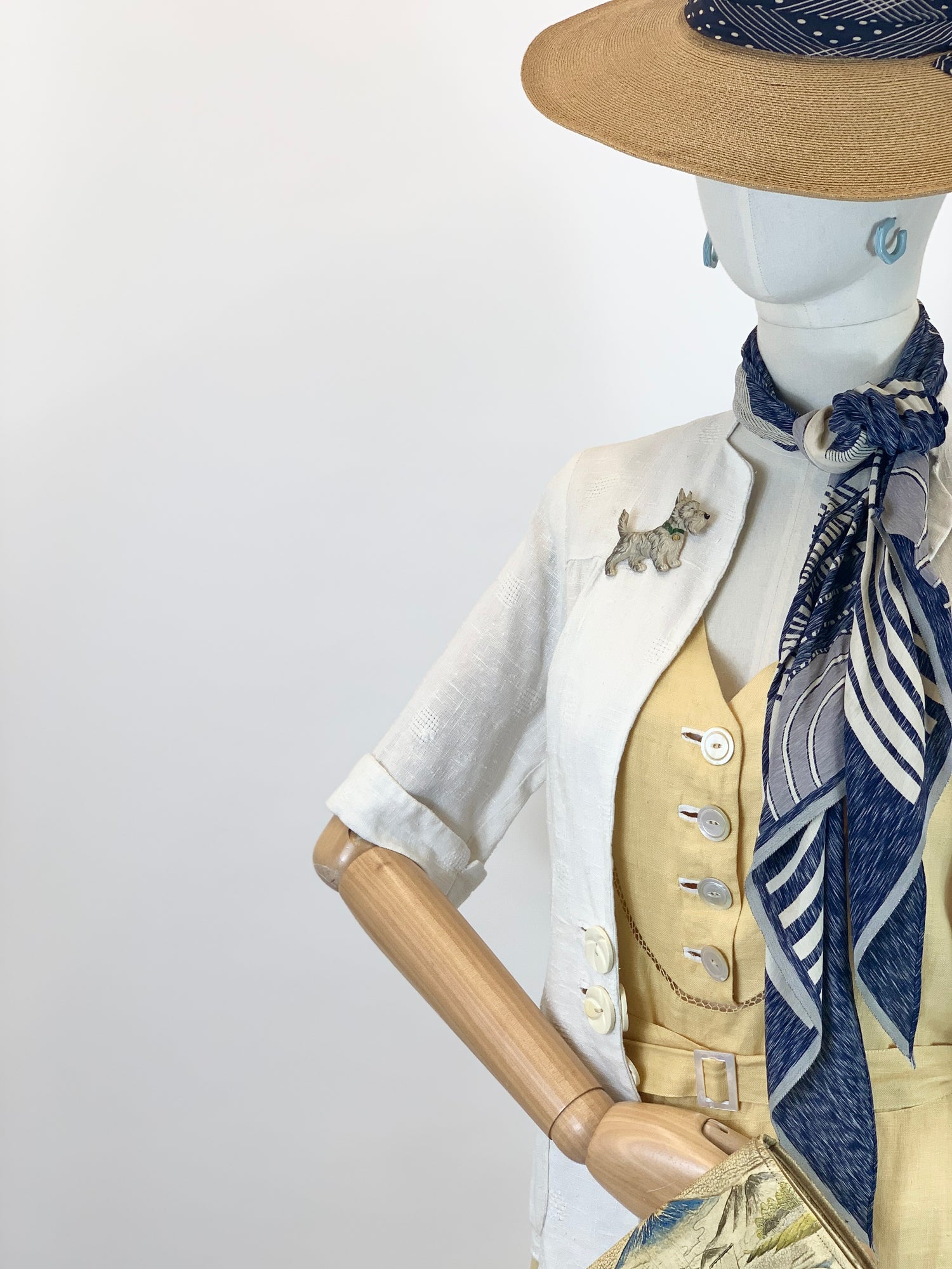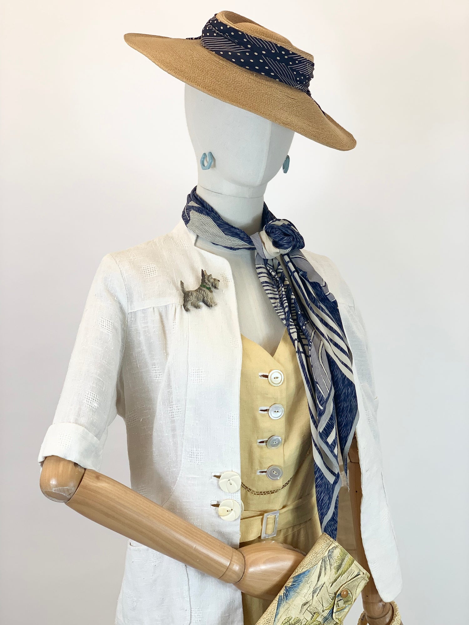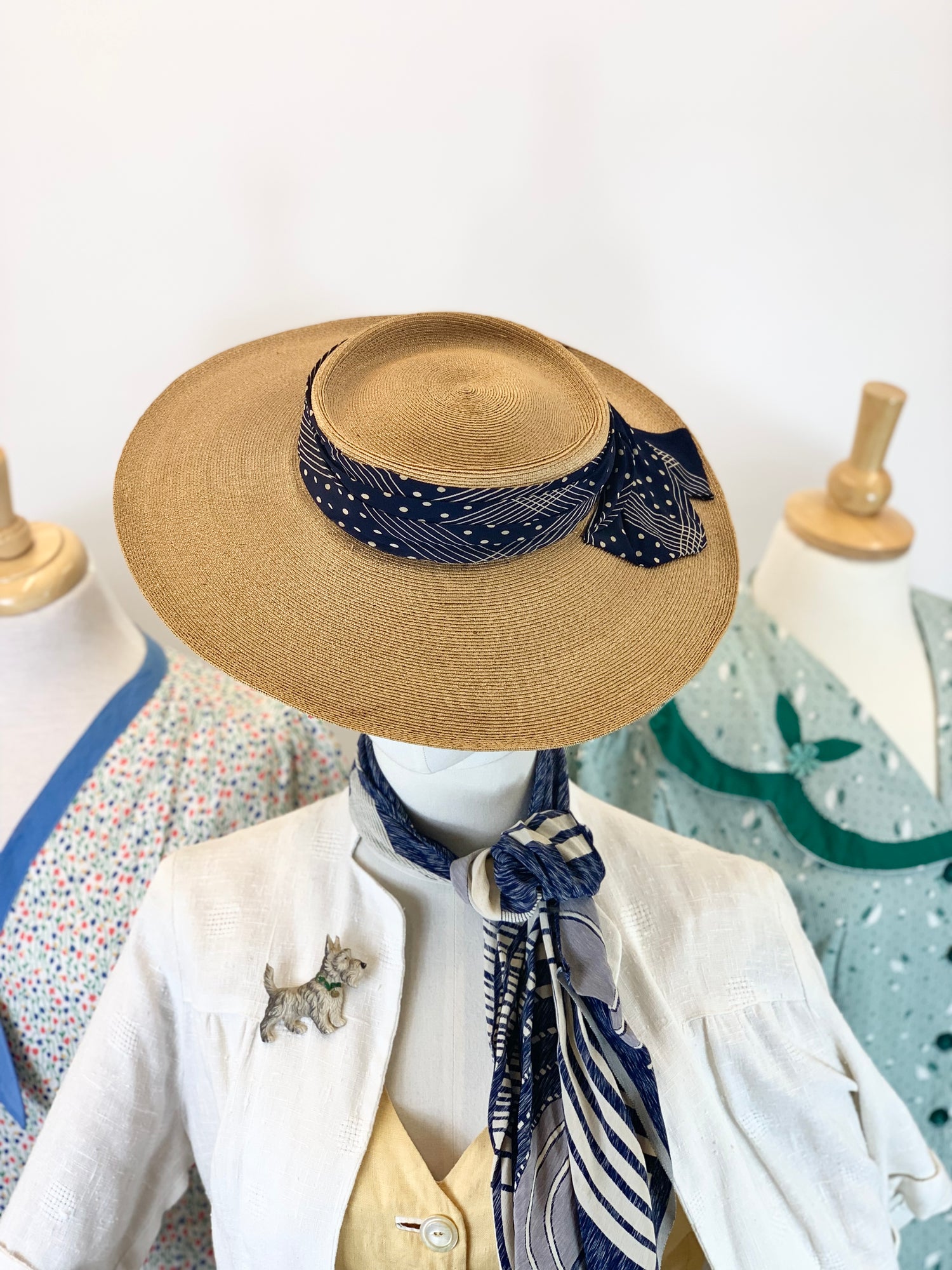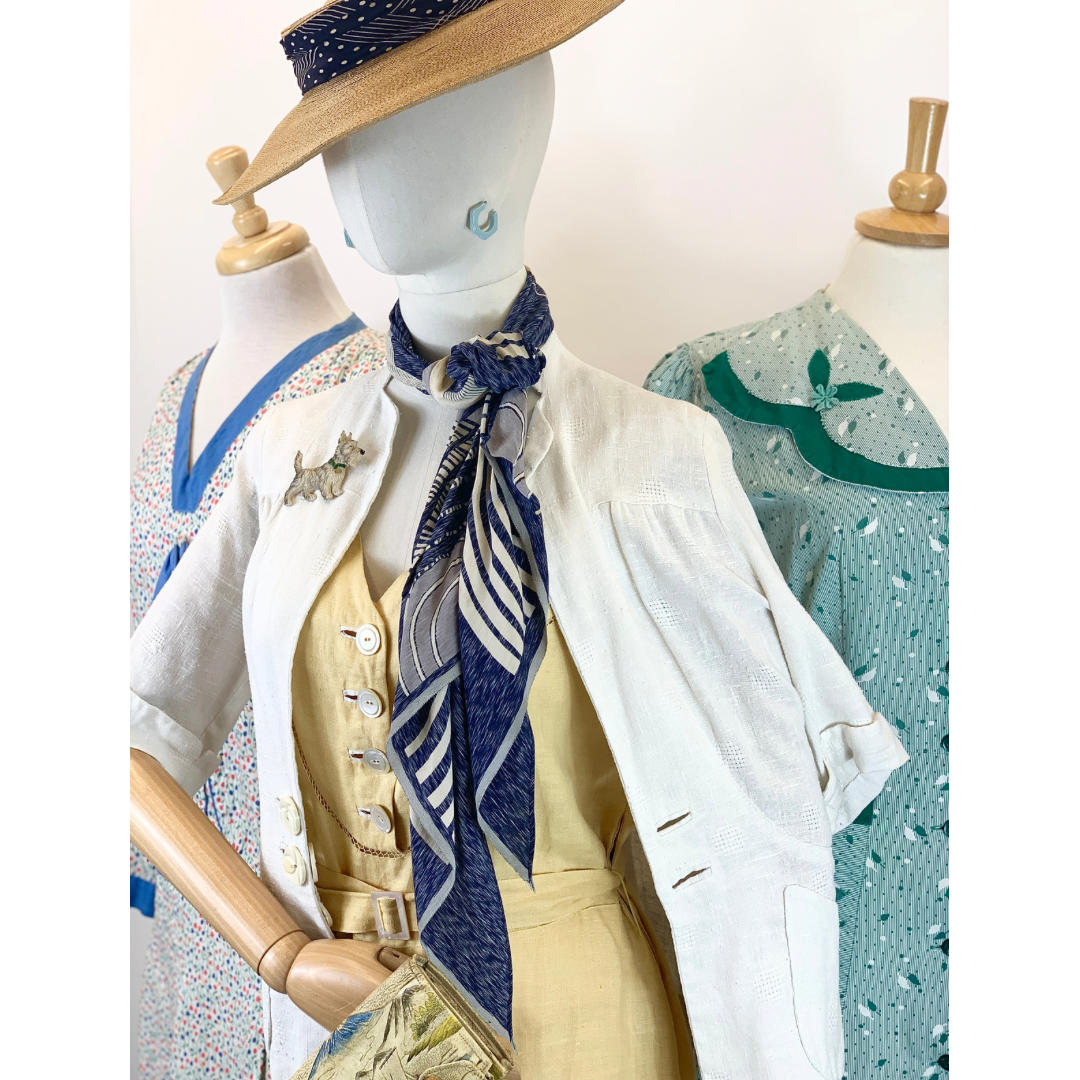 Original 1930s Darling Deco Pointed Scarf - In Navy & Cream