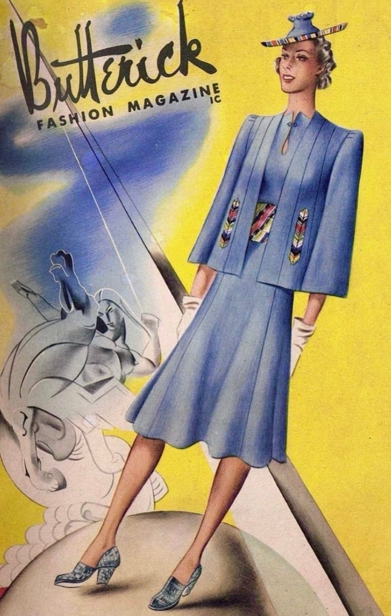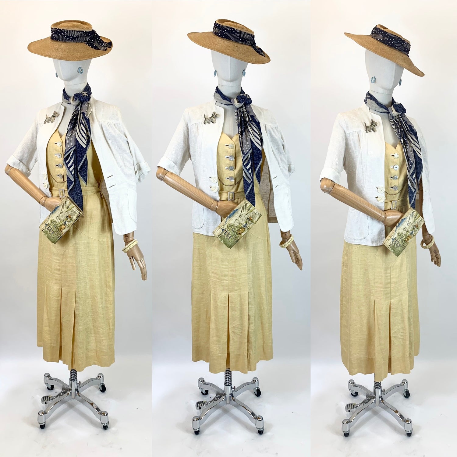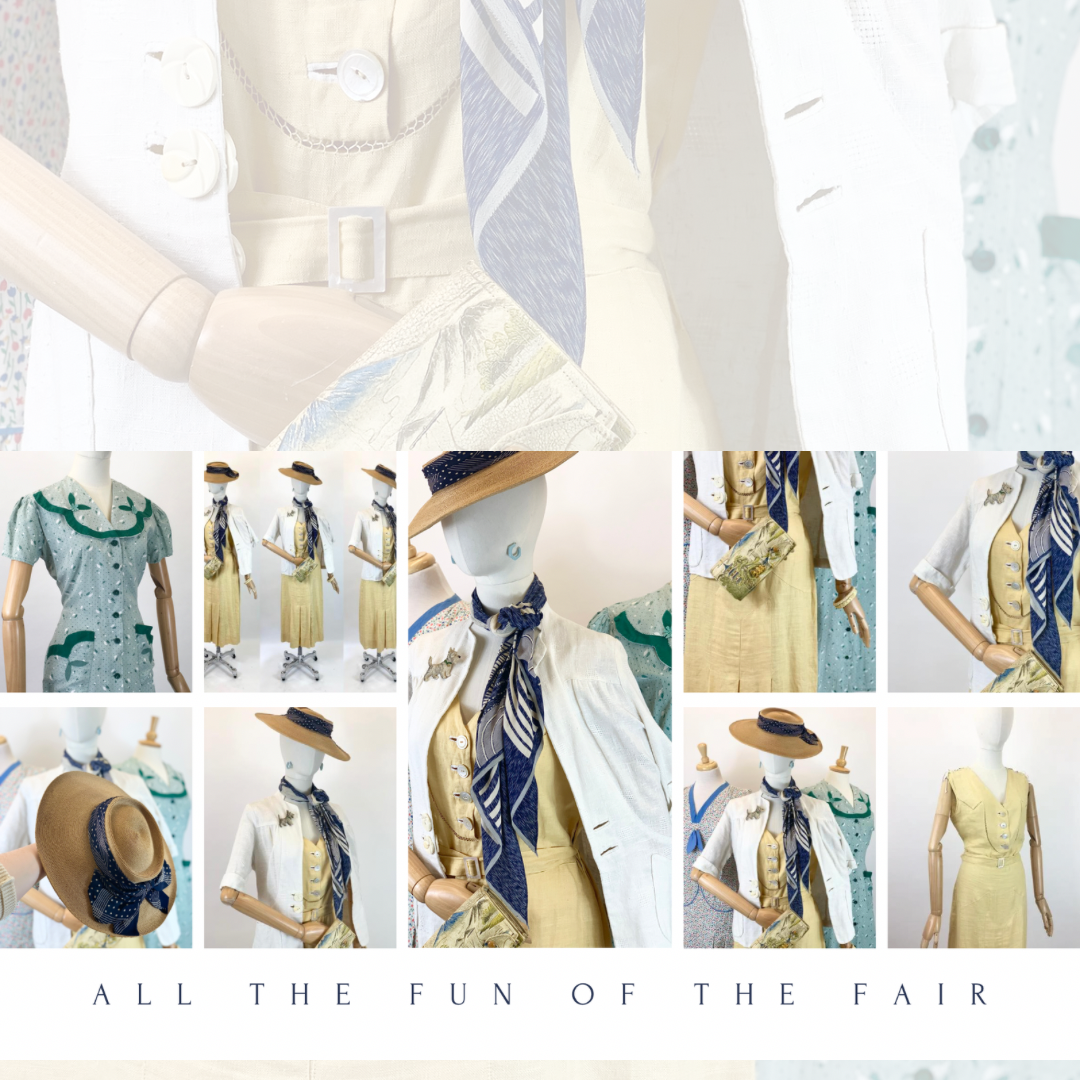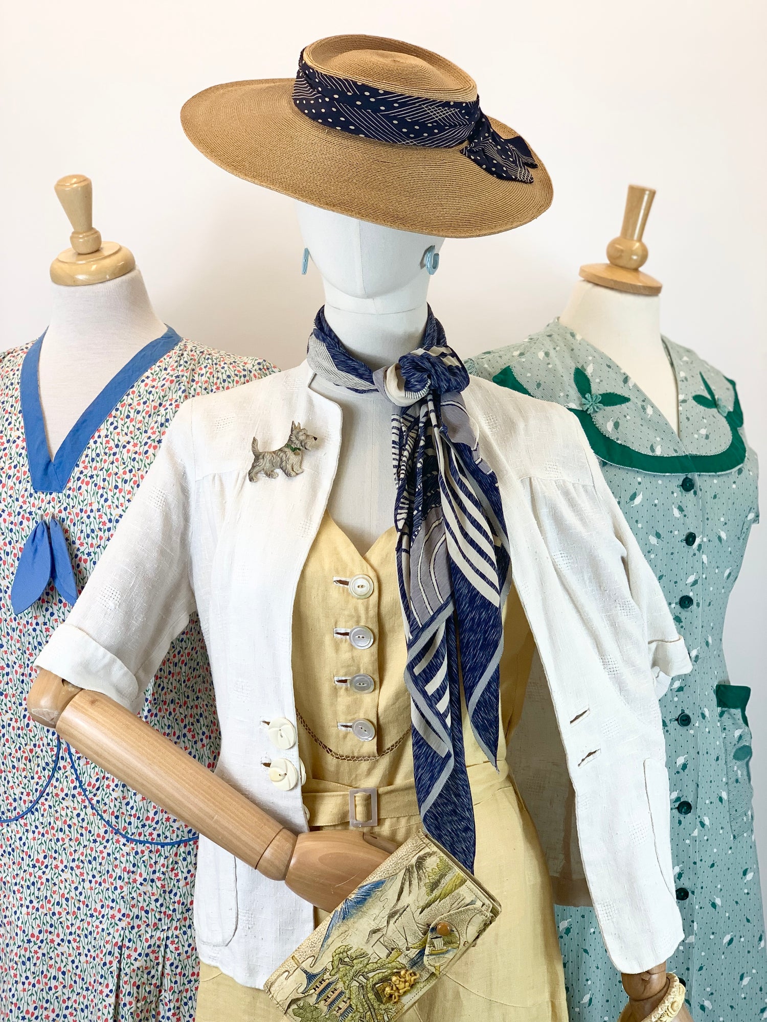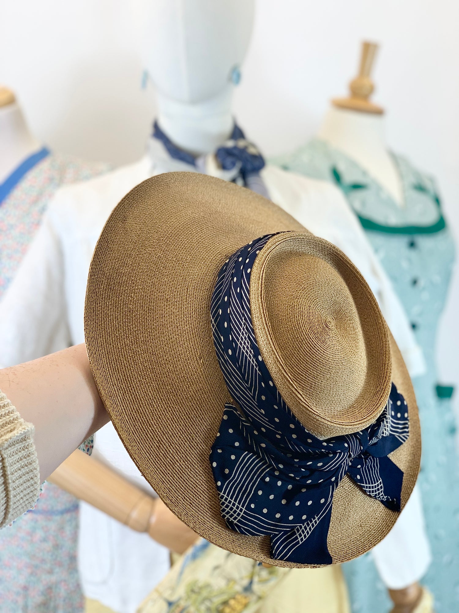 Original 1930s Darling Deco Pointed Scarf - In Navy & Cream