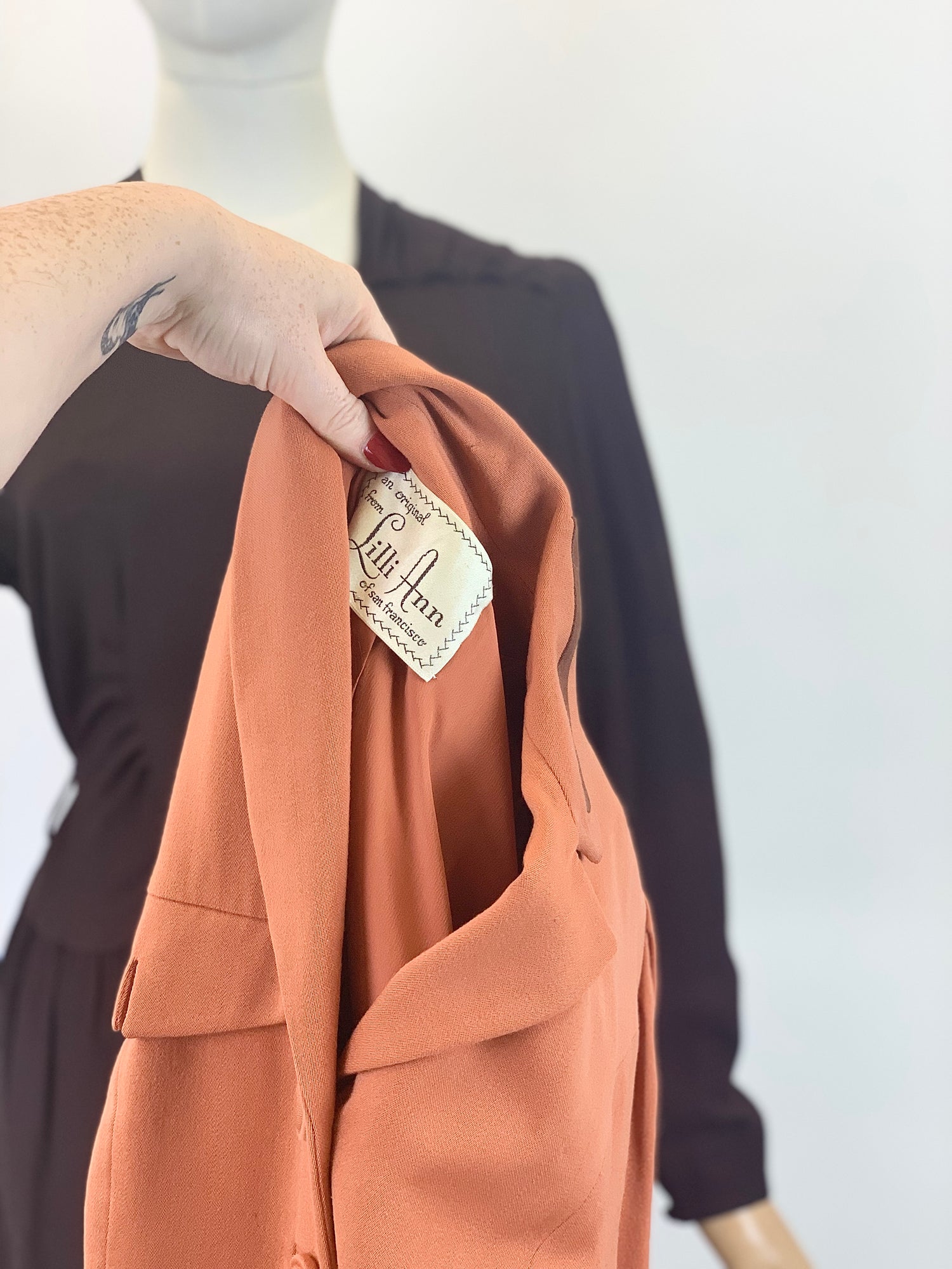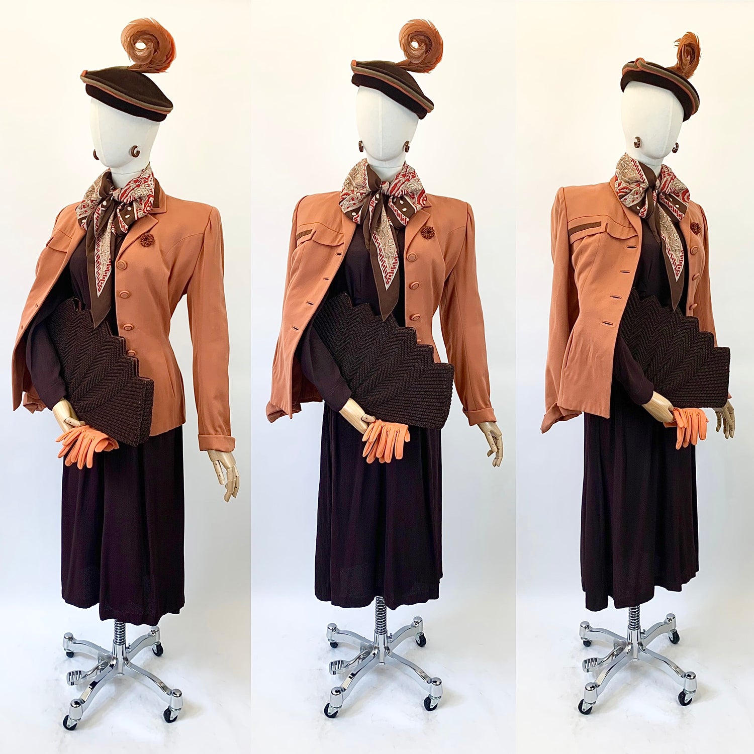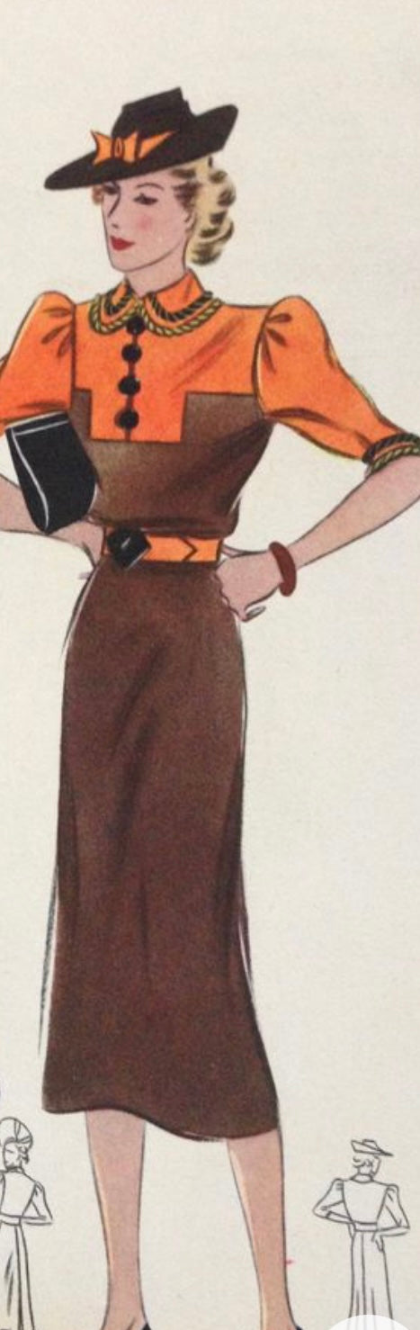 Original 1940’s Double 11 Dinner Plate Label Gown - In Beautiful Tones of Autumnal Hues