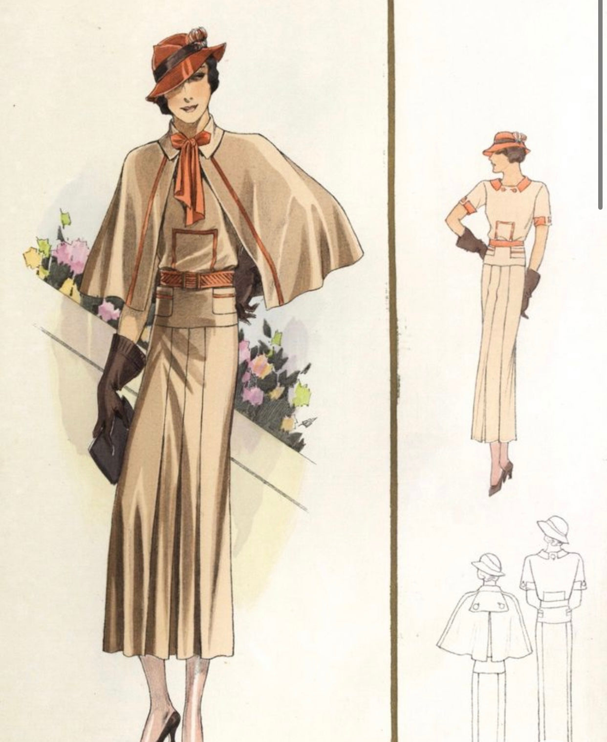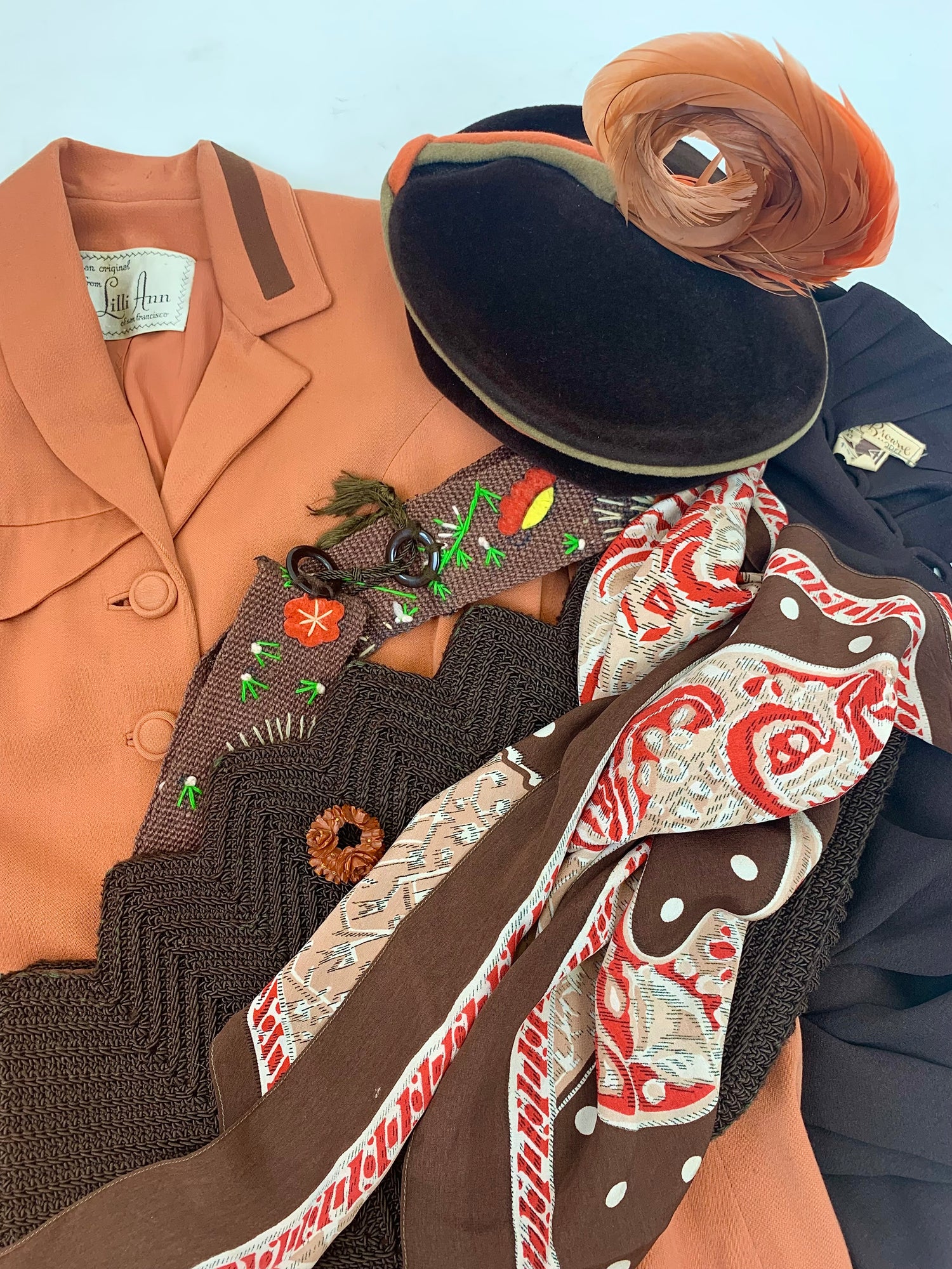 Original 1930's Darling Clutch Fabric Handbag - In a Warm Brown, Soft Orange and Beige Cloth