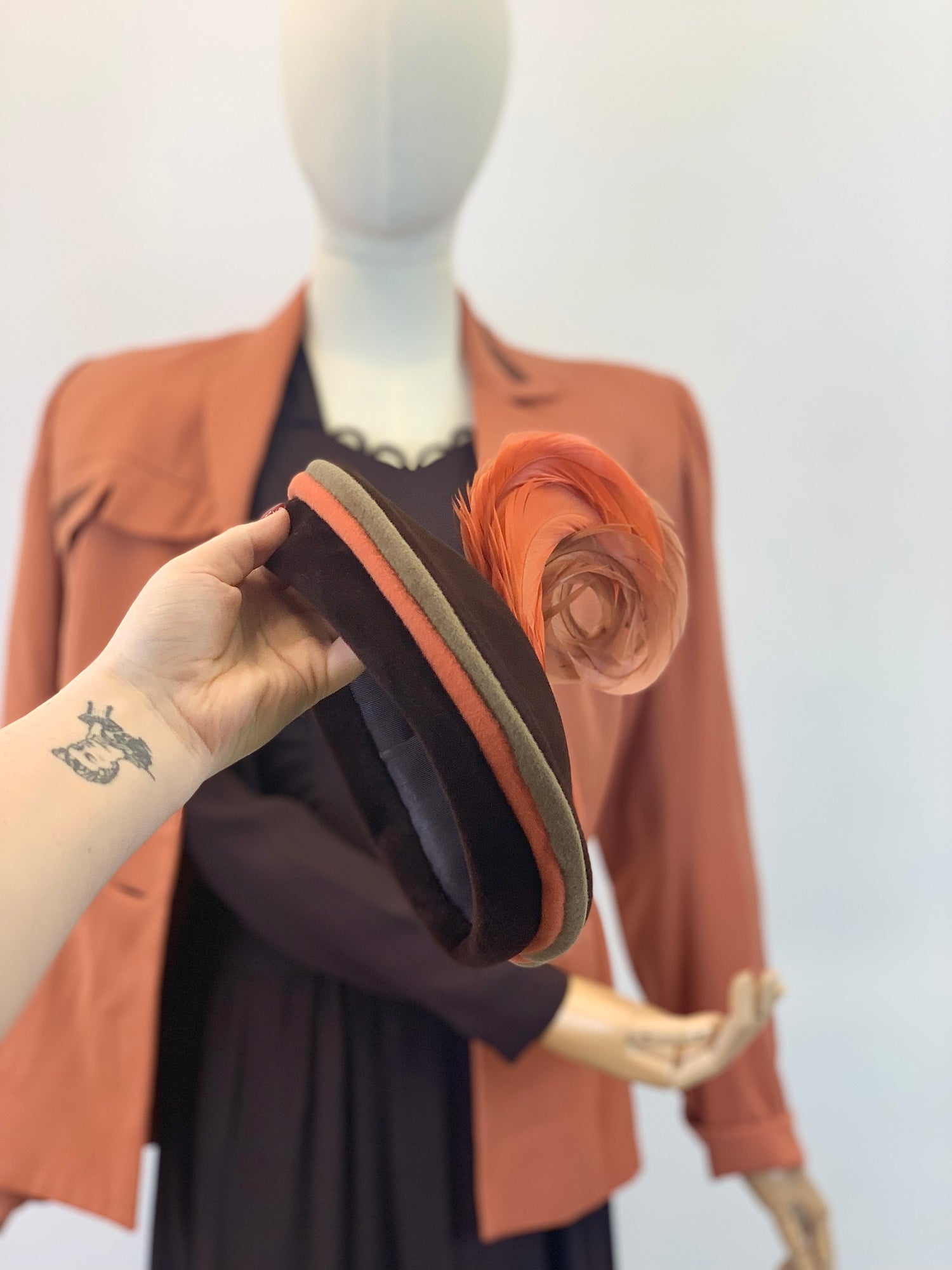 Original 1940's Stunning Wool Turban - In Dark Chocolate Brown