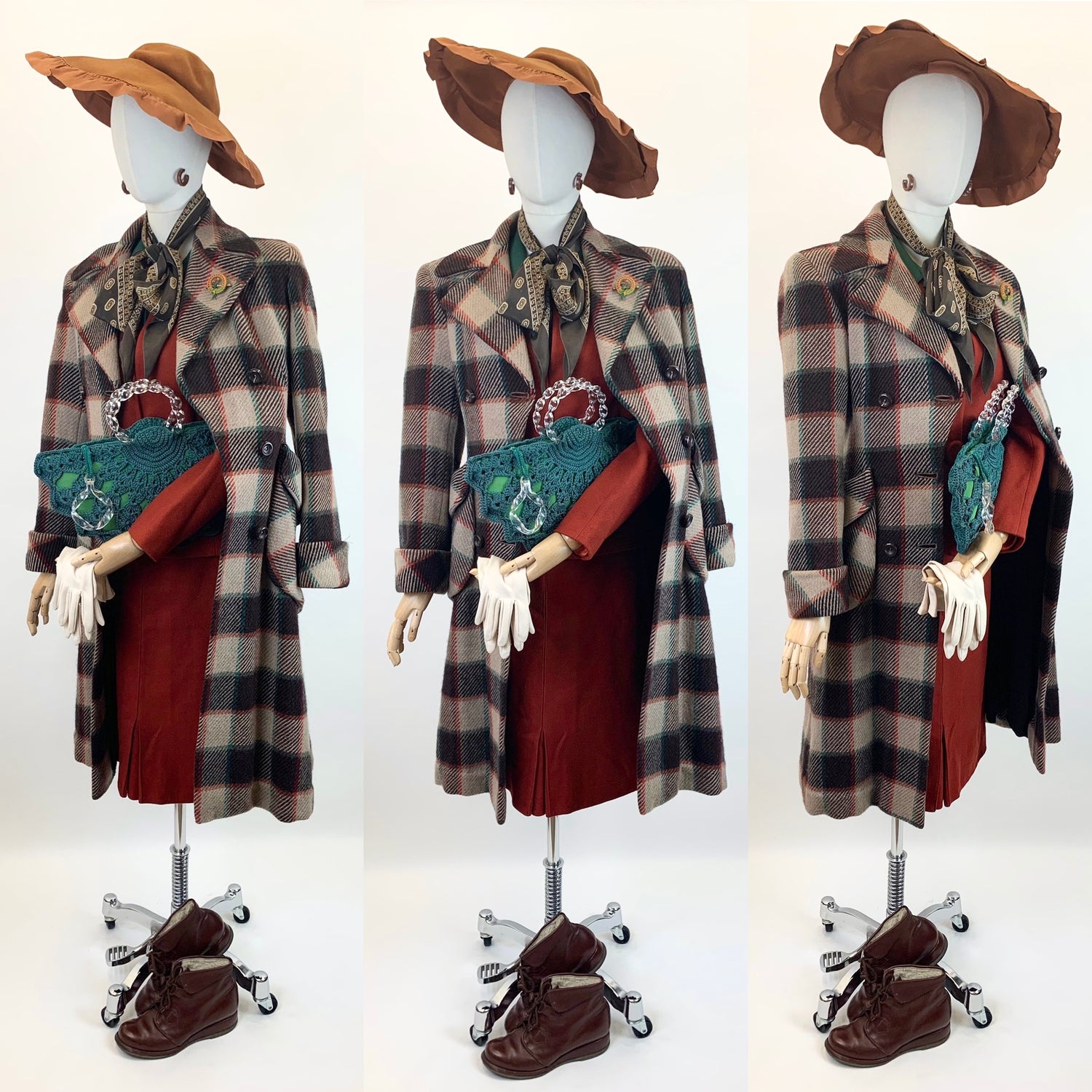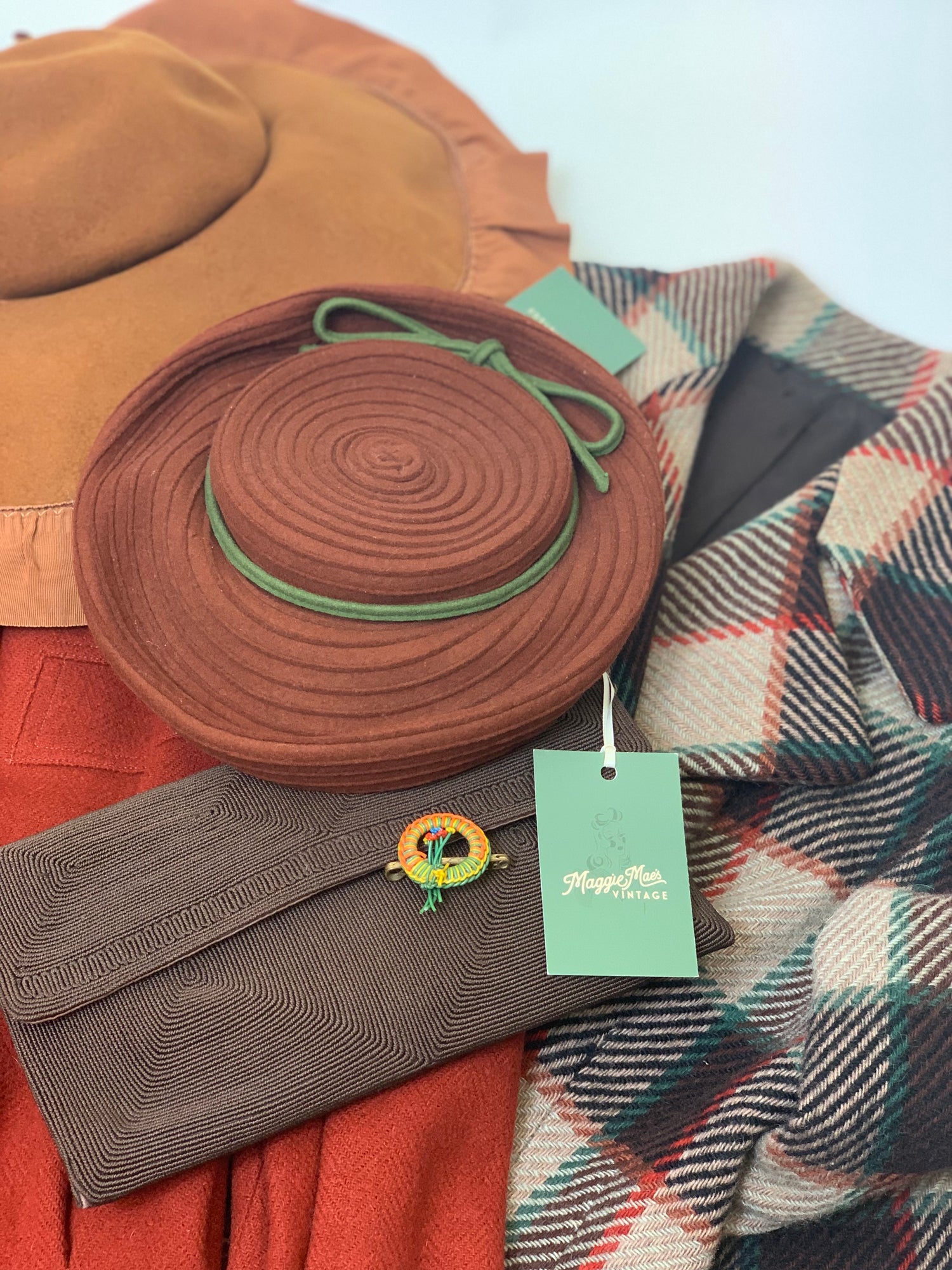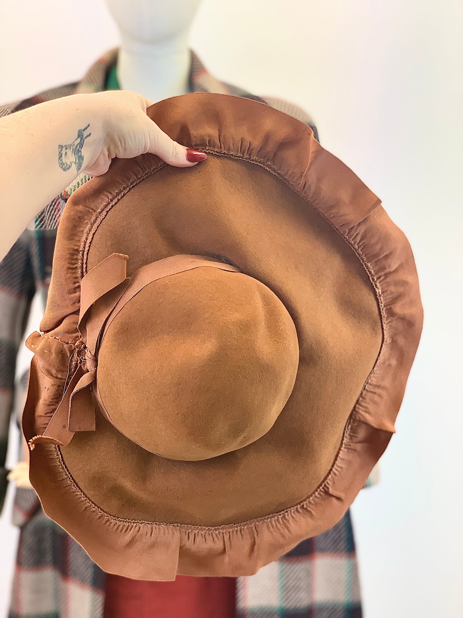 Original 1940's Sensational Brimmed Hat - In Warm Cinnamon With a Ruffled Trim