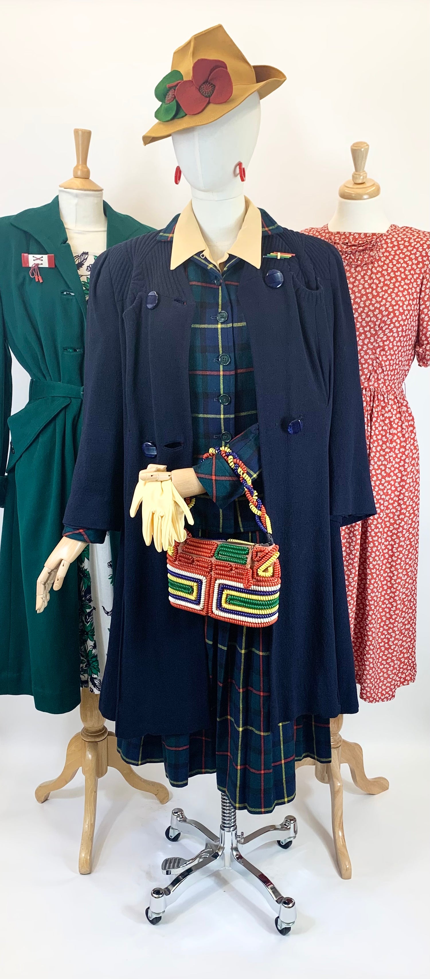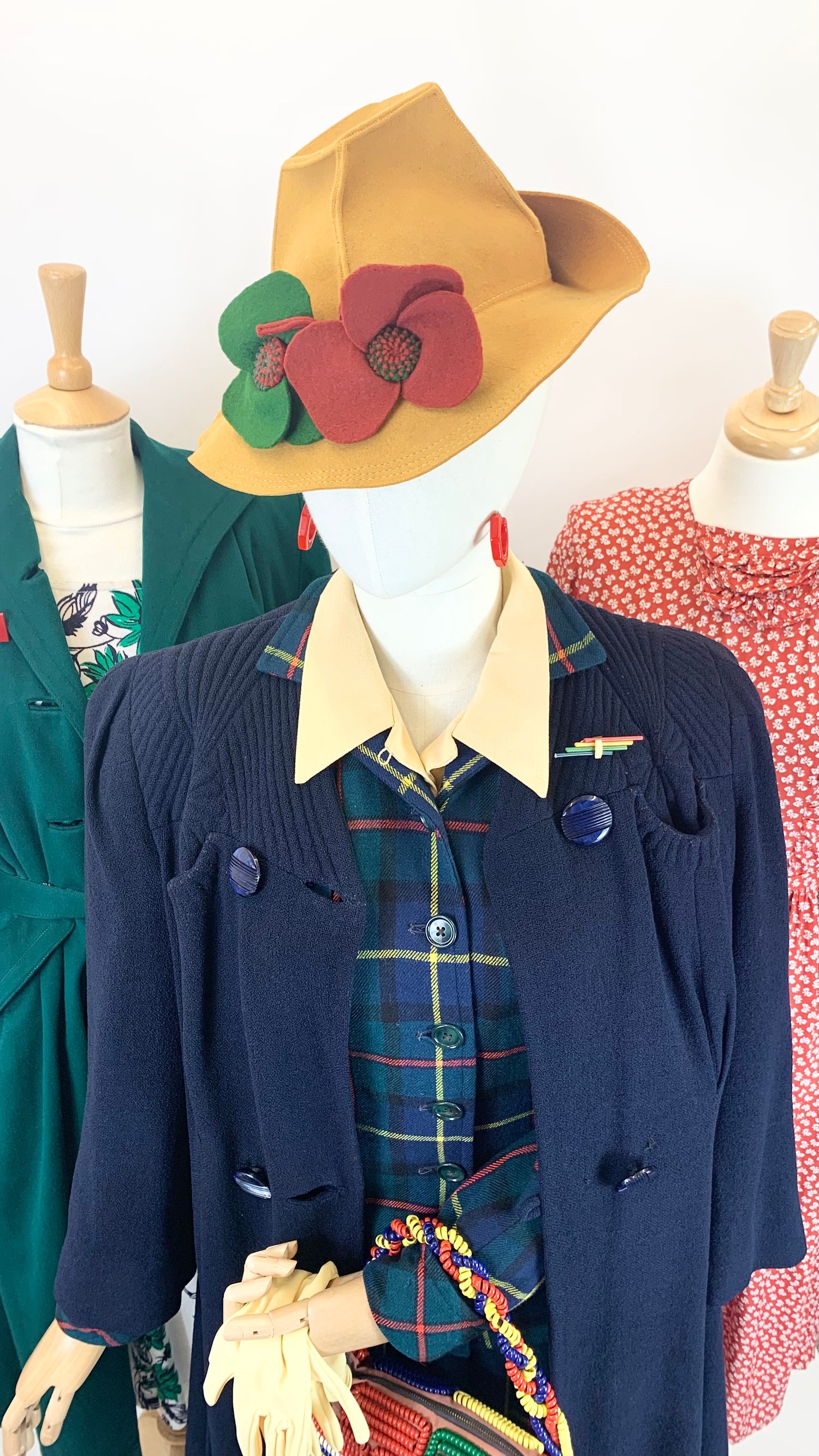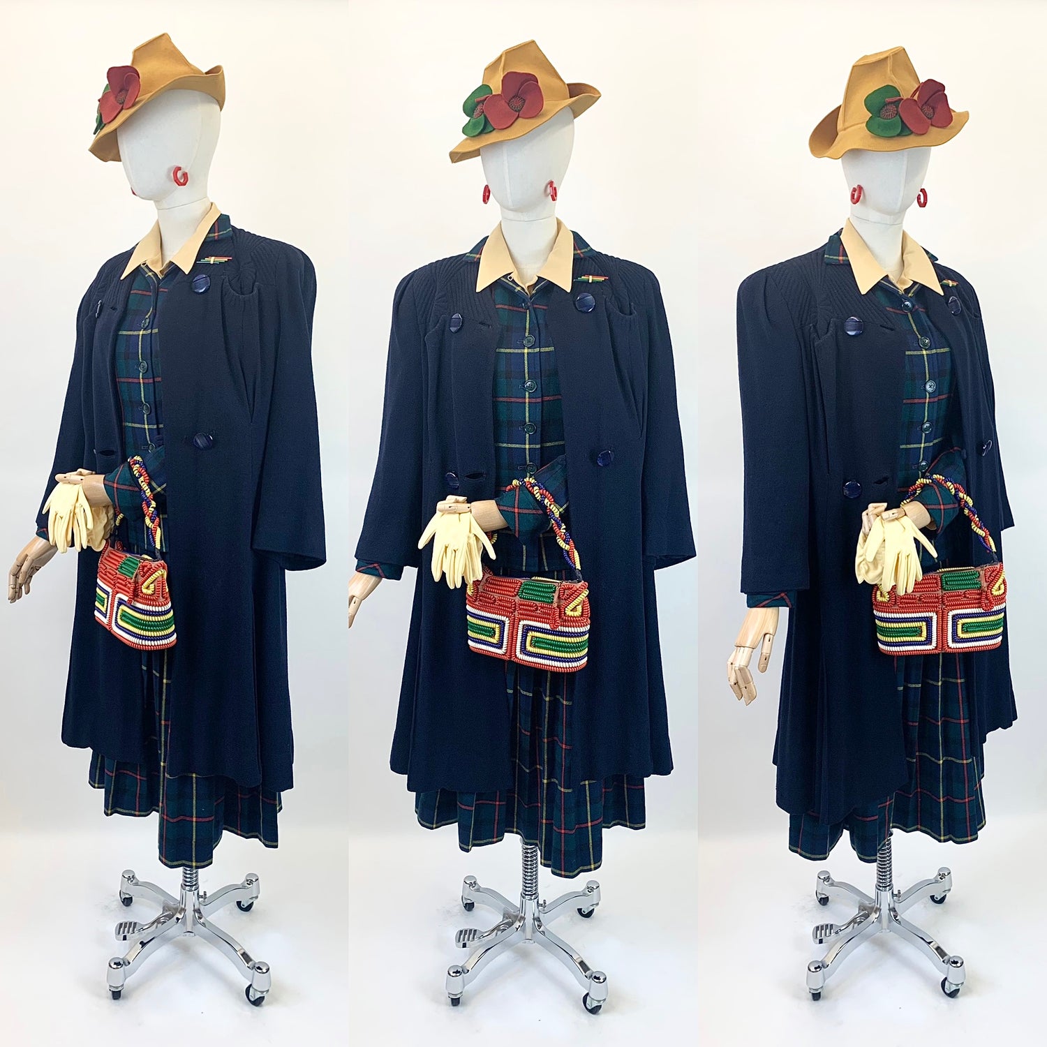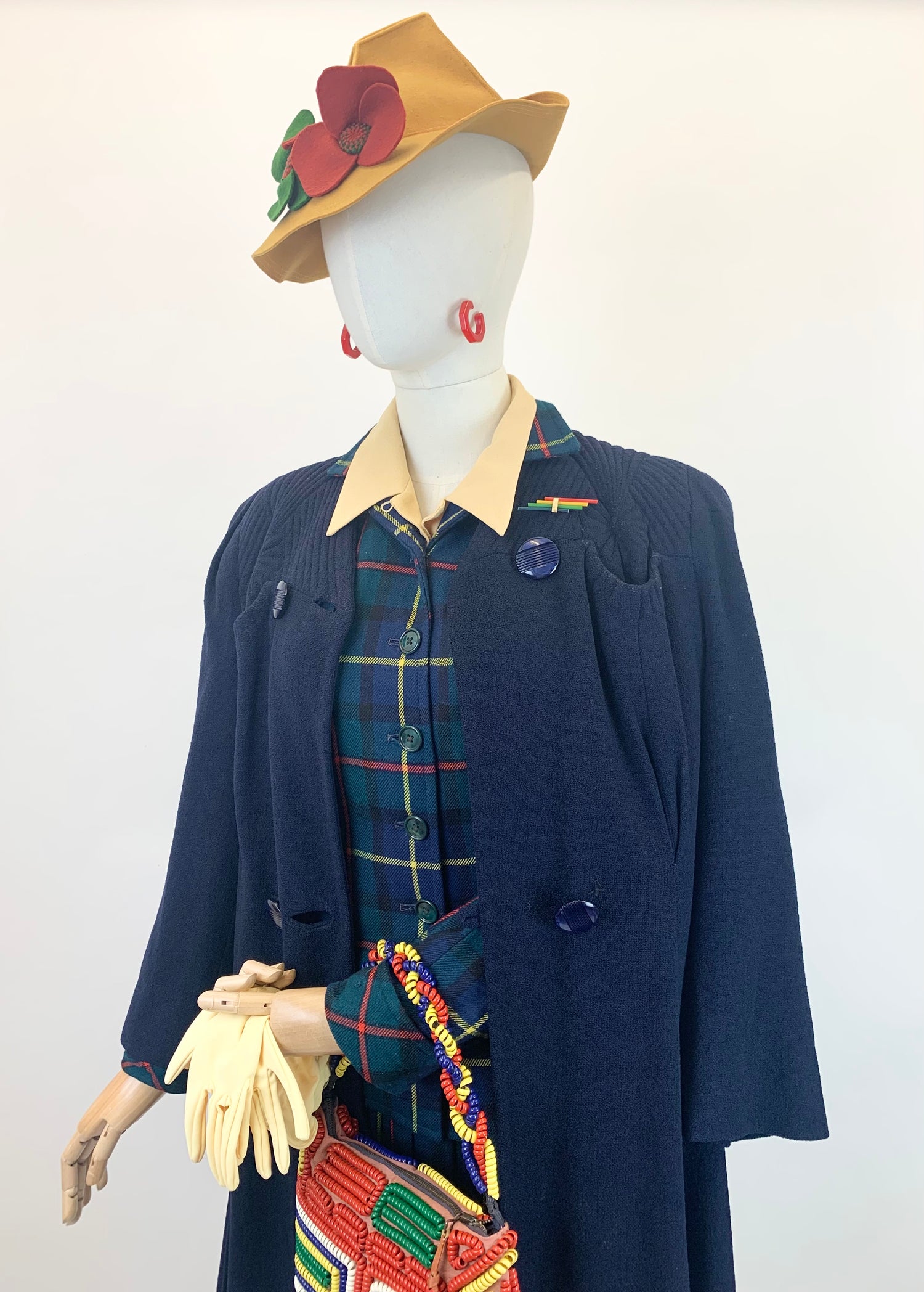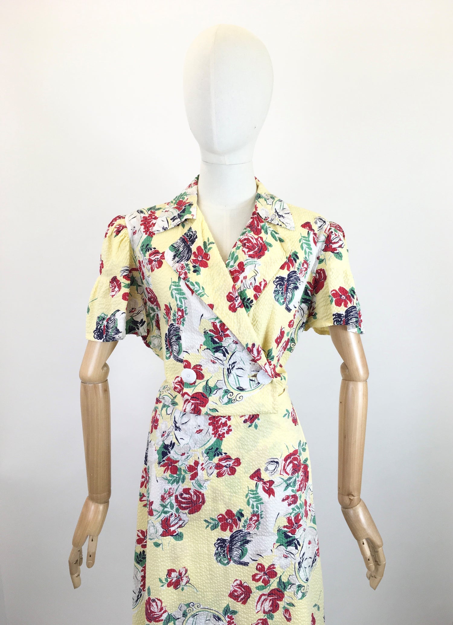Original Stunning 1940's CC41 Utility Day Dress - In A Floral Moygashal Linen in Green, White & Black