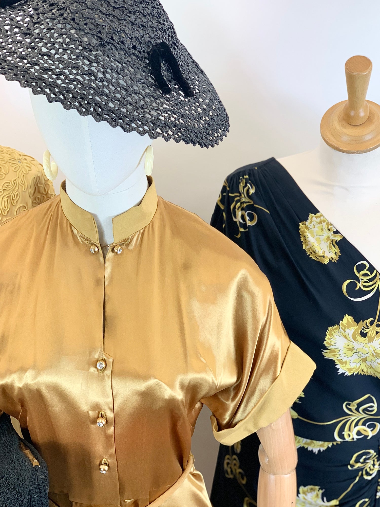 Original 1940’s Du Barry Fabulous Evening Gown in Soft Mustard