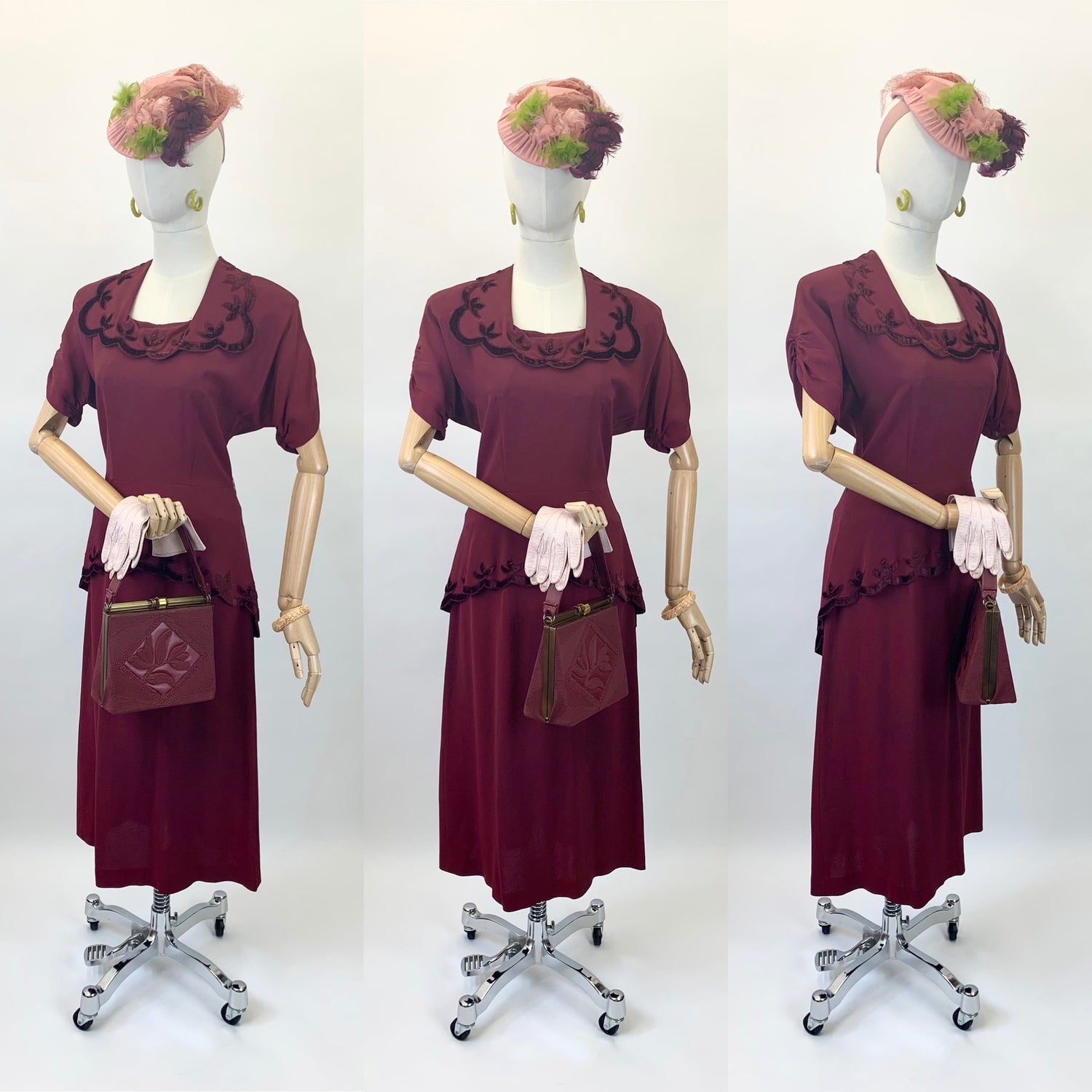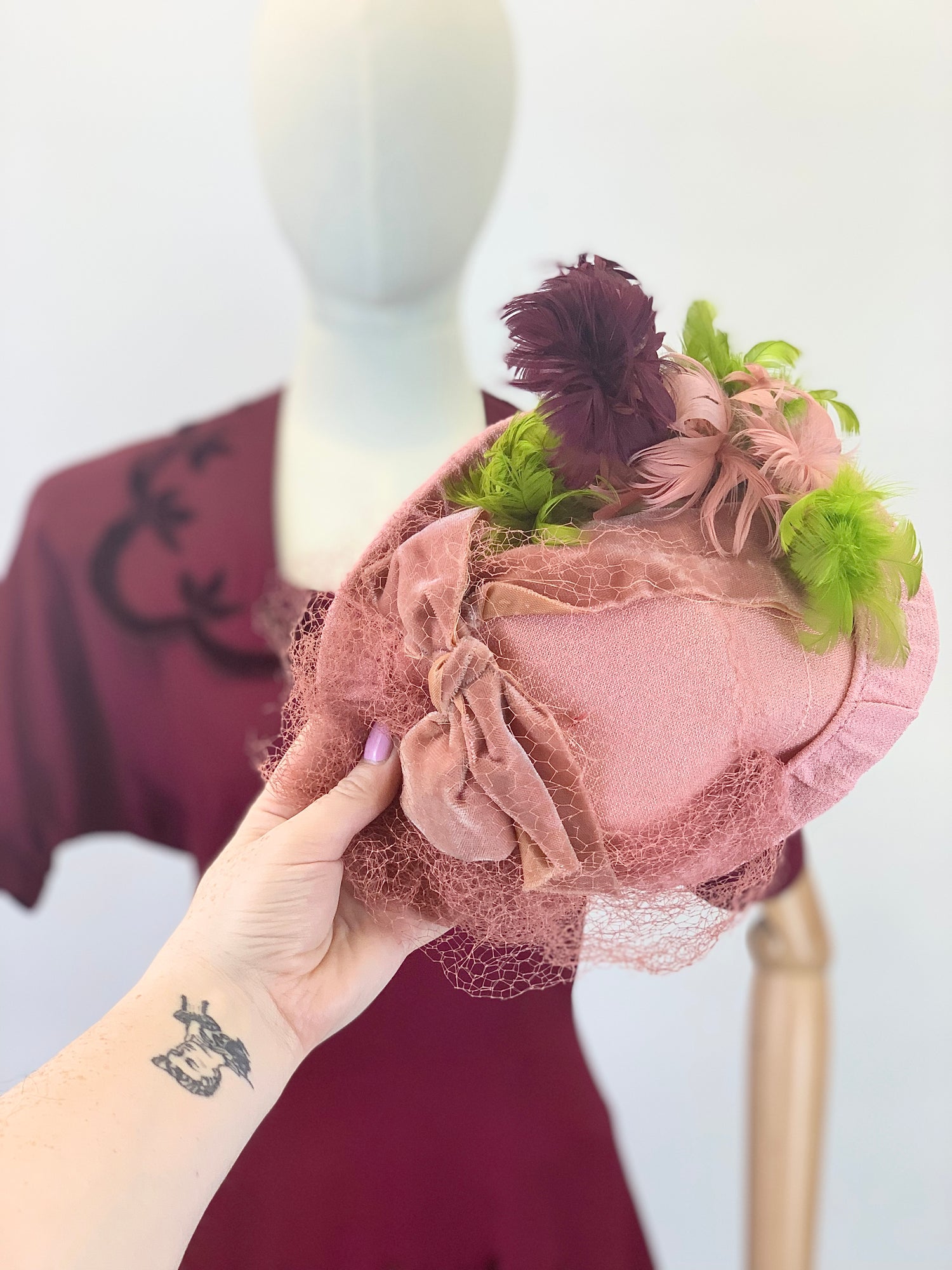 Original 1940's Fabulous Popcorn Crochet Headpiece - In A Sublime Chartreuse