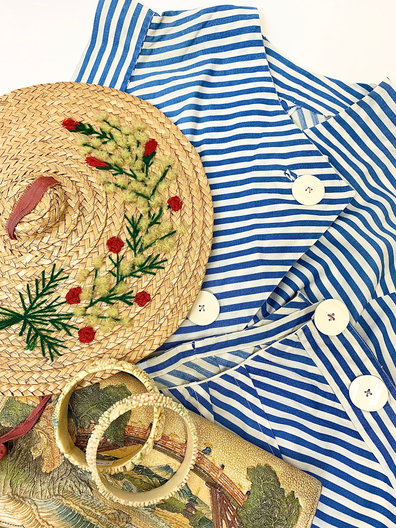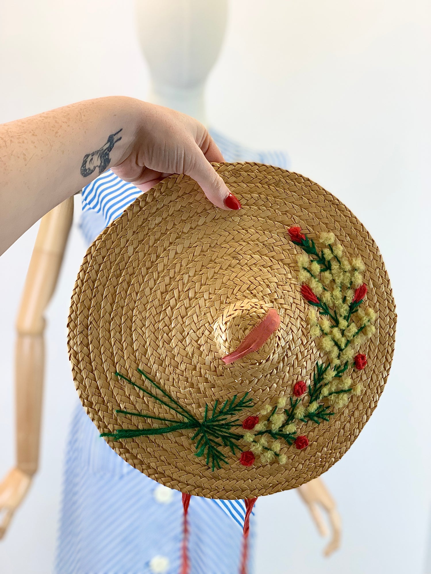 Original Early 1930’s Sensational Raffia Straw Hat - In Sunshine Yellow With Ribbon Trimming