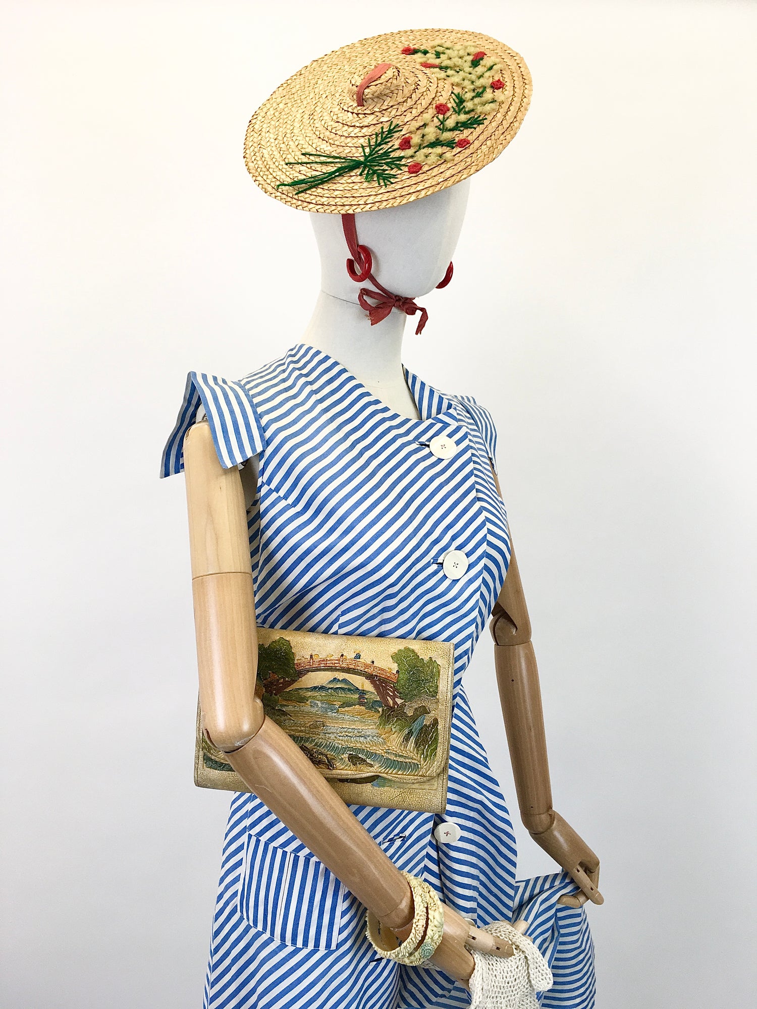 Original 1920's / 1930's Fabulous Summer Clutch Bag - In A Natural Straw Weave with Silver Plate Side Panels