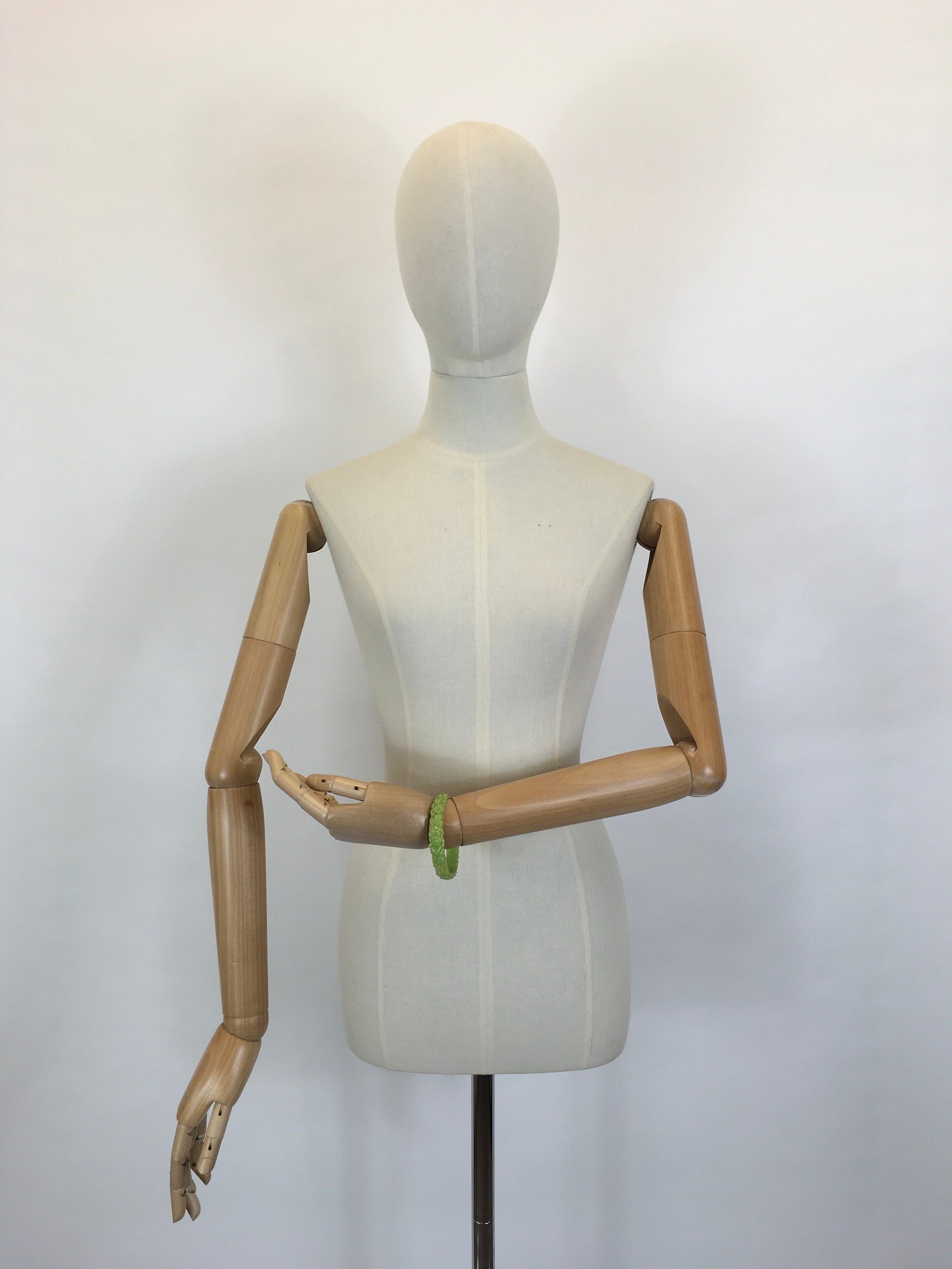 Vintage 1930’s beautiful carved floral celluloid bangle in an exquisite deco green. In lovely condition. These look beautiful worn on there own or as part of a stack of bangles for a statement.