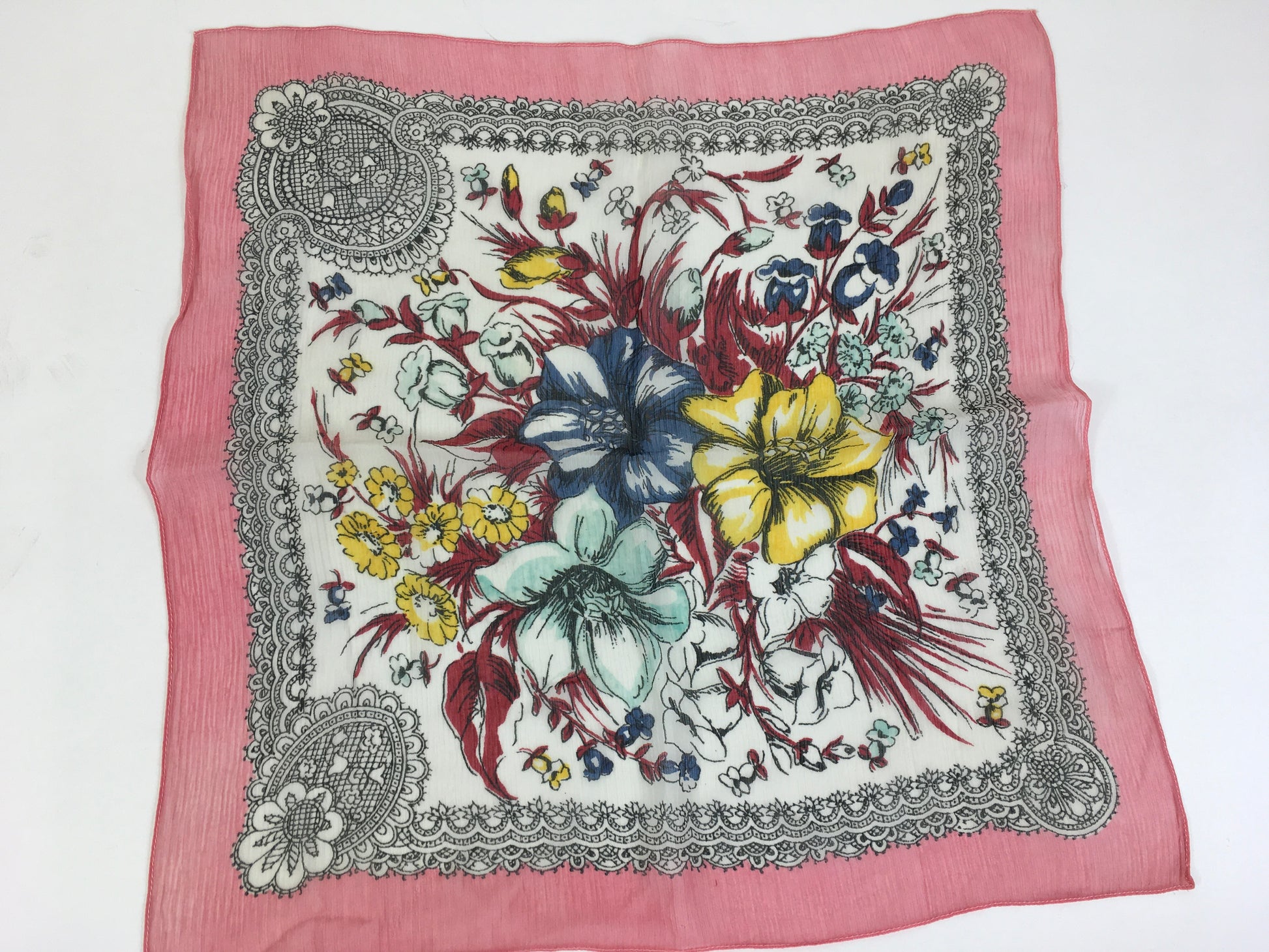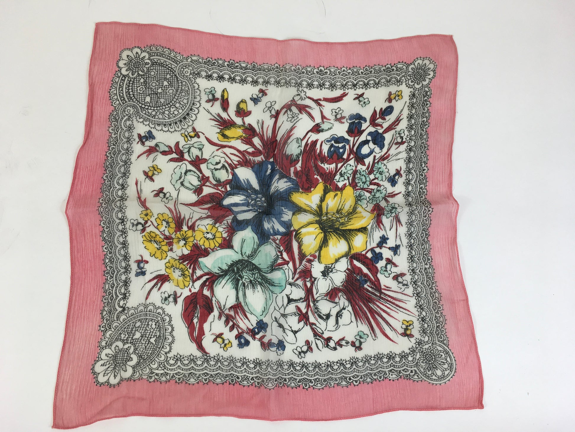 Vintage 1940’s Darling Floral Chiffon Large Hankie / Scarf - In A Springtime Meadow Colour Palette