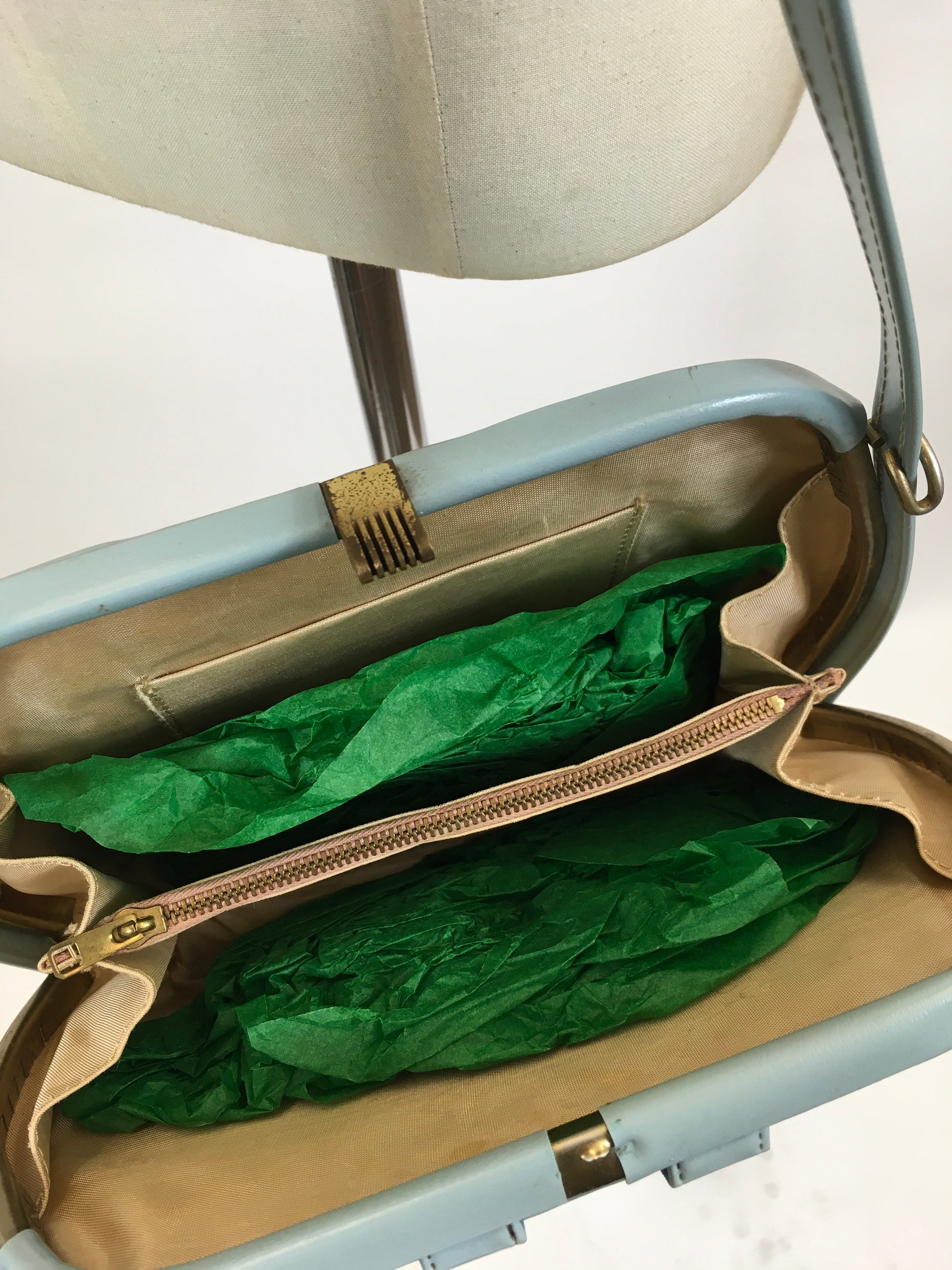 Vintage 1950's single handled handbag in the palest of blue colour.