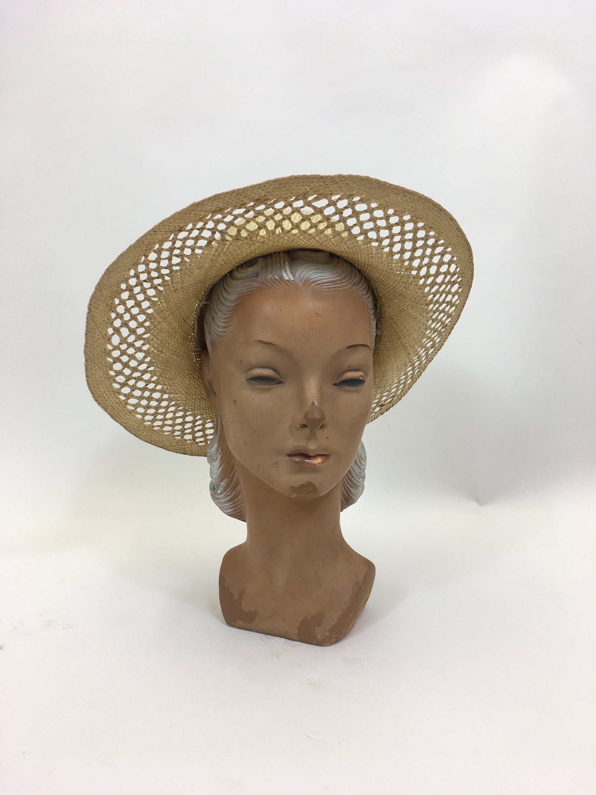 Original 1930’s Lovely Natural Straw Hat with Fretwork