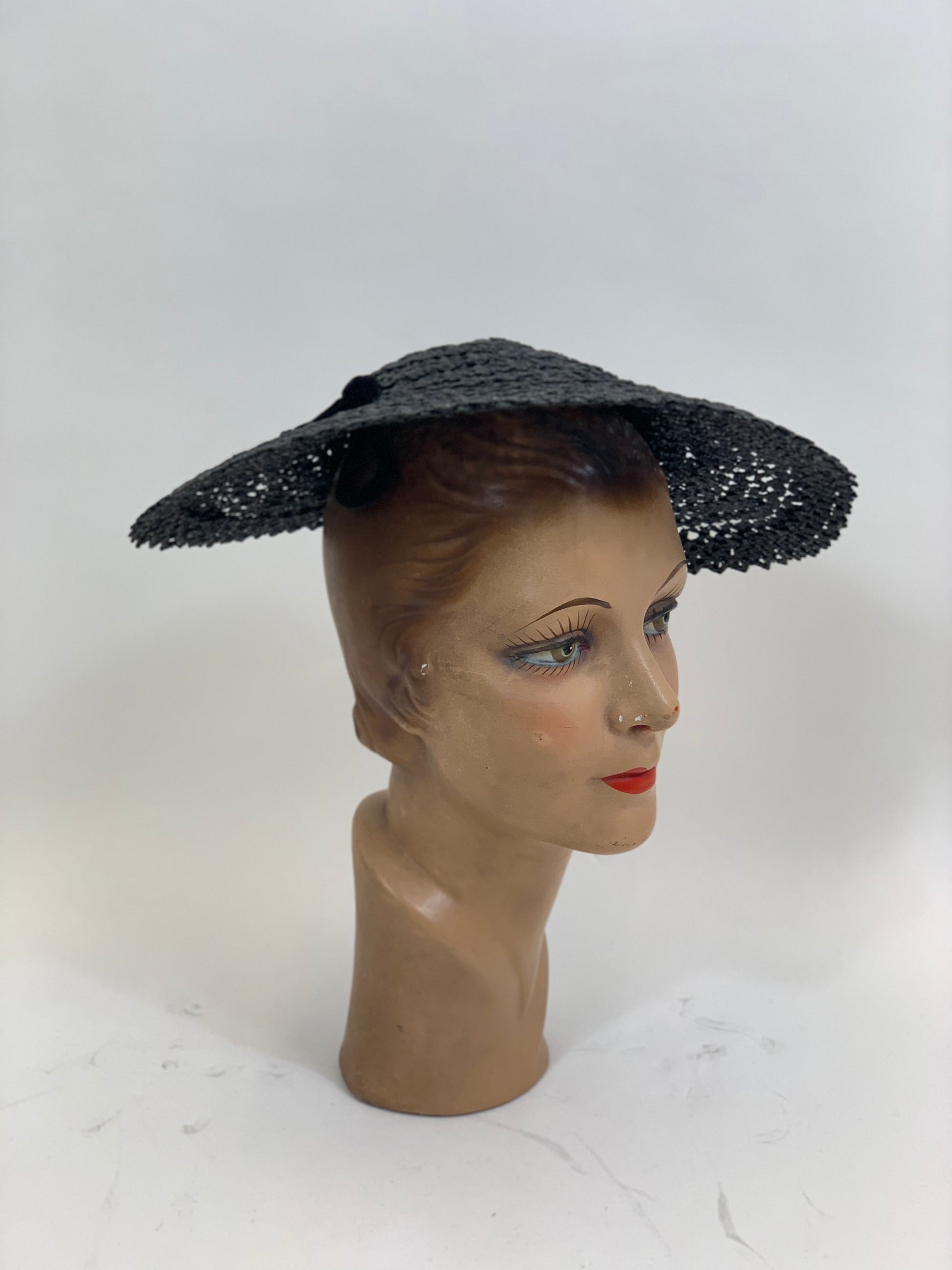 Original 1950’s Beautiful Platter Hat - in Black weave