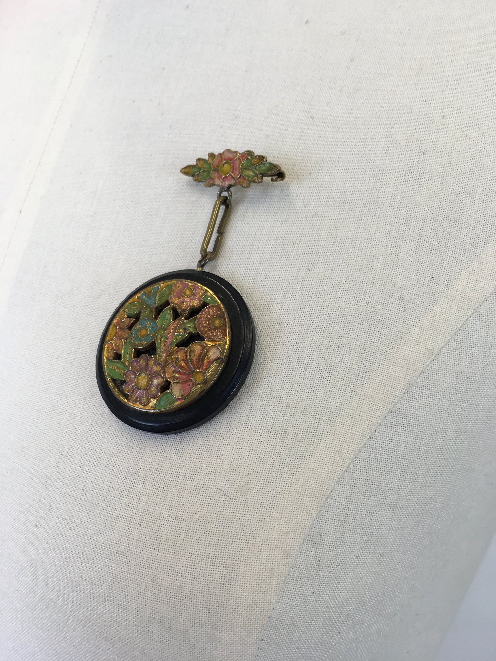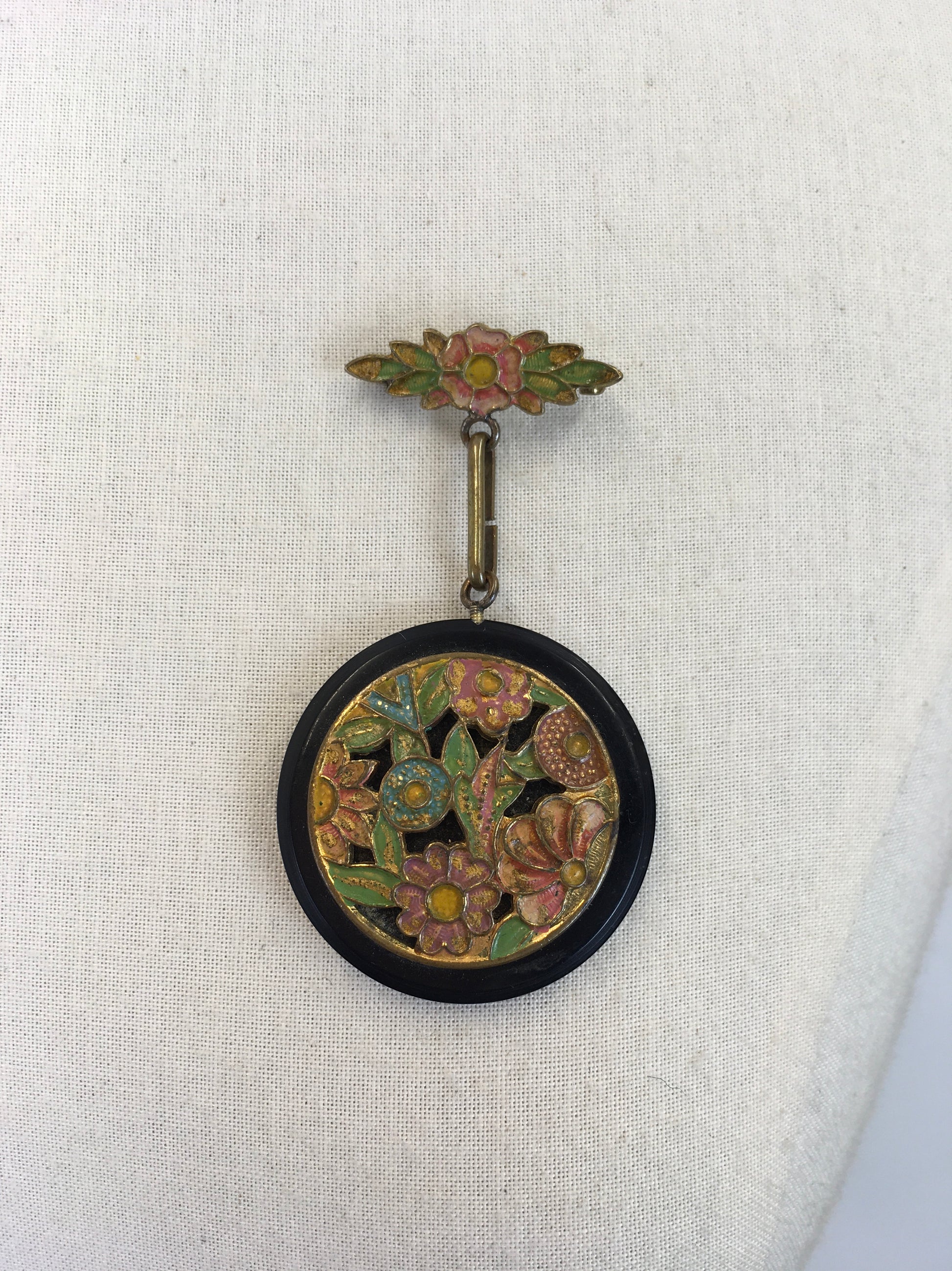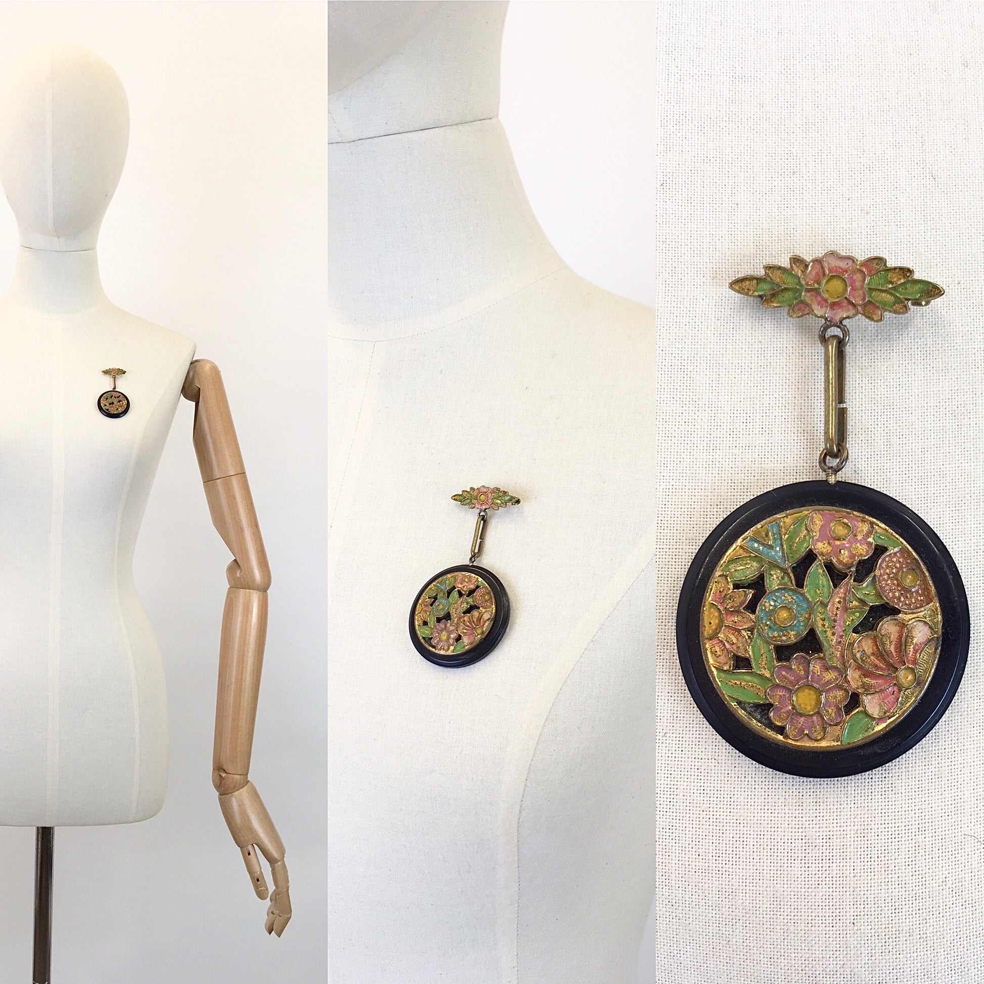 Original 1930’s Dangle Brooch - With Floral Enamel Overlay