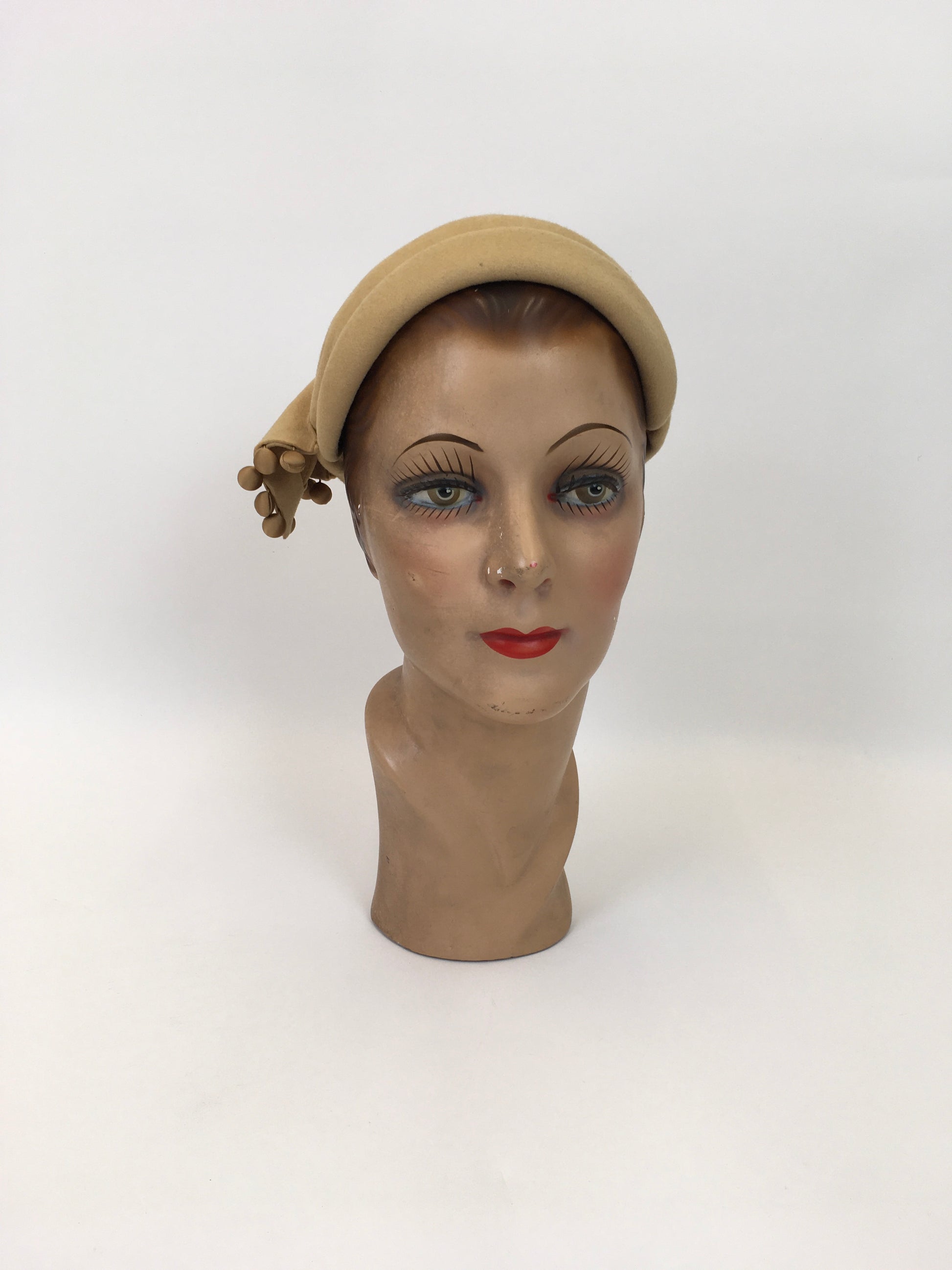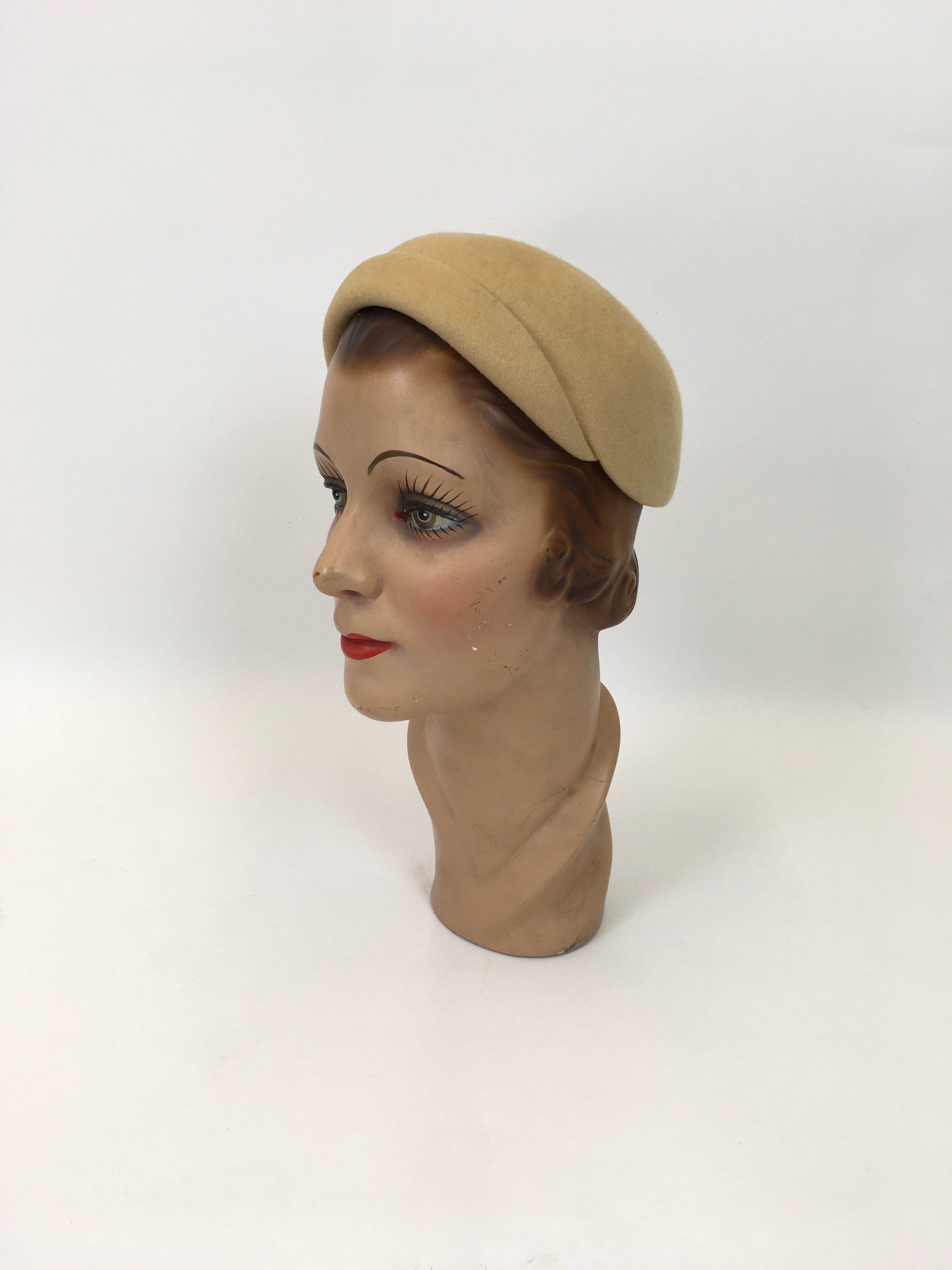 Original Late 1940’s Early 1950’s Felt Headpiece - In Light Mustard