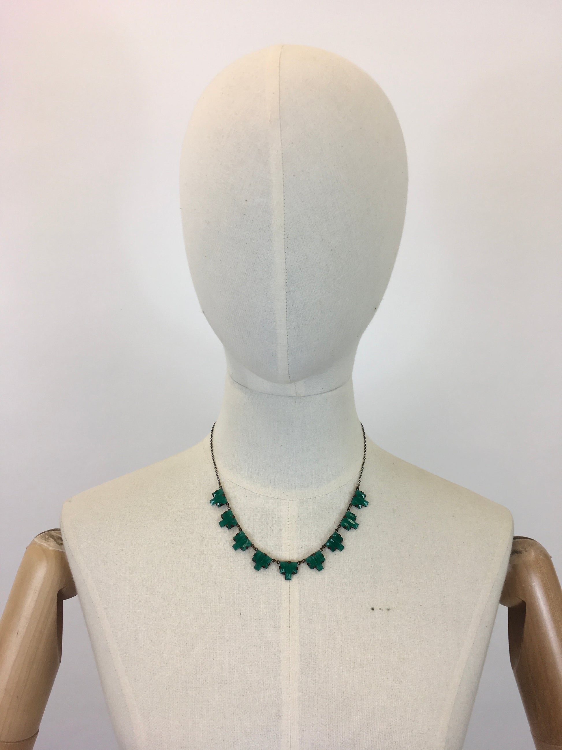 Original 1930’s Art Deco Shaped Necklace - With Jade Green Glass