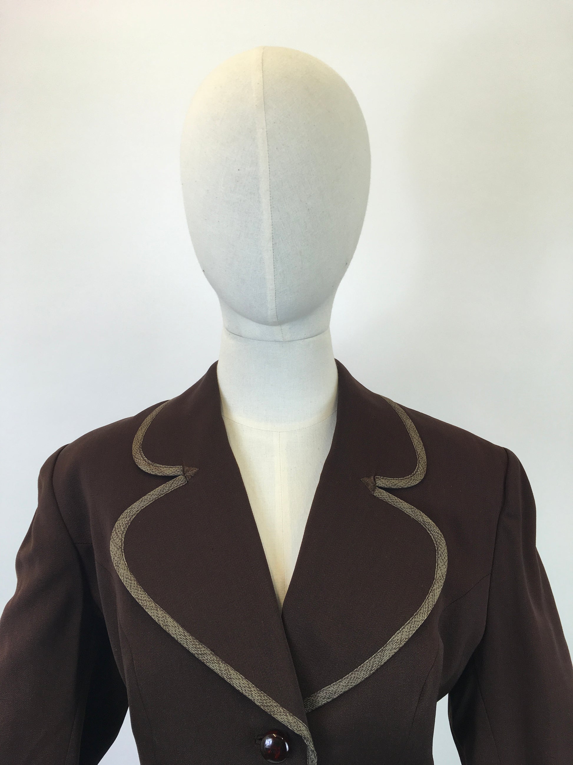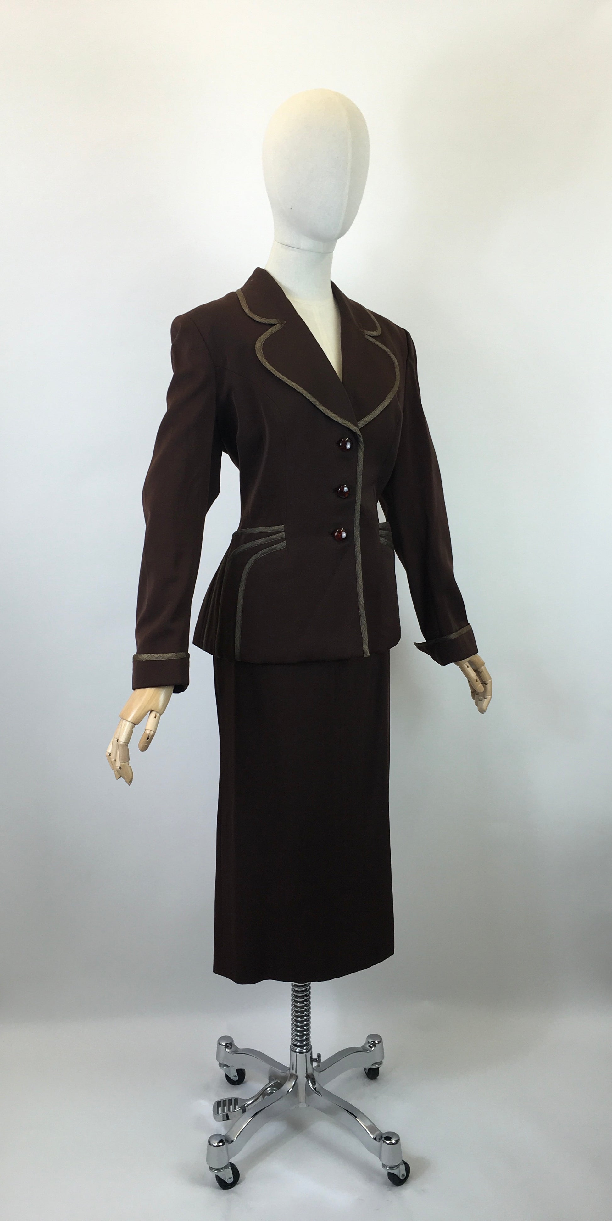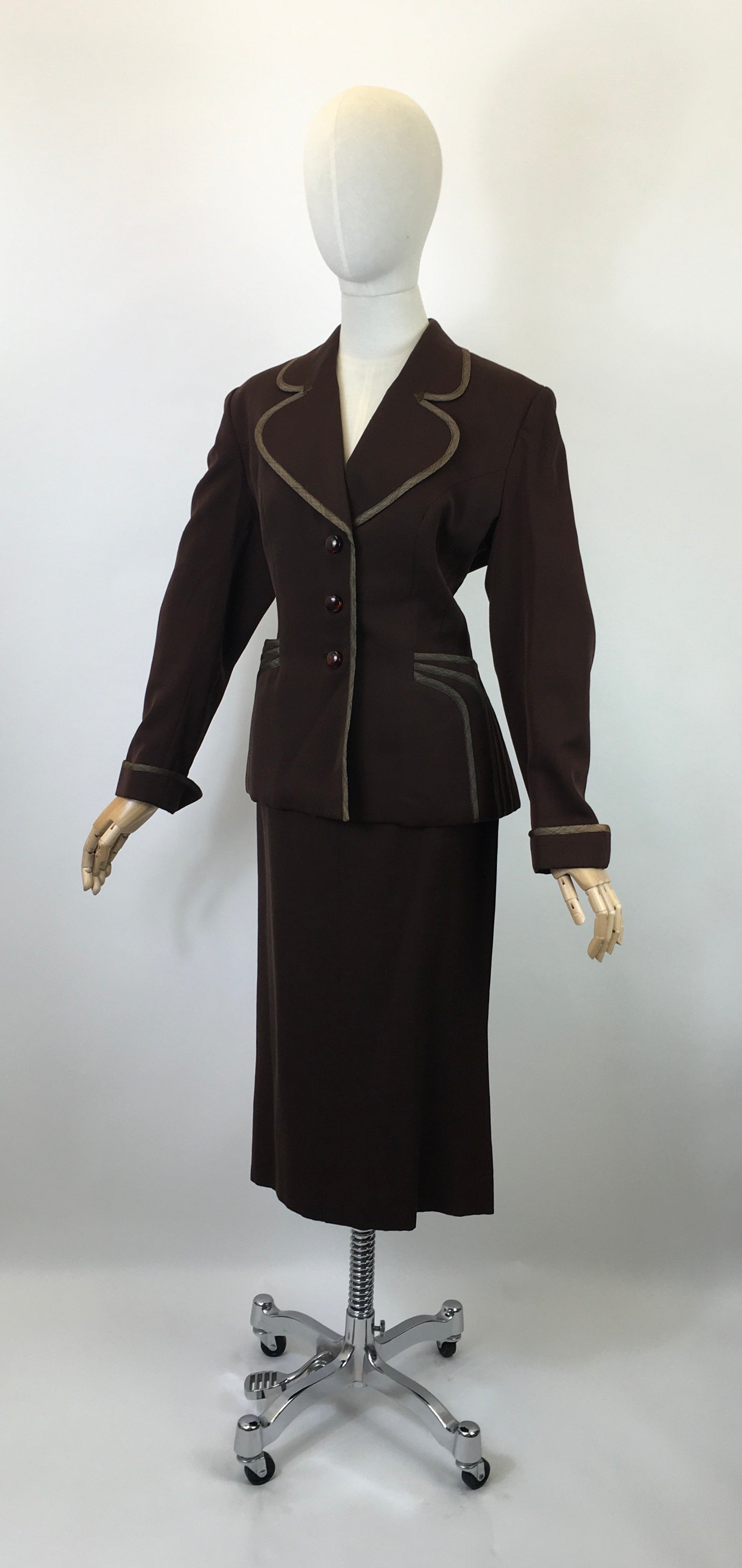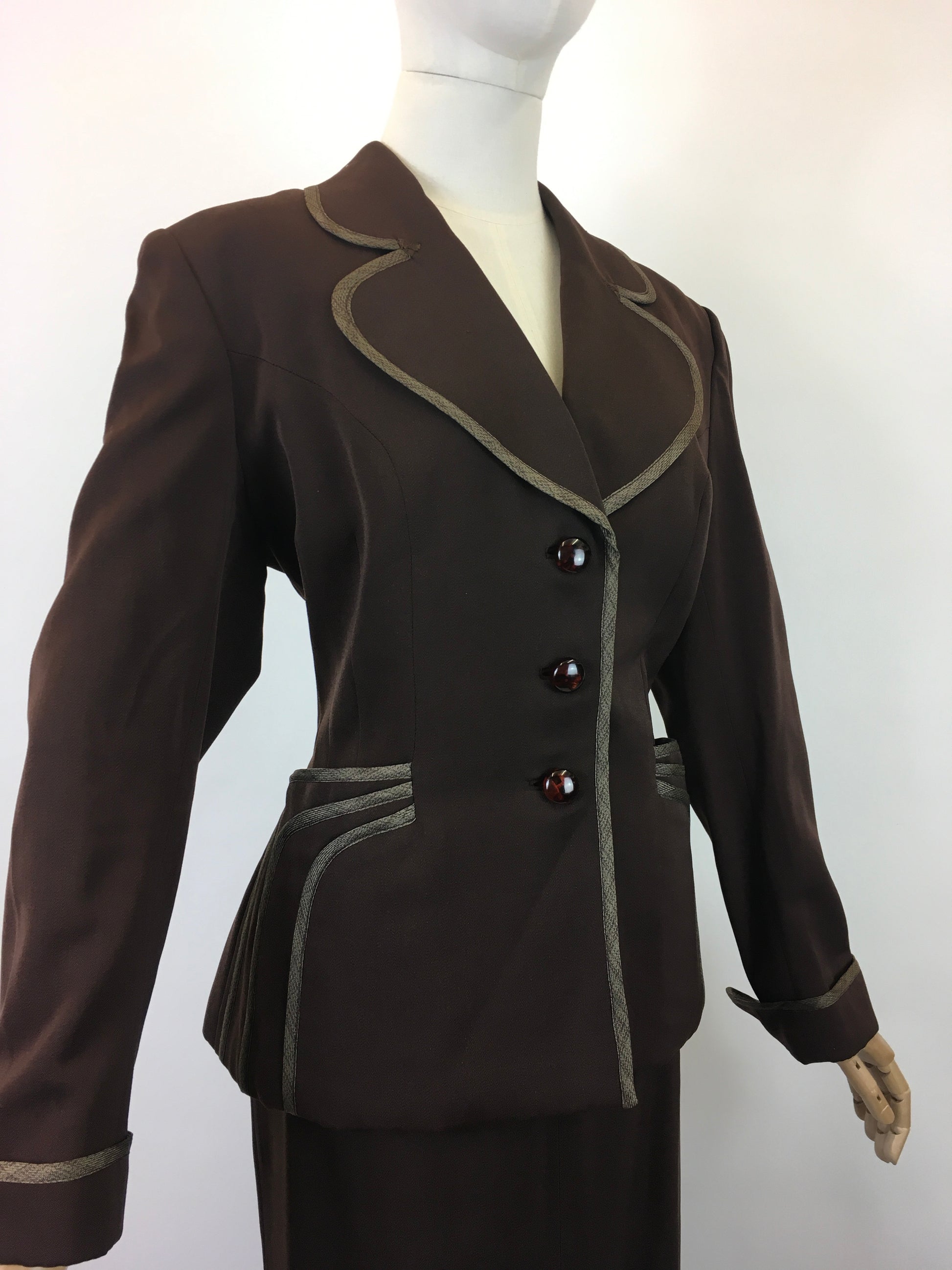 Original Sensational 1940’s American 2pc Suit by ‘ Betty Hill, California’ - In Rich Chocolate Brown with Stunning Details