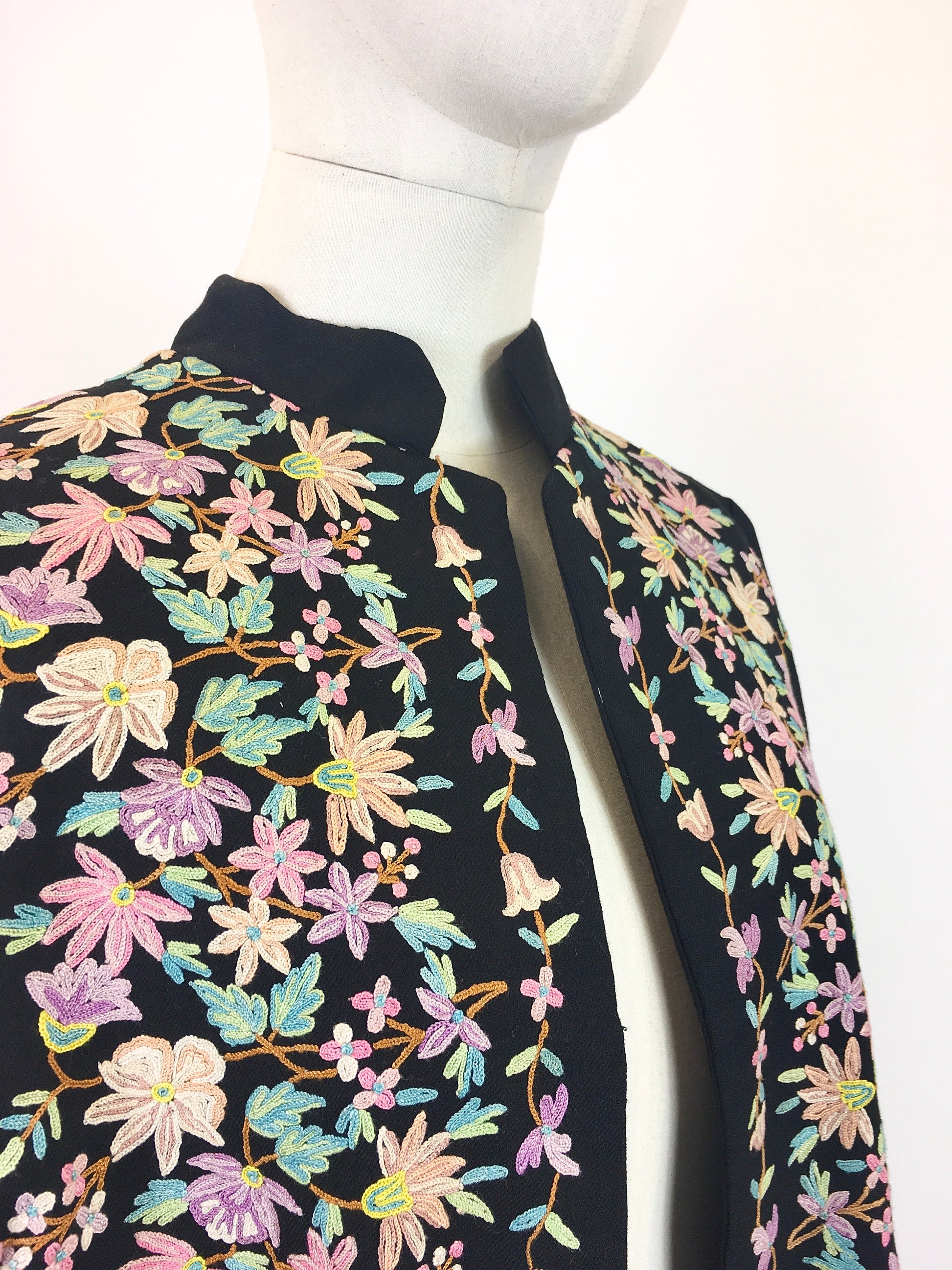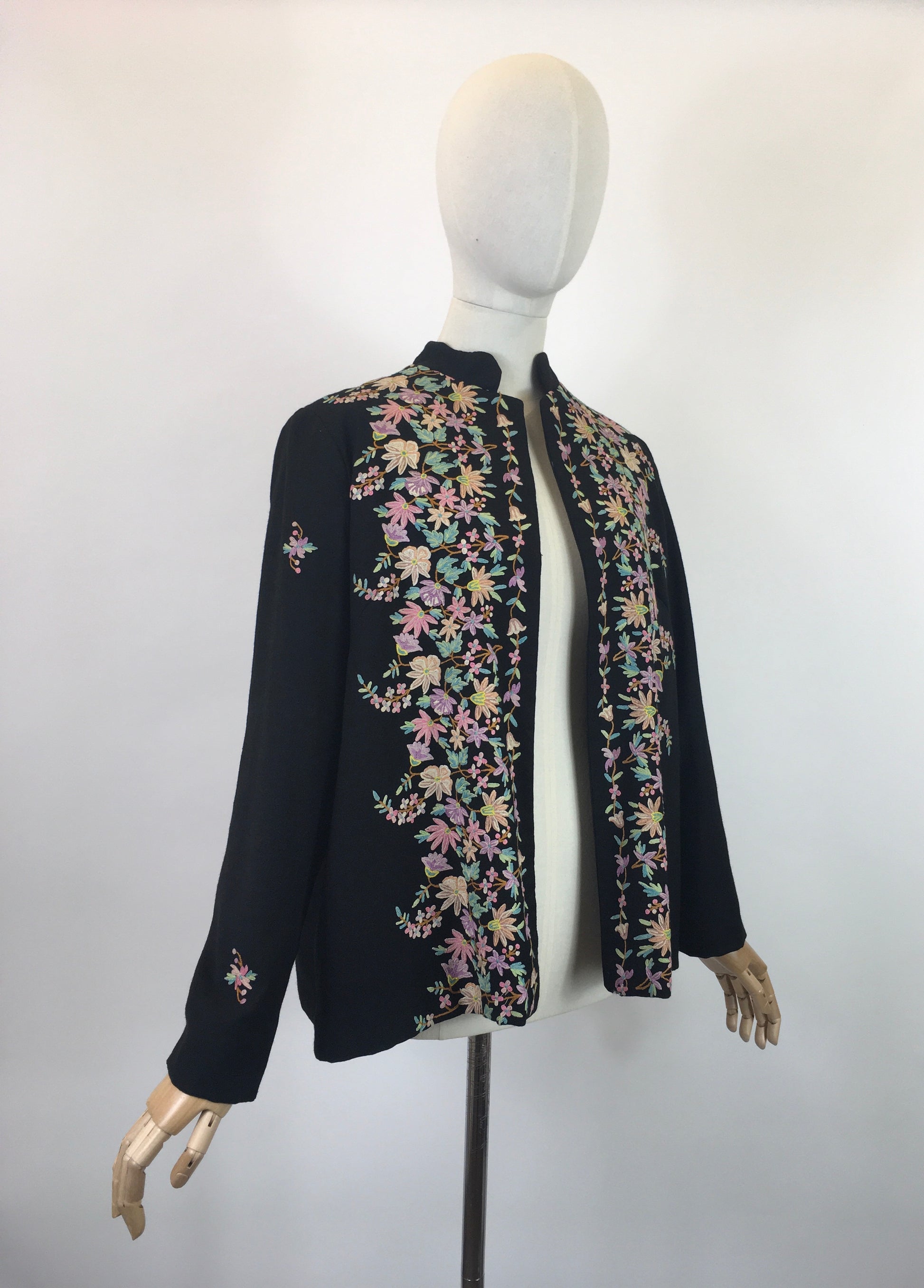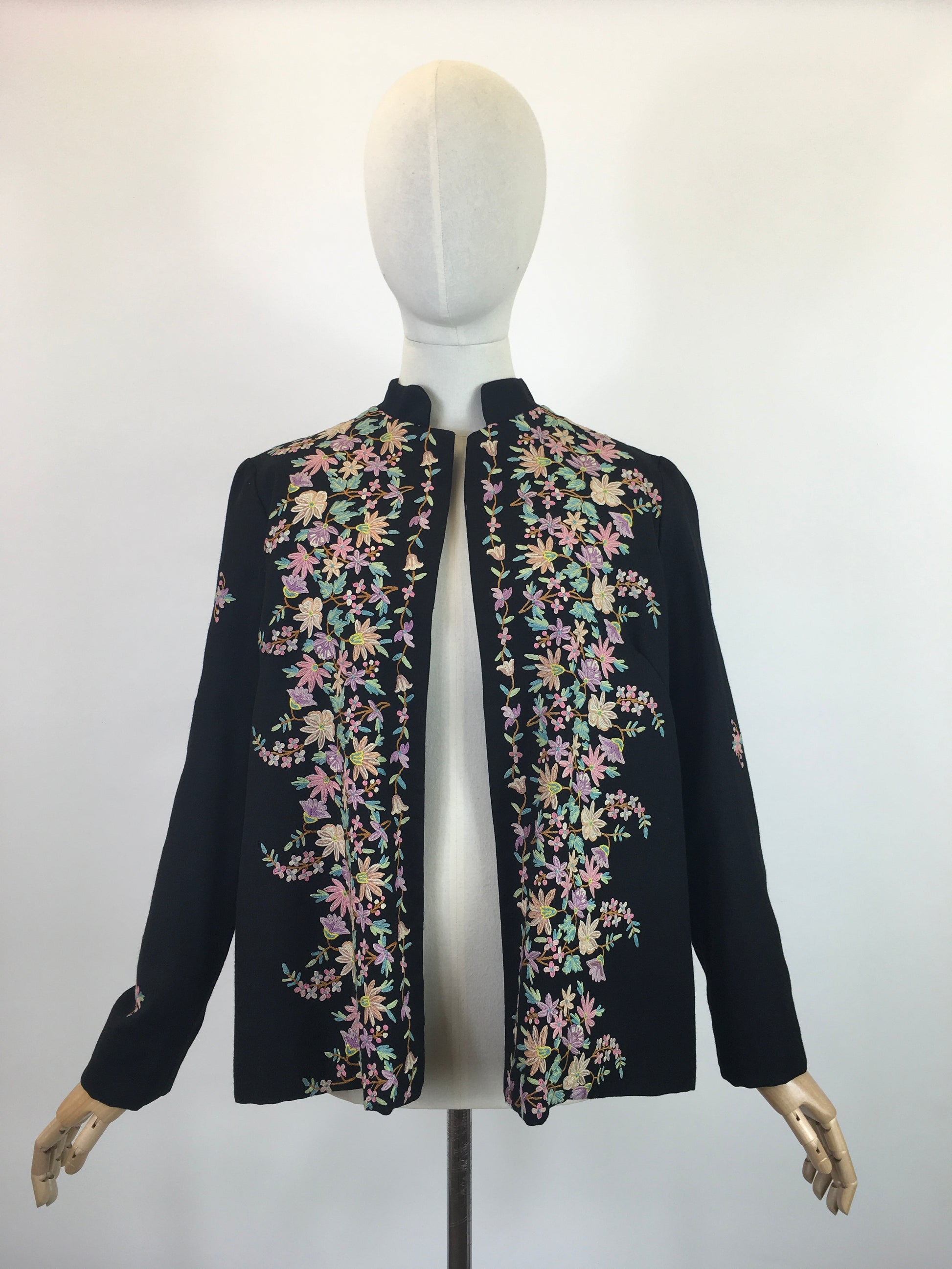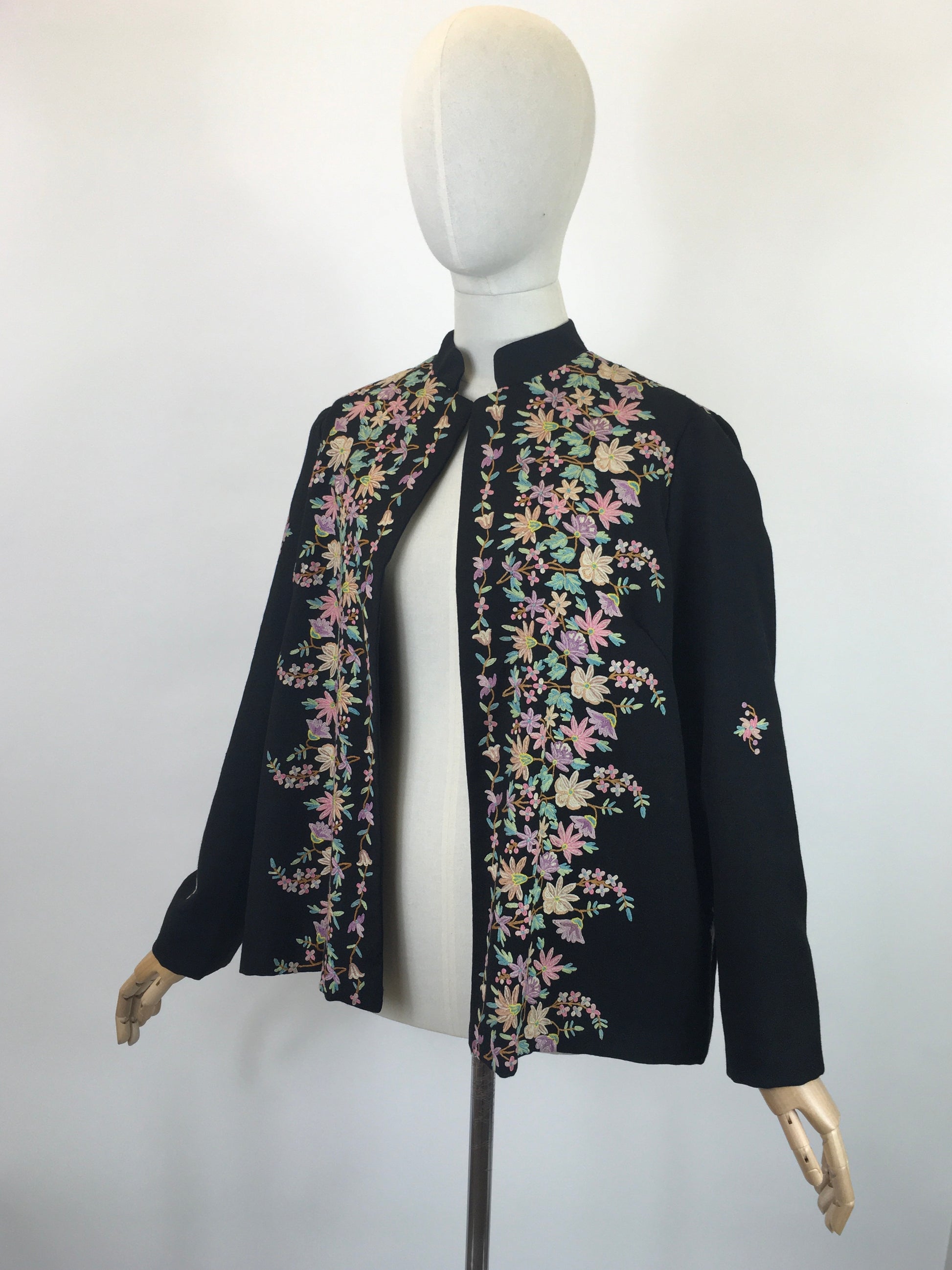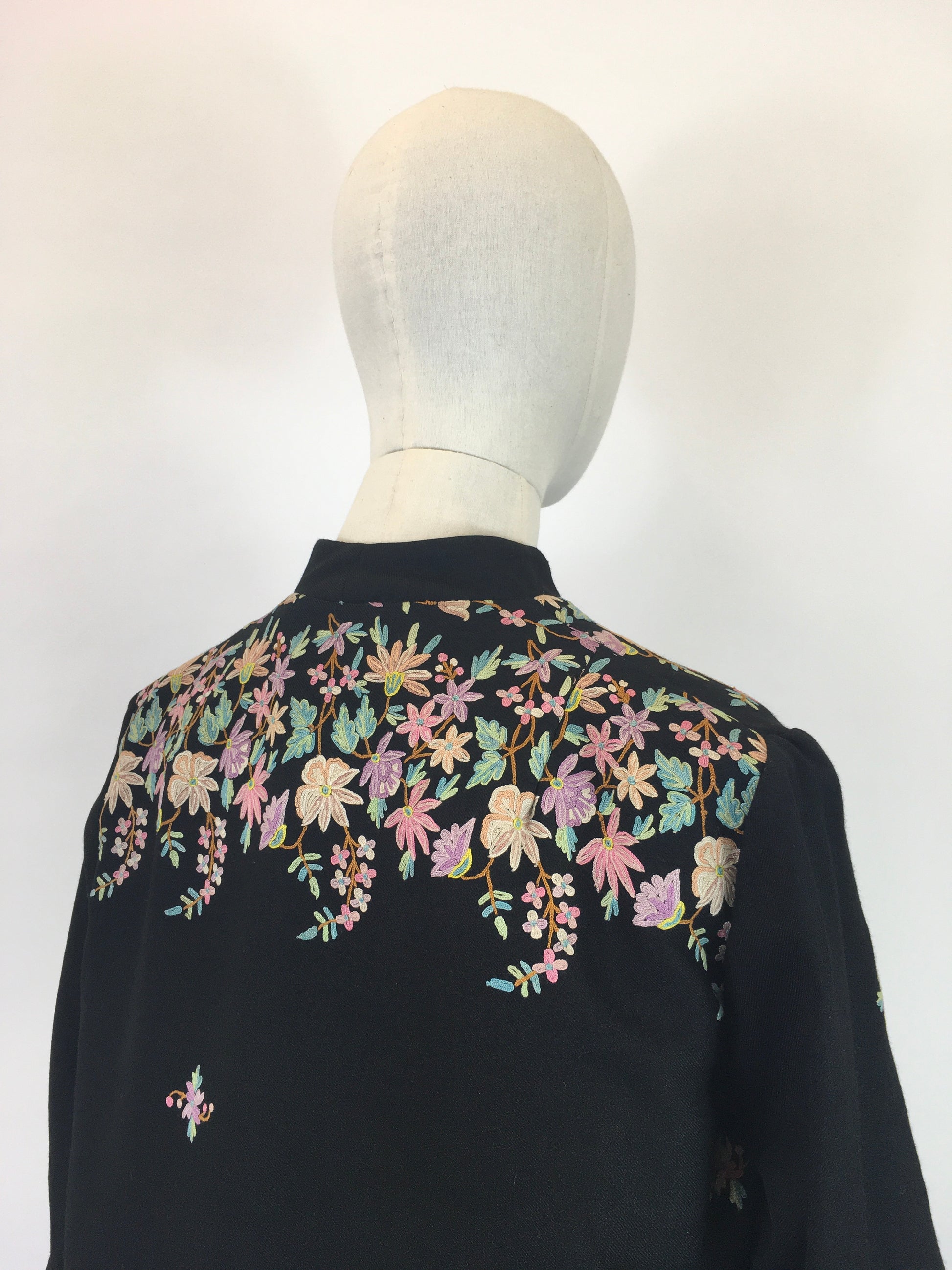 Original Late 1930's Early 1940's Edge to Edge Jacket - With Exquisite Embroidery Detailing in Pastels
