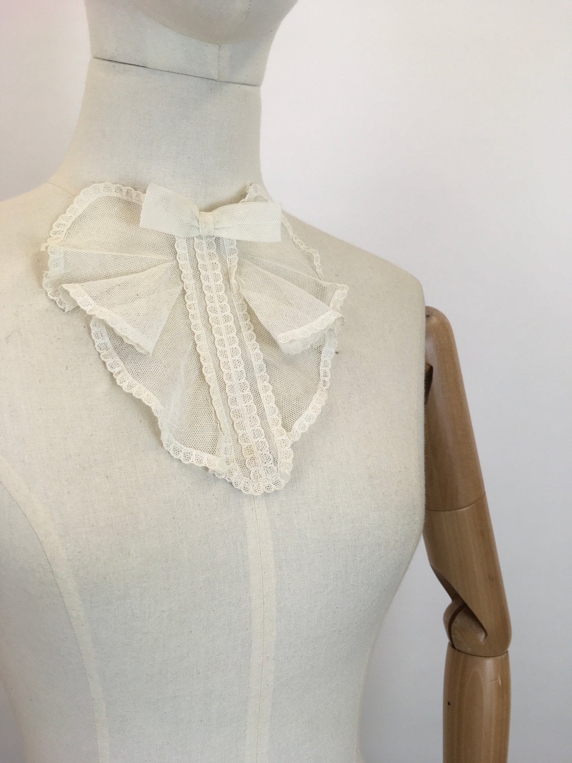 Original 1920's Fabulous Dickie - Made From A Fine Net with Lace And Bow Adornment