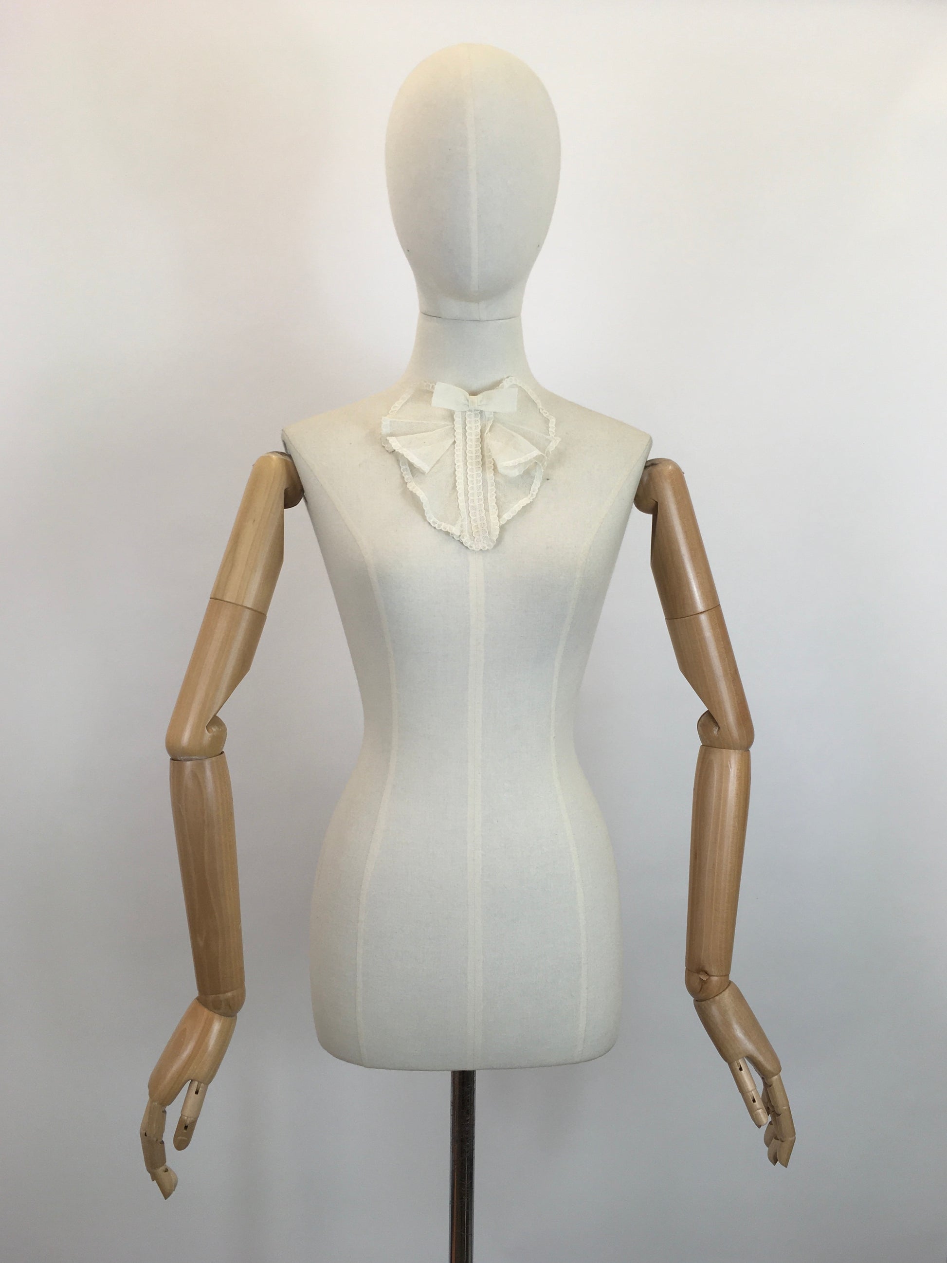 Vintage 1920's fabulous dickie, made from a fine net with lace and bow adornment. This is a beautiful piece to clip on to a blouse, jumper or dress to add a little extra to an ensemble. Great for interchanging with varying outfits. Fastens with a safety clip. A lovely addition to any Victorian or Art deco loving lady.