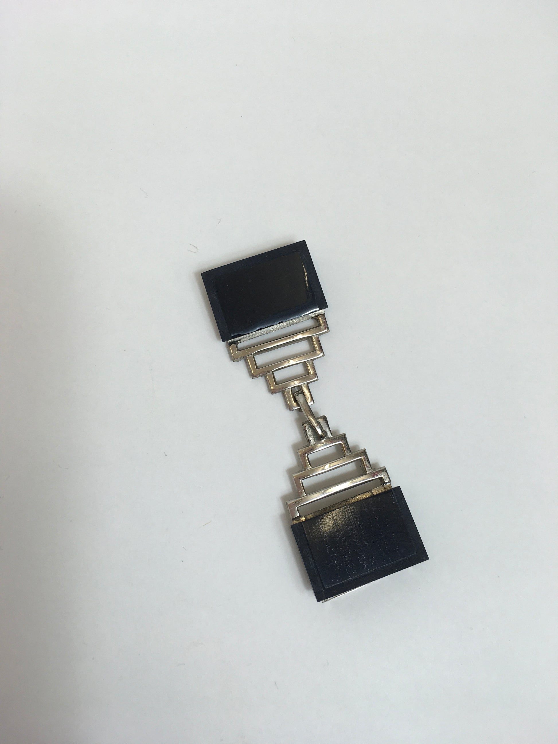 Original 1920's / 1930's Art Deco Buckle - In Silver and Black Glass with Deco Shaping