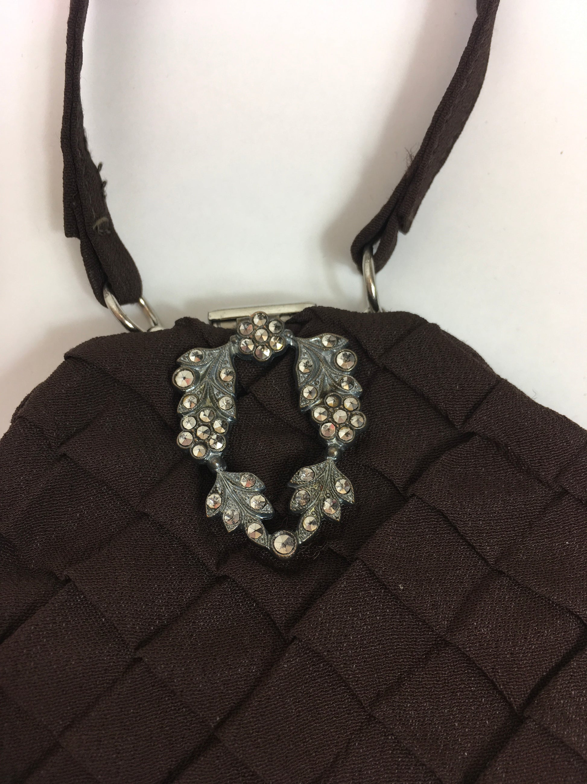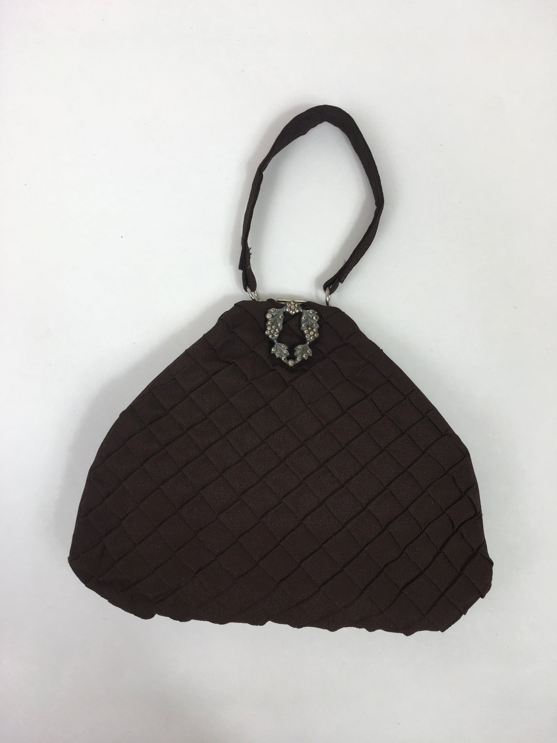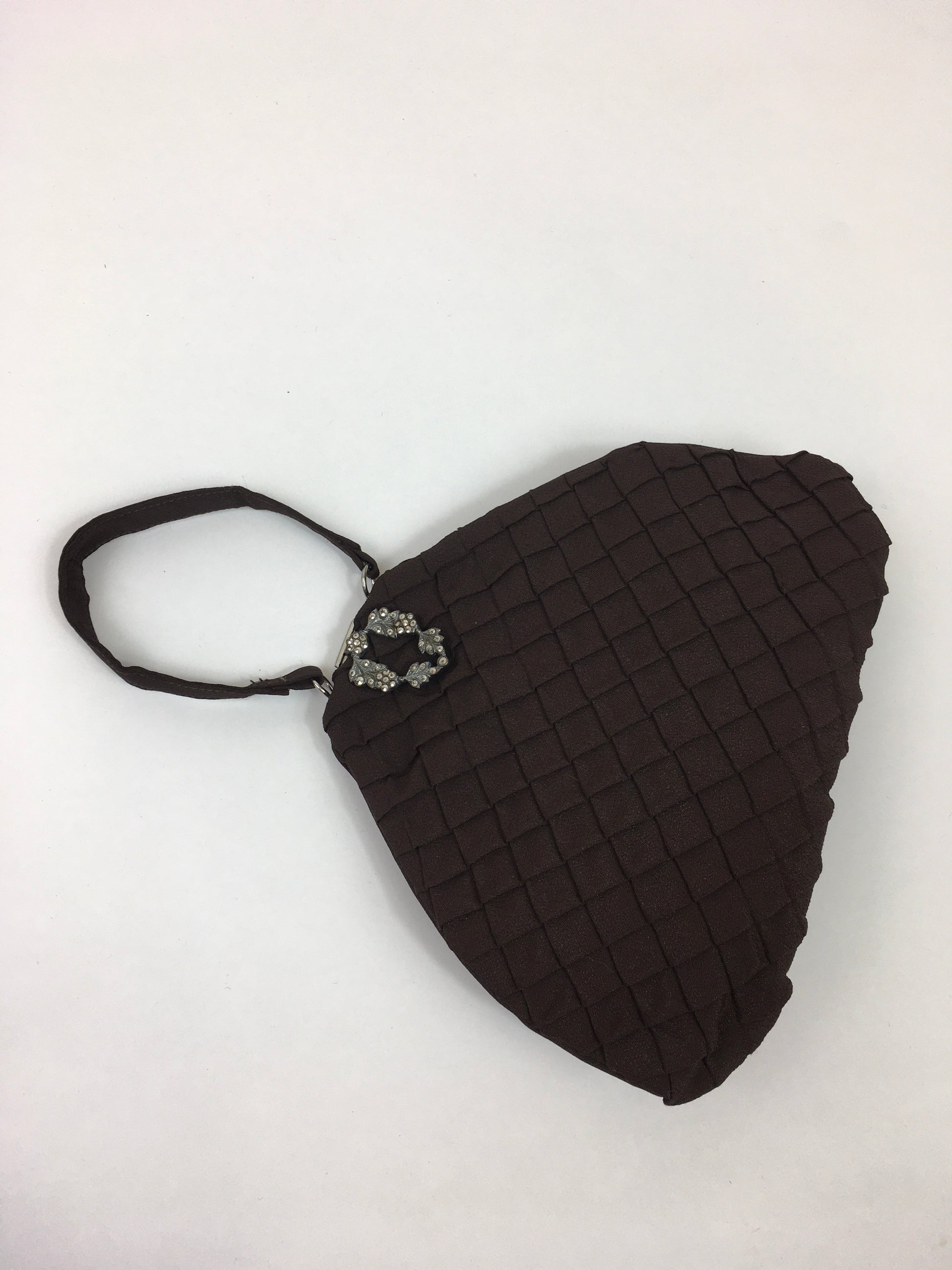 Original 1930's Stunning Warm Brown Crepe Evening Bag - With Pleated Details