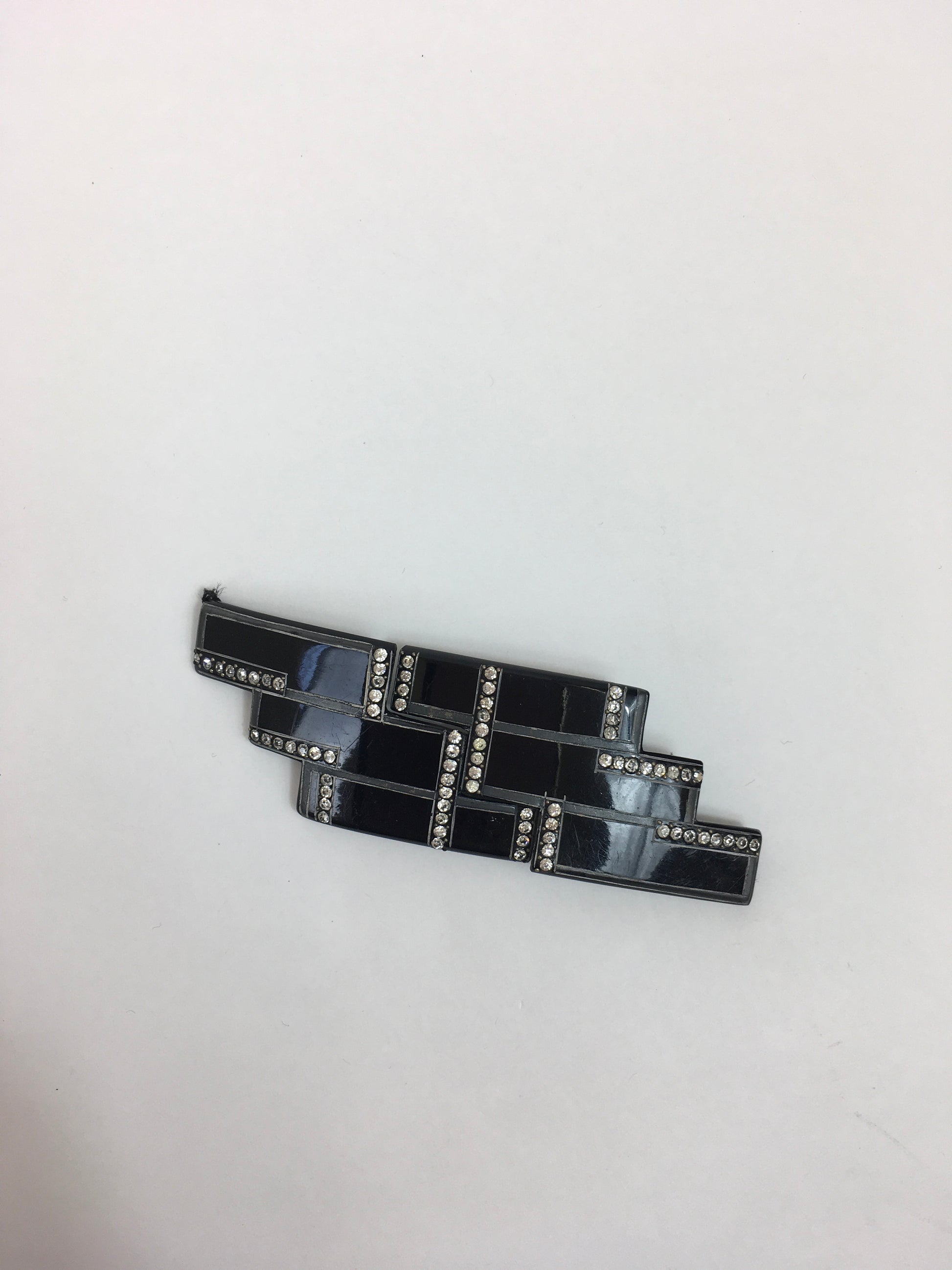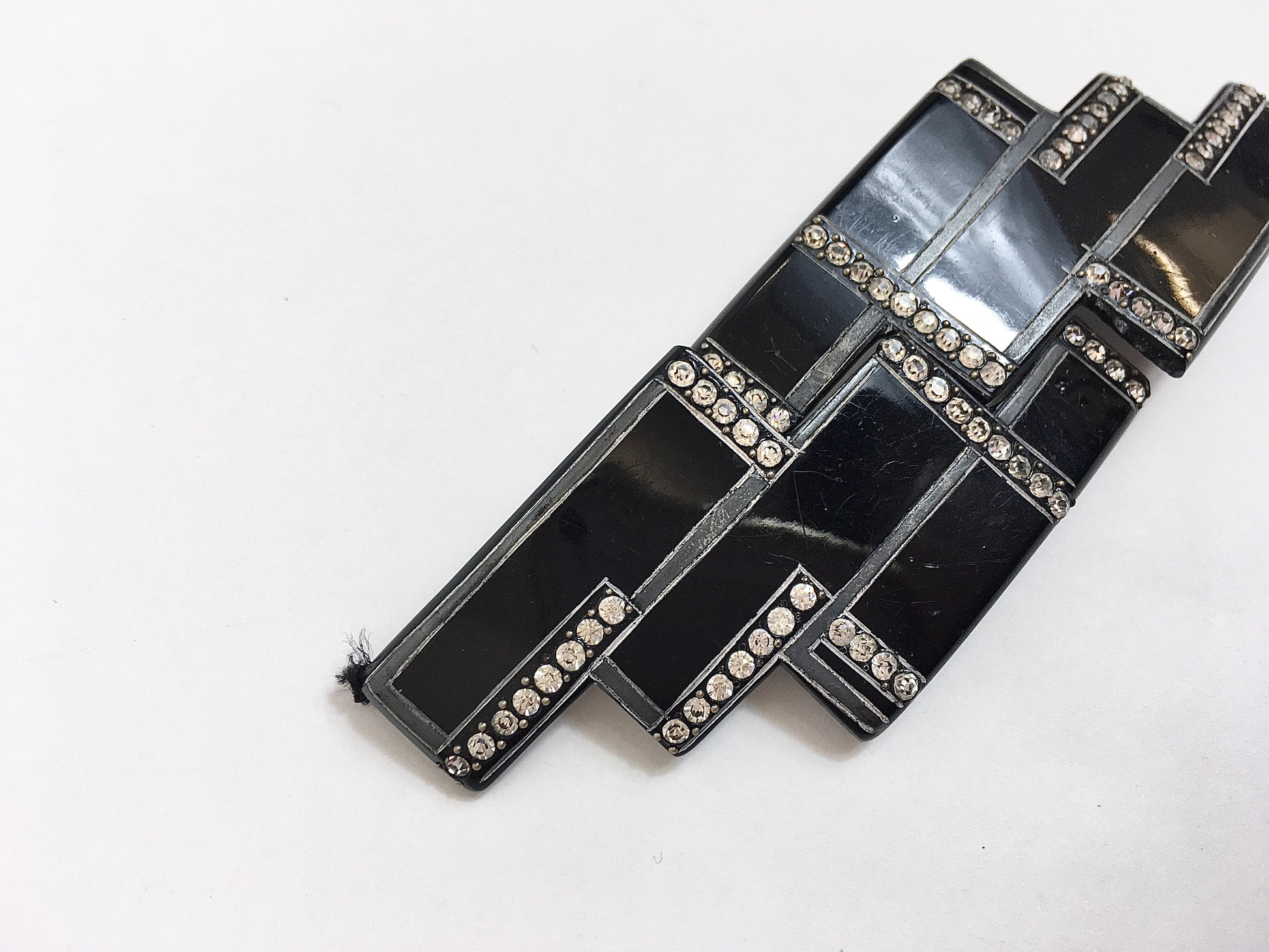 Vintage 1920's / 1930's large art deco buckle with stunning deco lines and paste detailing. This is a stunning example from its time and is a rare find in this fabulous size of 4' x 1.25'. It will make a great statement buckle on a 20's or 30's evening gown or even on an art deco jacket or coat. A beautiful addition to any art deco lovers haberdashery collection for an up and coming project.