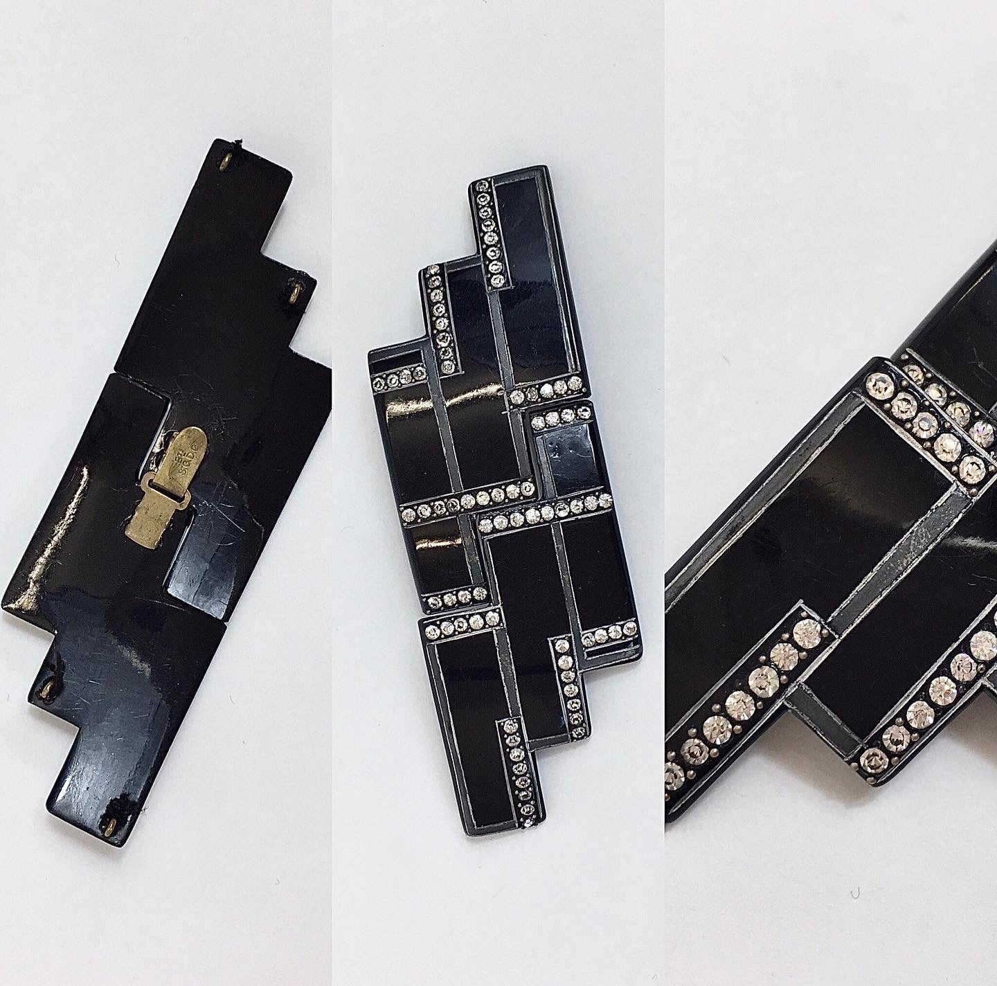 Original 1920's / 1930's Large Art Deco Buckle - With Stunning Deco Lines and Paste Details