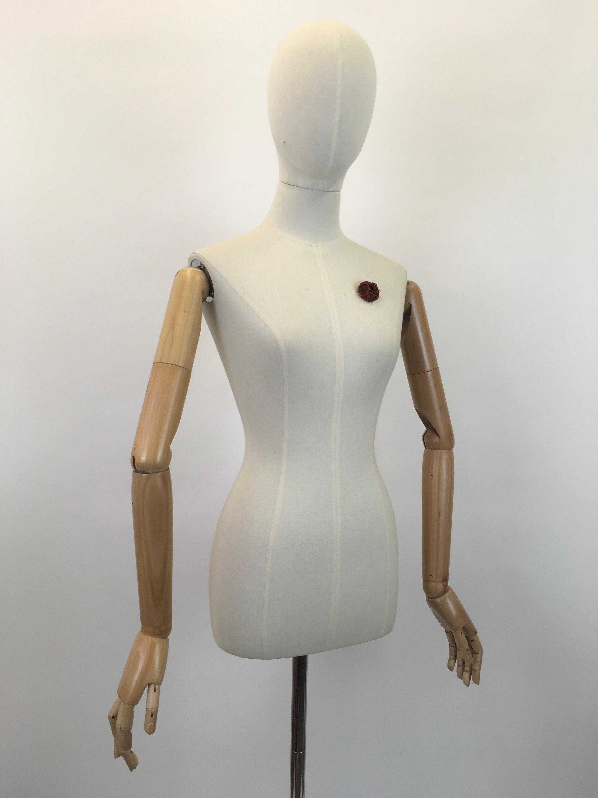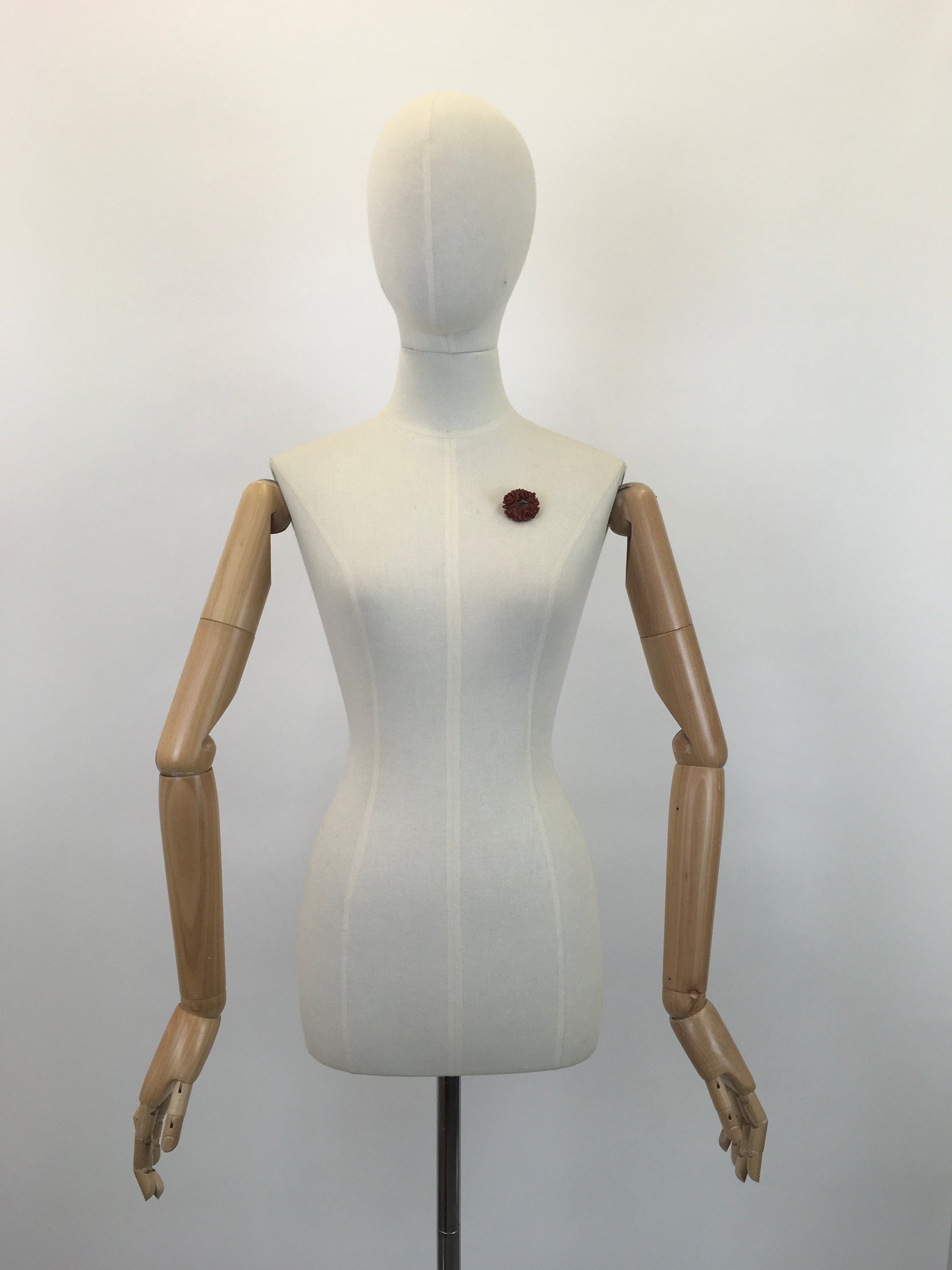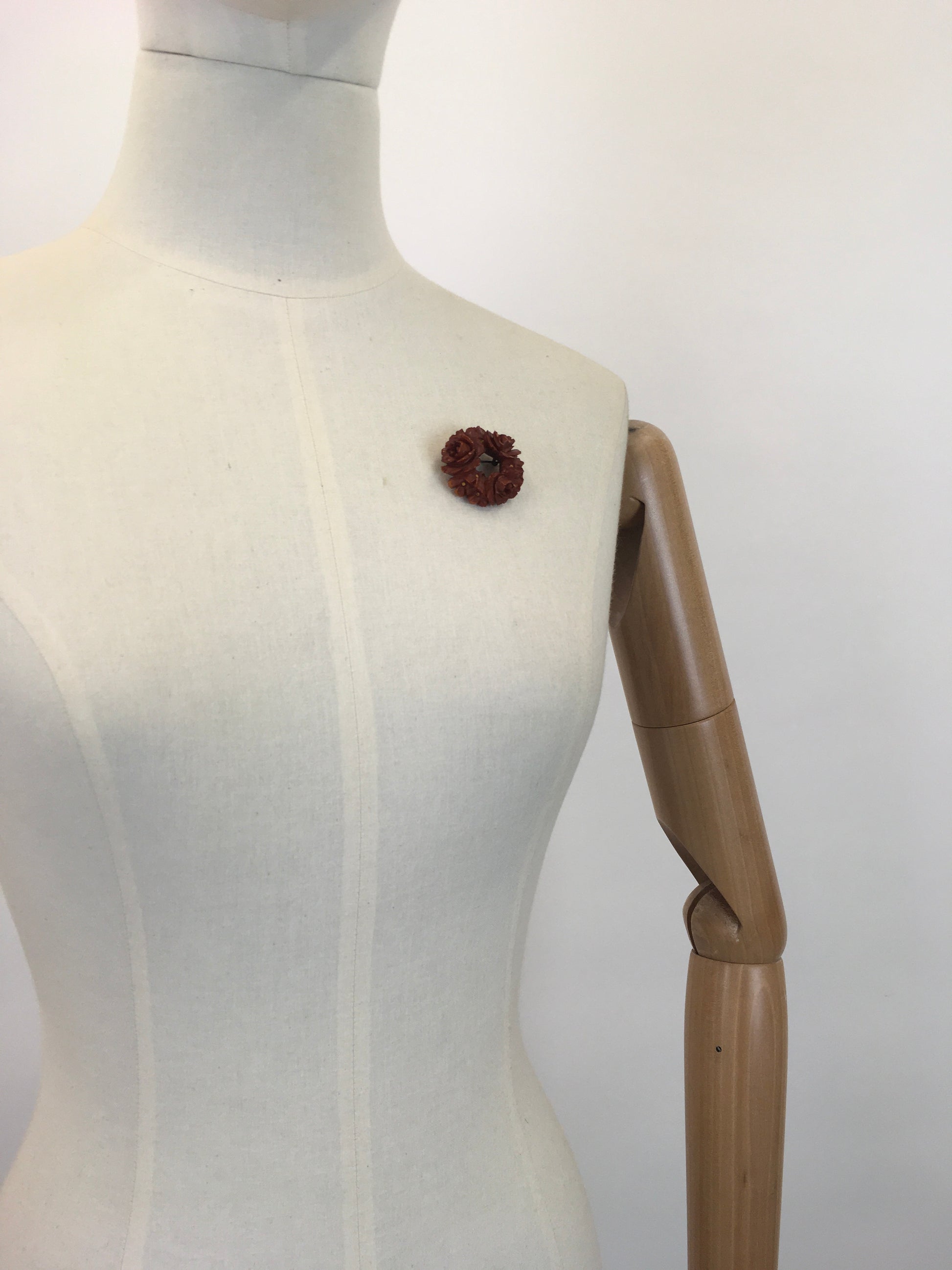 Vintage 1930's darling celluloid floral brooch in a warming brown. This is a beautifully tactile piece and has lovely carved work. Measuring 1.5' in diameter this piece makes a lovely statement on the lapel of a jacket, cardigan or dress.