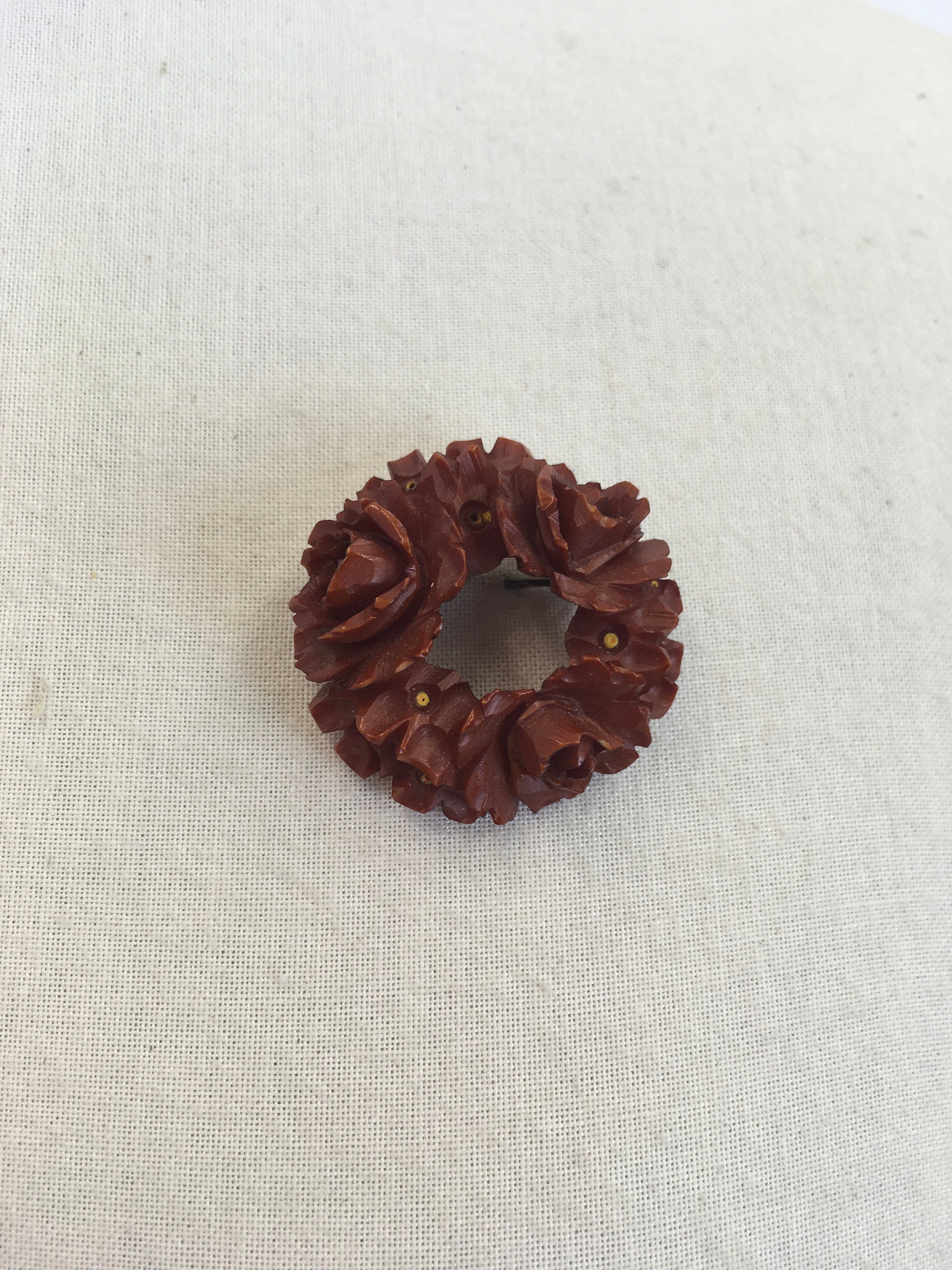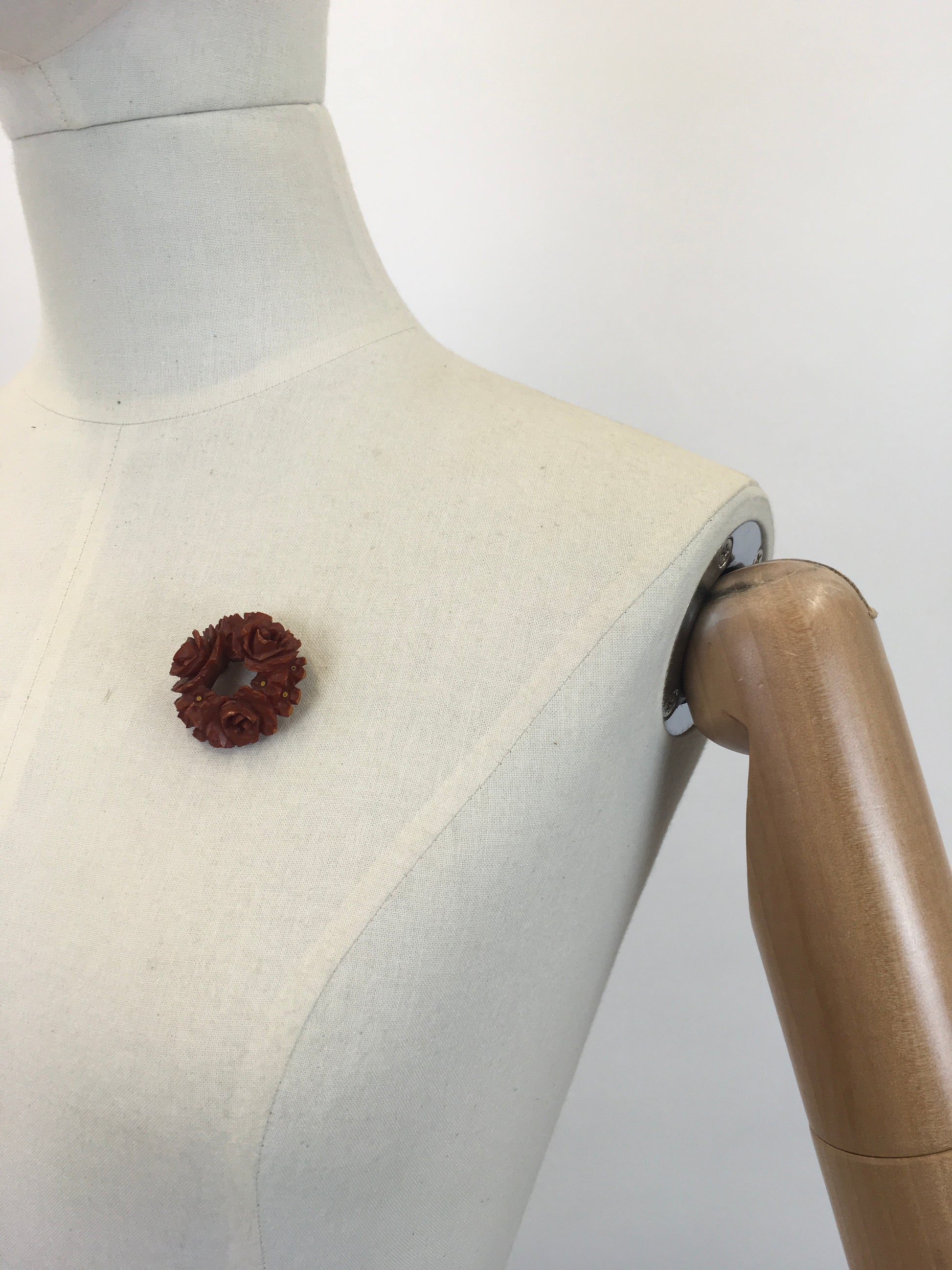 Original 1930's Darling Celluloid Floral Brooch - In A Warming Brown
