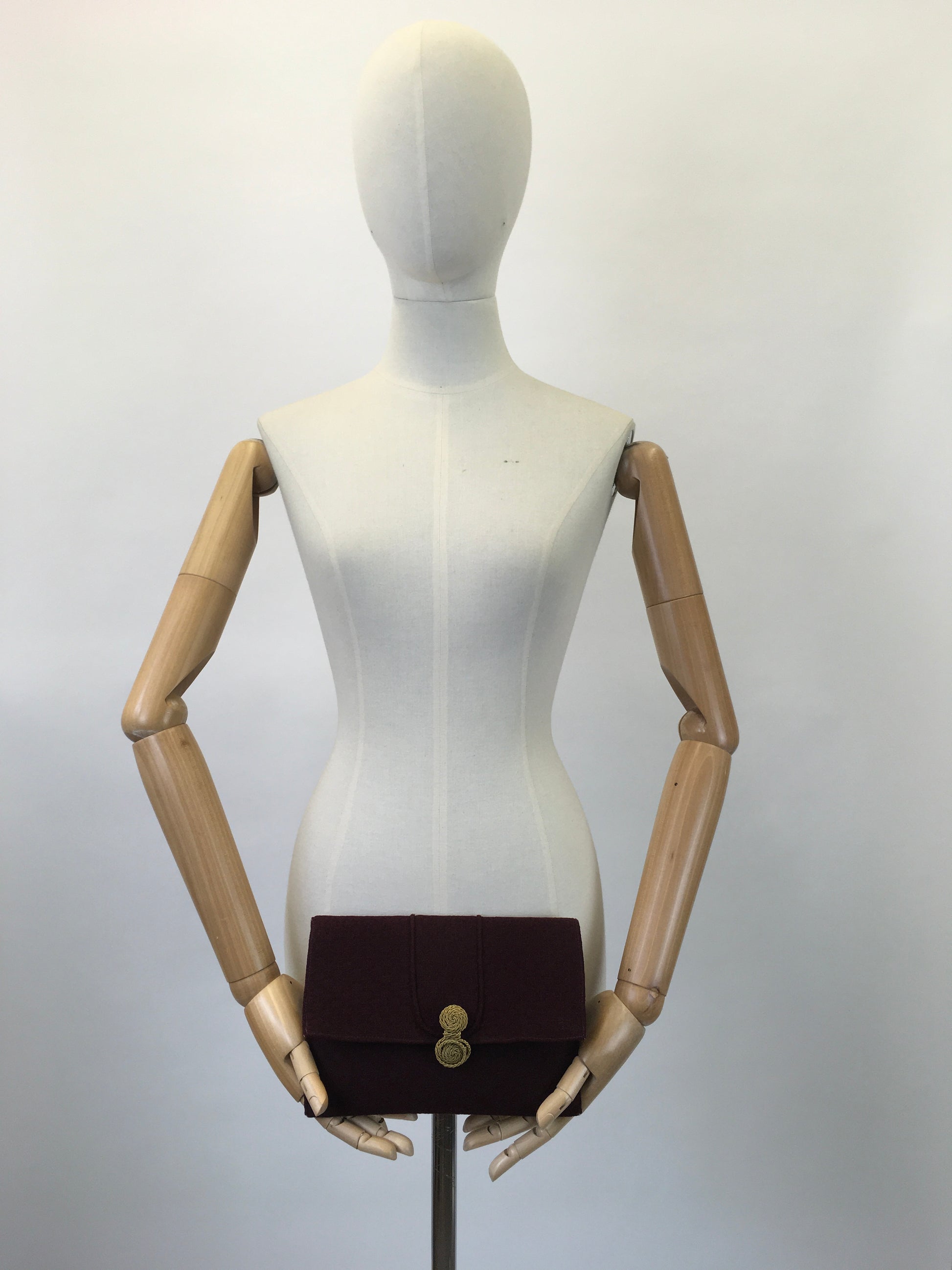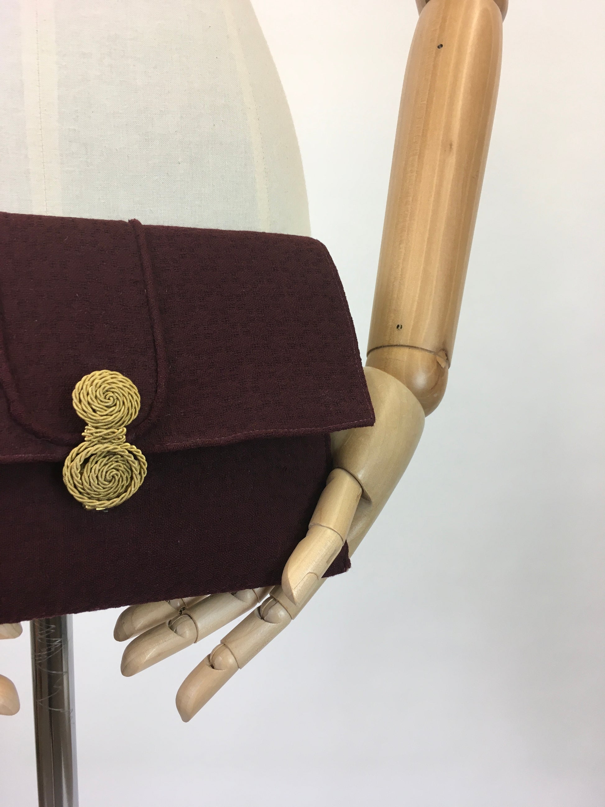 Original Darling 1930's Textured Crepe Clutch Bag - In A Deep Wine With Gold Clasp