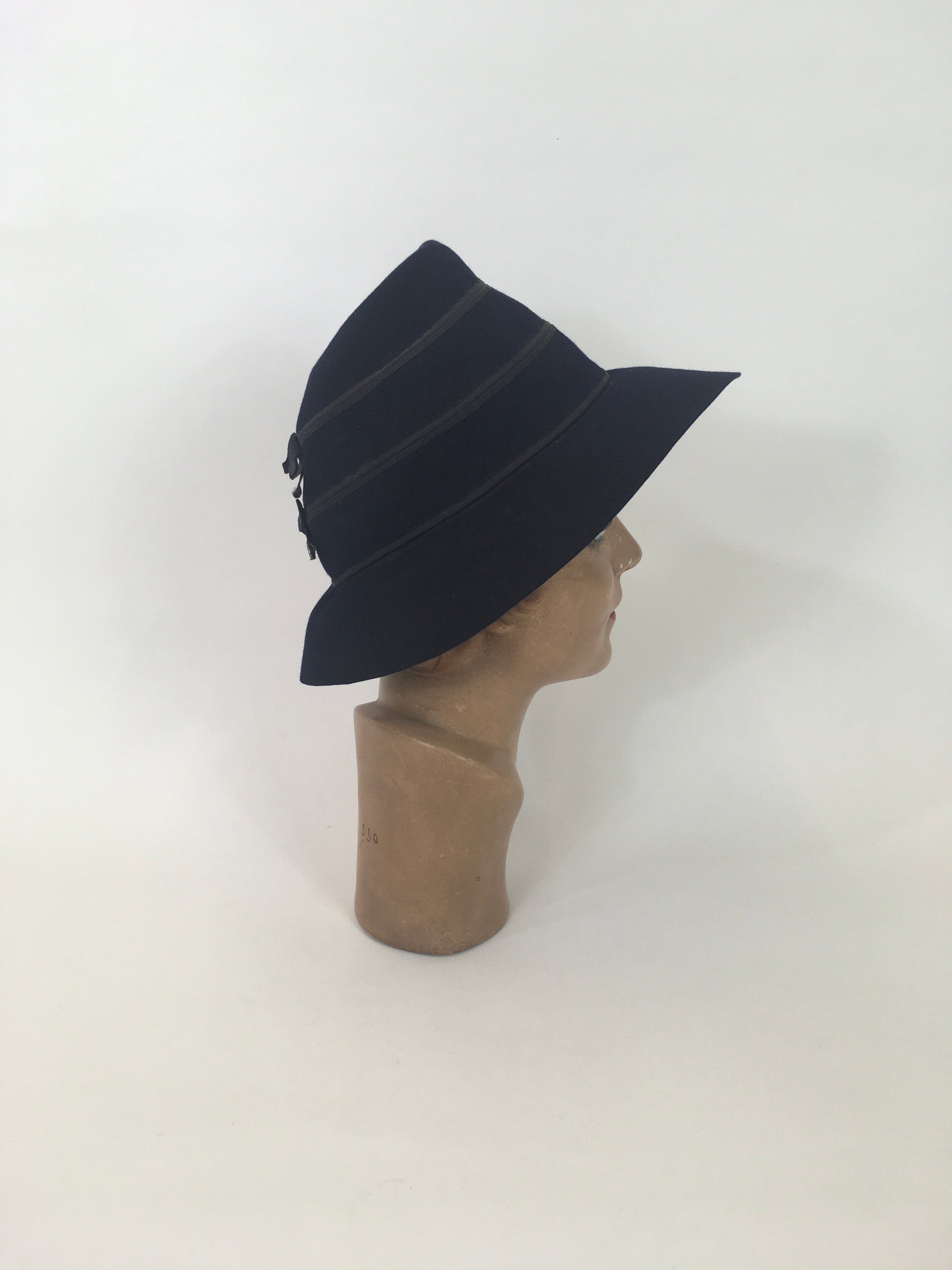 Original 1930’s / 1940’s Fedora Hat with Bow Detailing - In A Deep Navy
