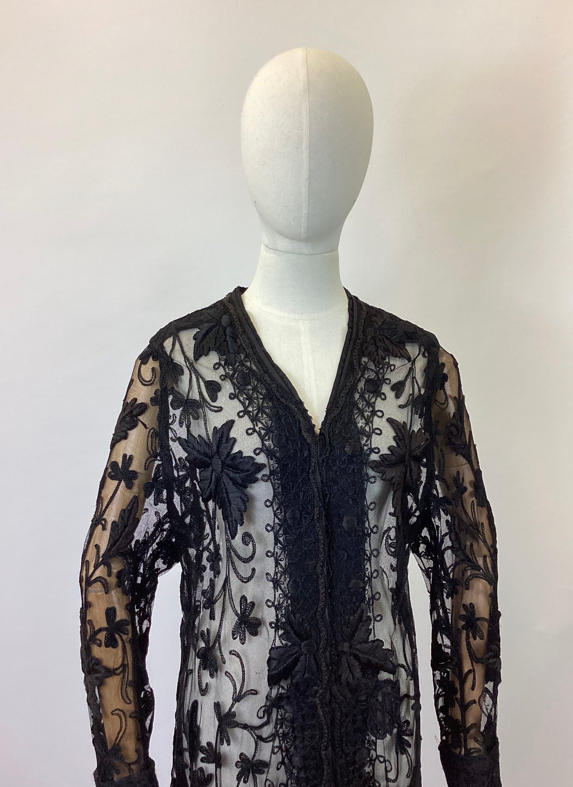Antique 1910’s Exquisite Coat in black sheer lace.