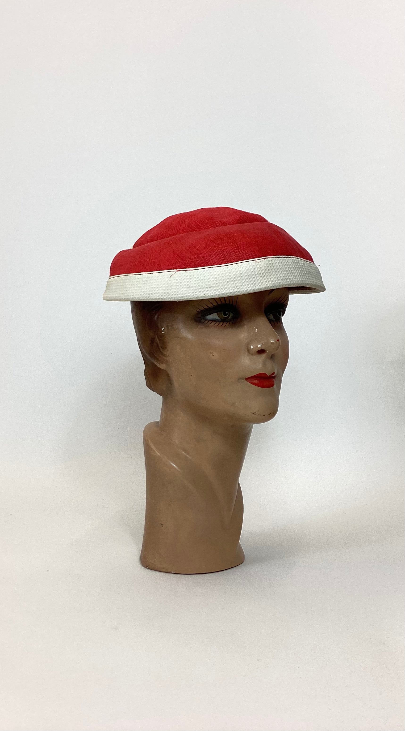 Vintage 50’s fabulous hat in lipstick Red and Ivory contrast.