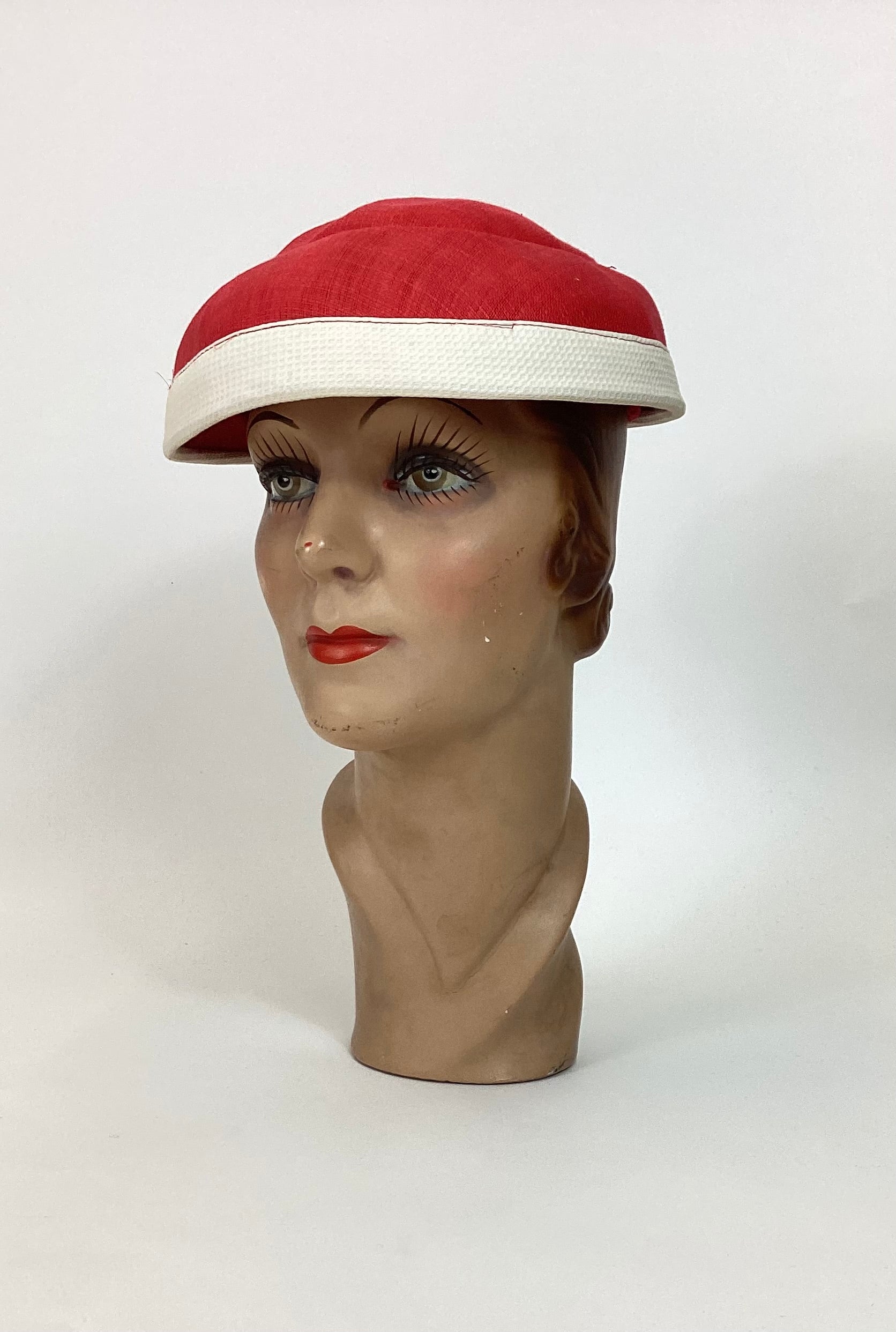 Original 50’s Fabulous Hat - Lipstick Red and Ivory contrast.