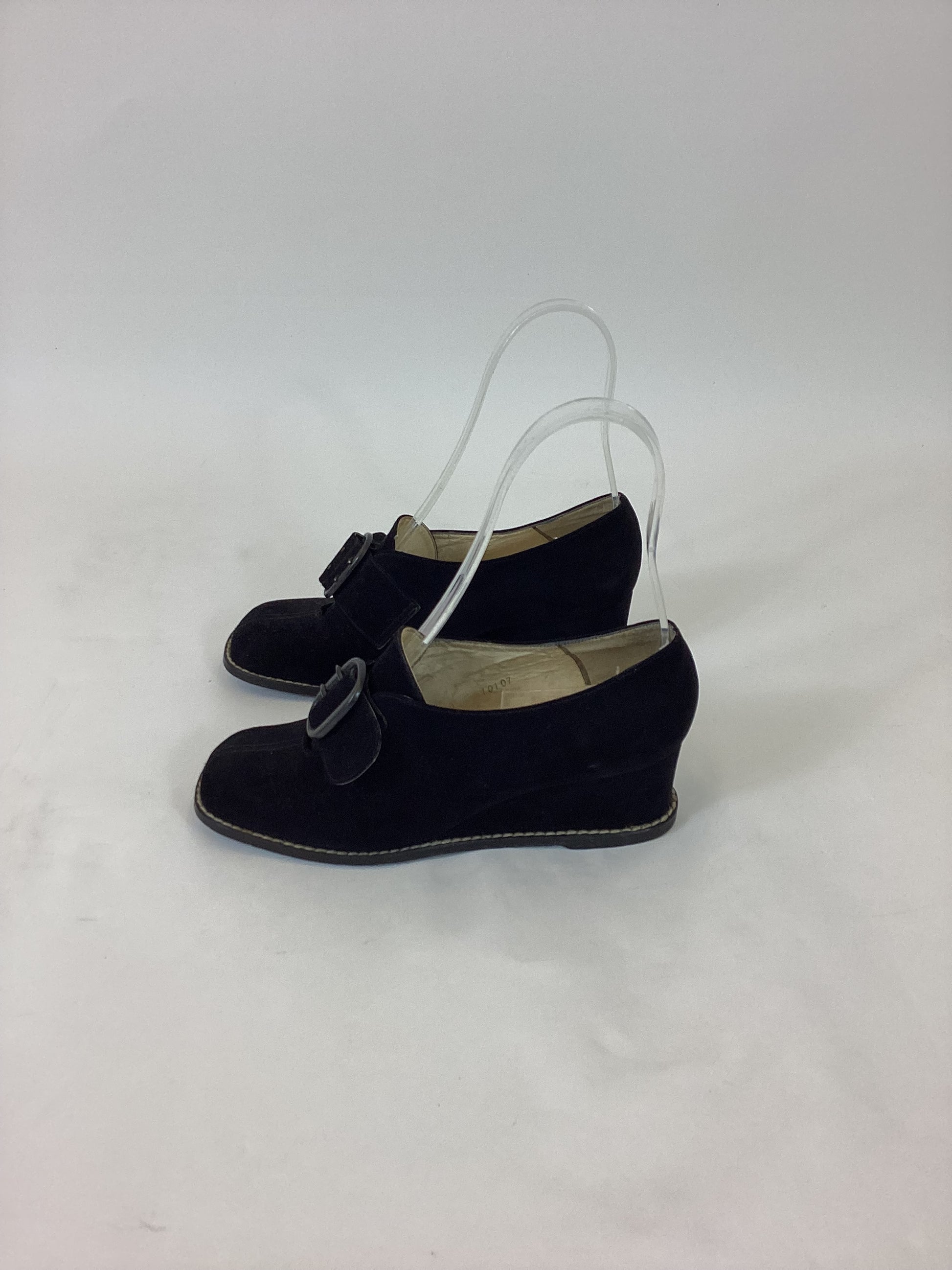 Original 1940’s Gorgeous Wedge Shoes - Black Suede