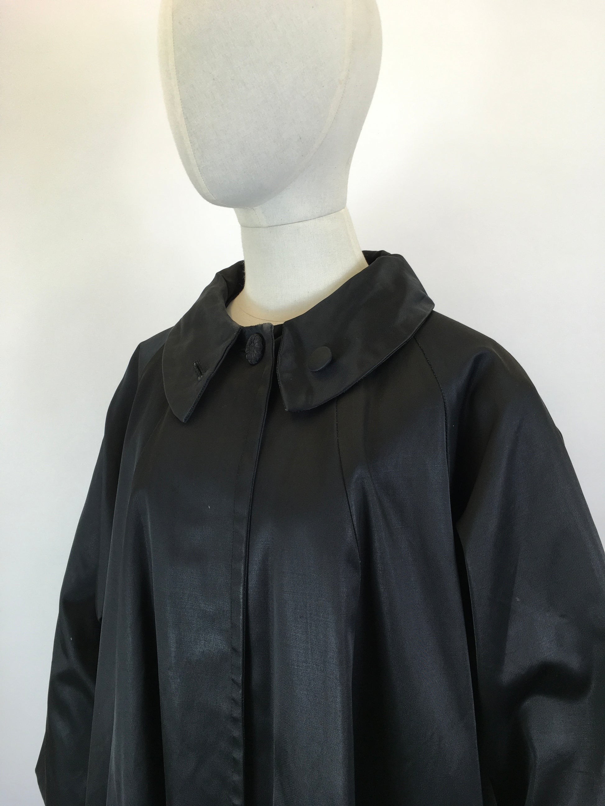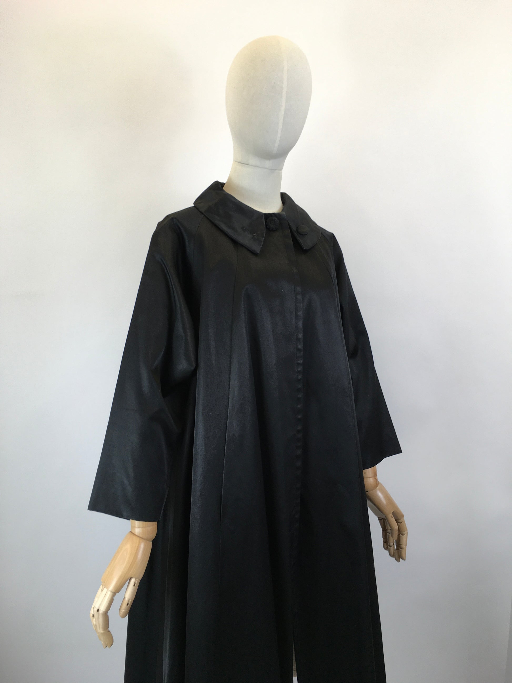Original 1950’s Stunning Black Evening Coat - In A Lush Noir Sateen