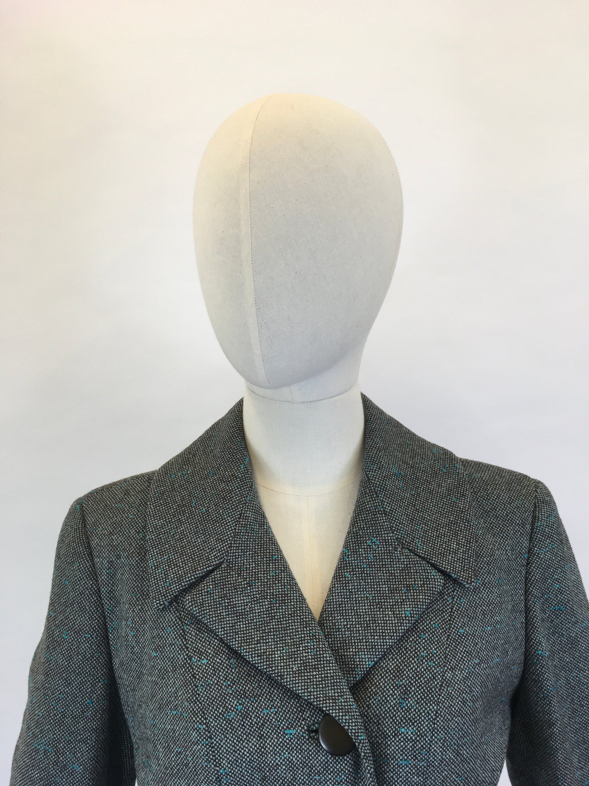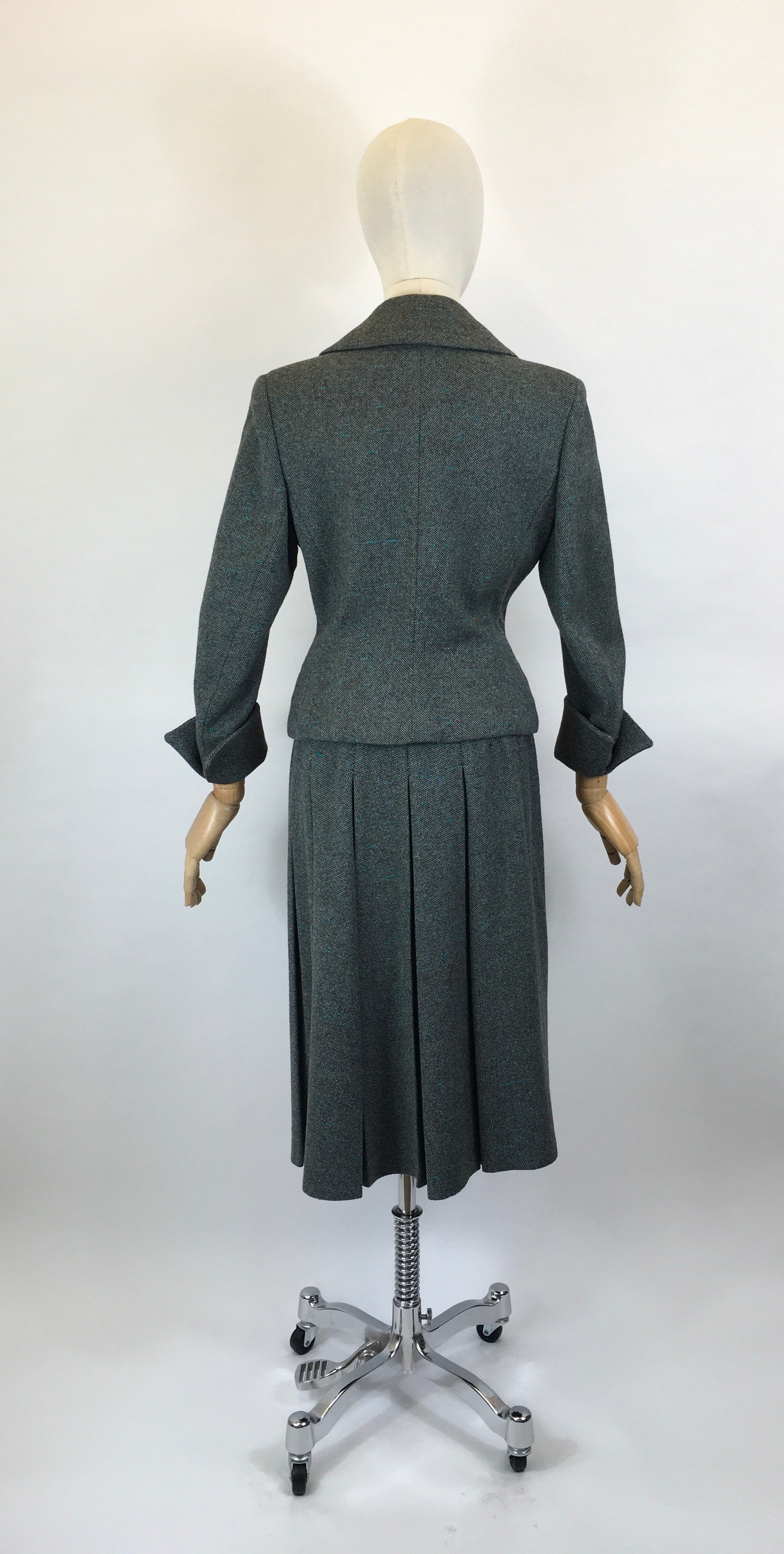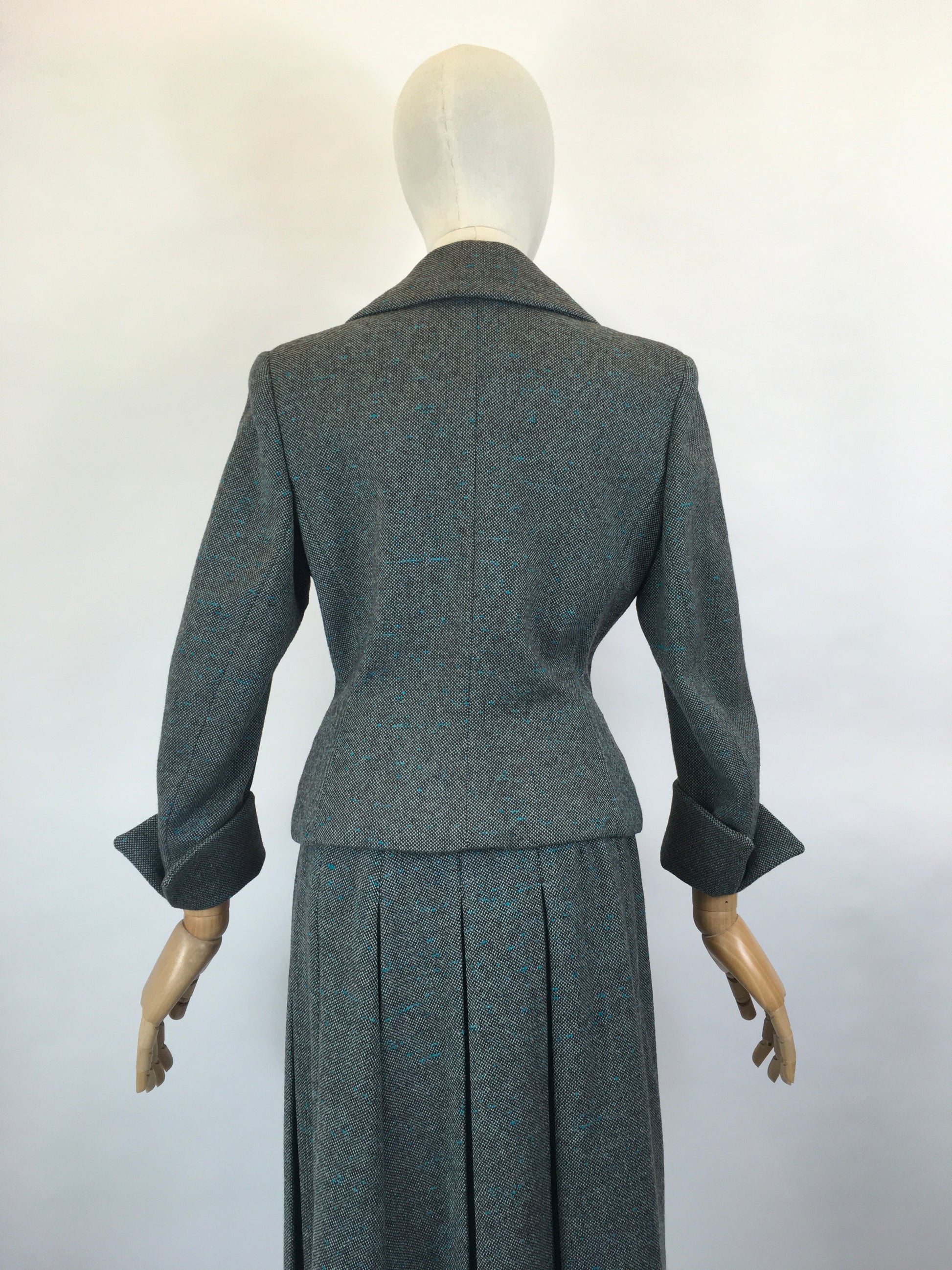 Original late 1940’s 2pc Woollen Suit by ‘ Harella’ - Grey Toned with a Bright Teal Fleck