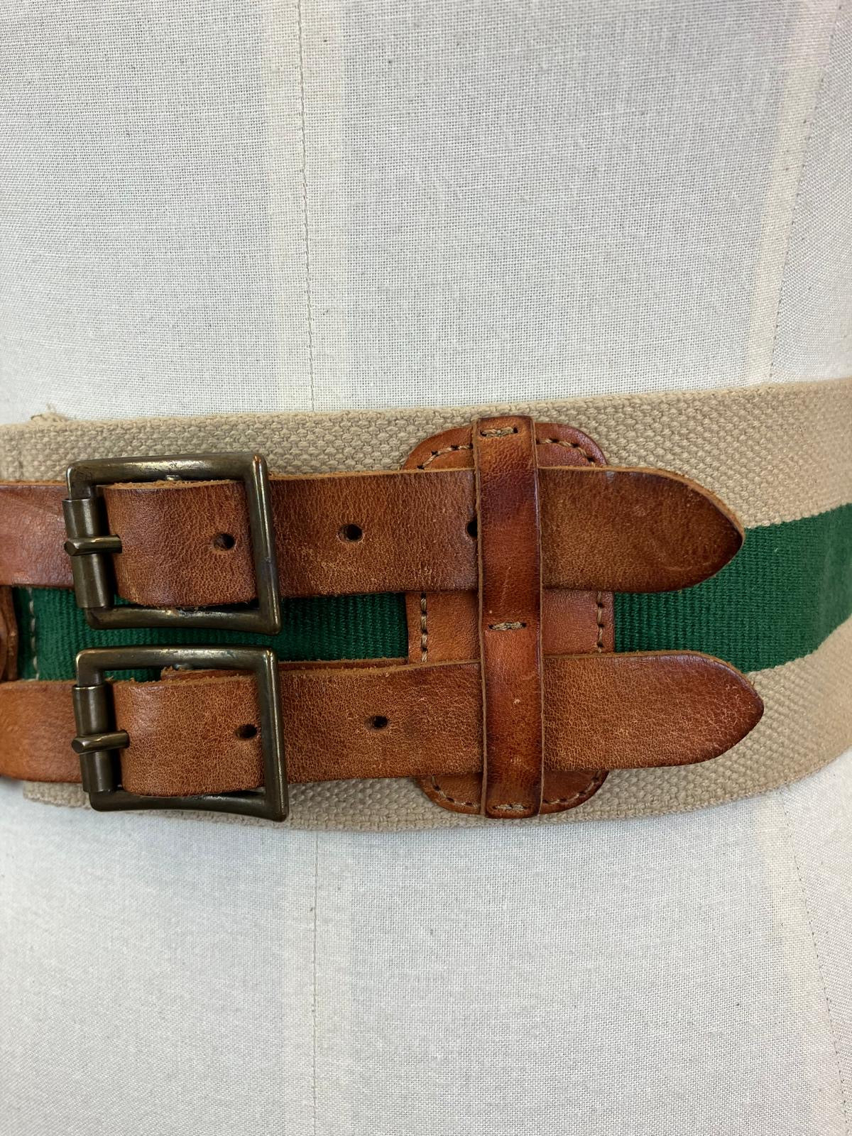 Original 30's/40's Canvas/ Leather Belt - Green and Natural