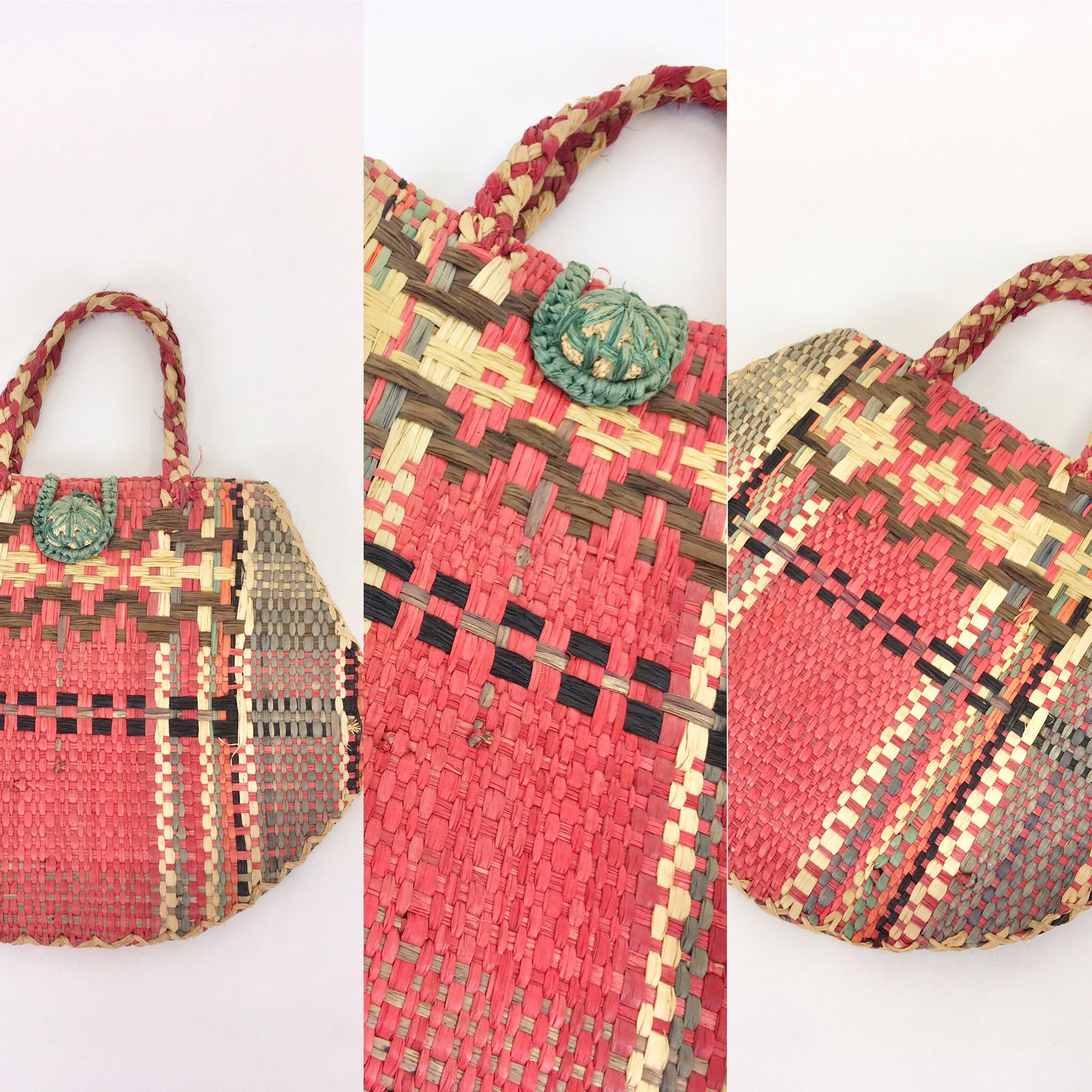Original 1930’s/ 1940’s Raffia Straw Handbag - In Multicoloured Tones