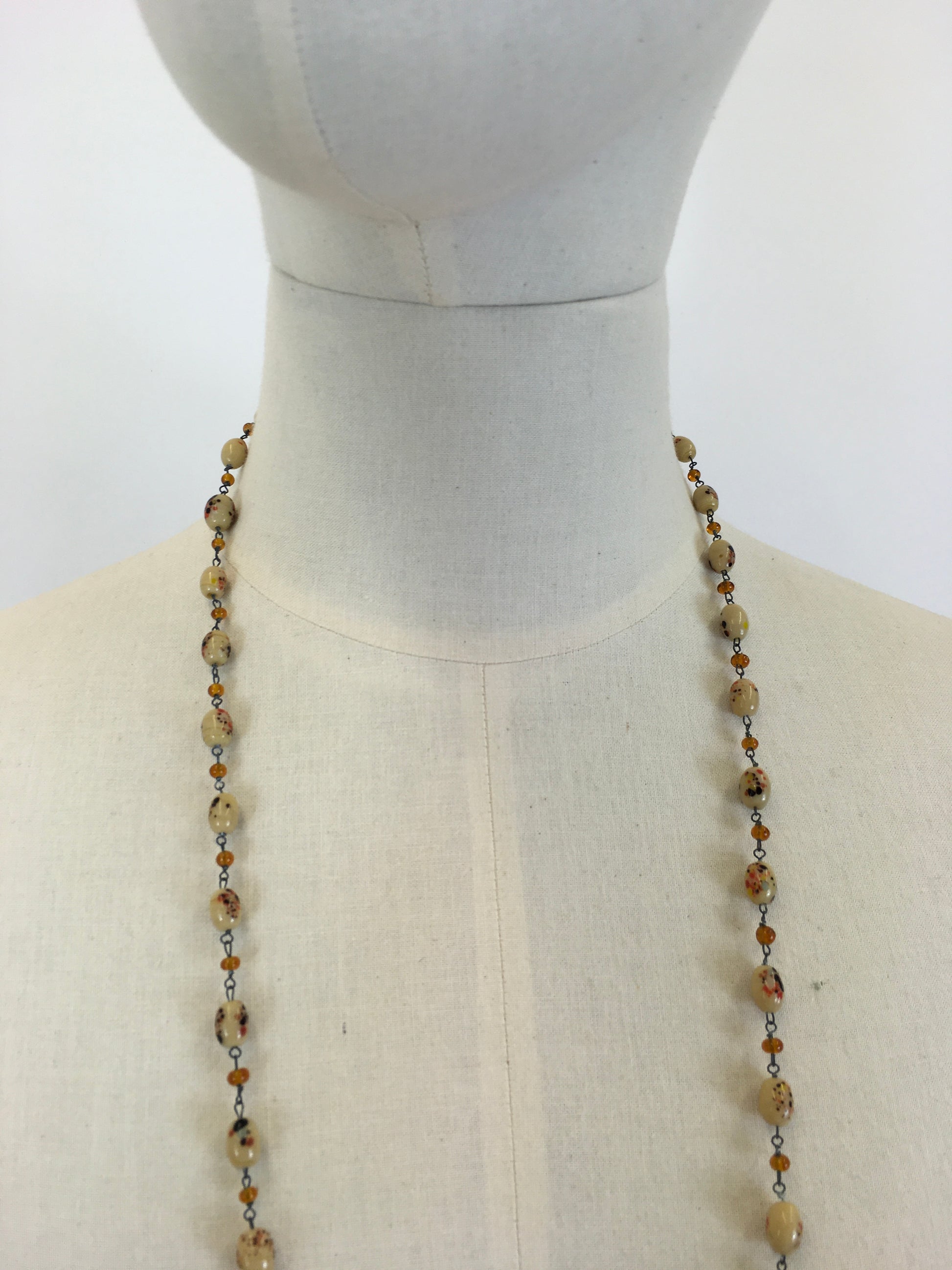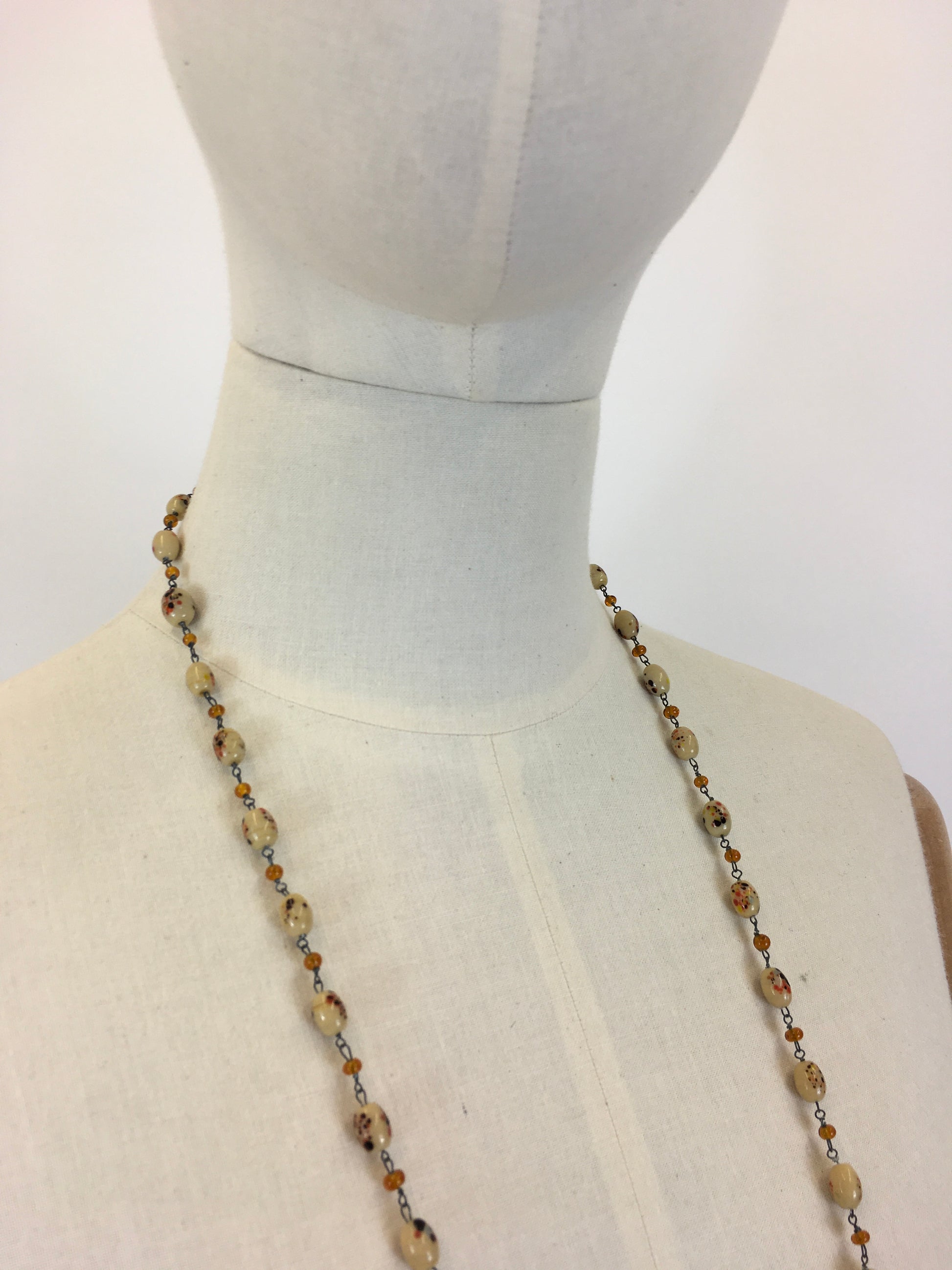 Original 1930’s Beautiful Glass Beaded Necklace - In Shades of Cream, Amber & Black Deco Beads