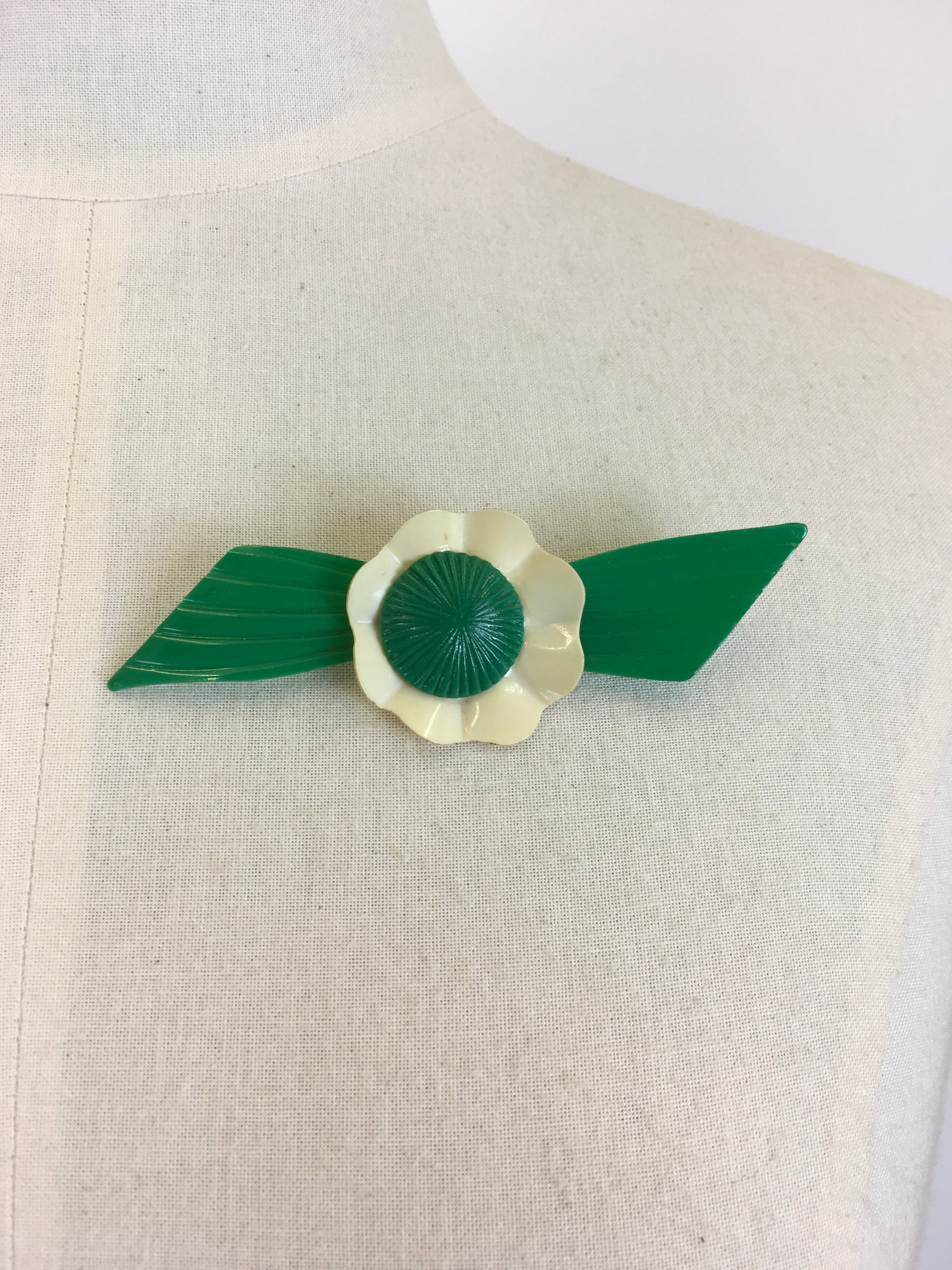 Original 1930’s Celluloid Bar Brooch - In Deco Cream & Green