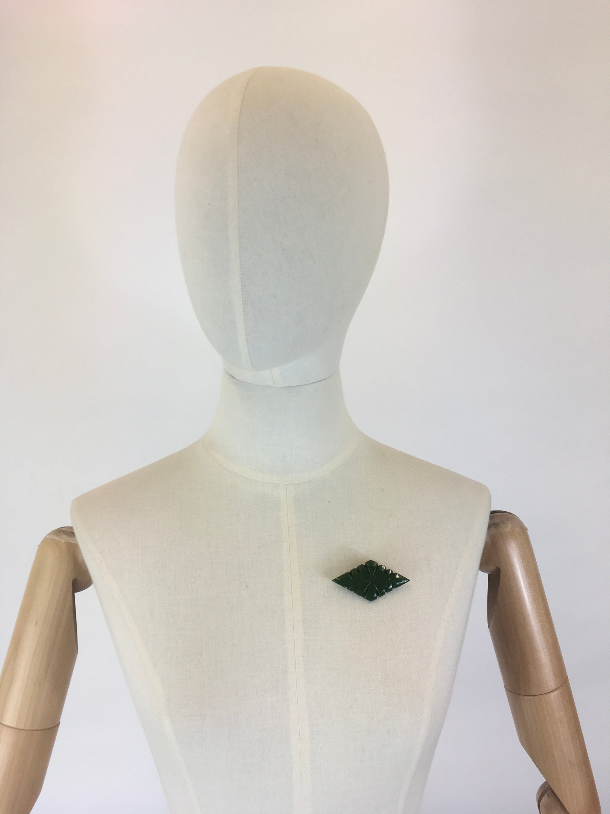 Original late 1940’s early 1950’s Bakelite Leaf Brooch - In Pine Green