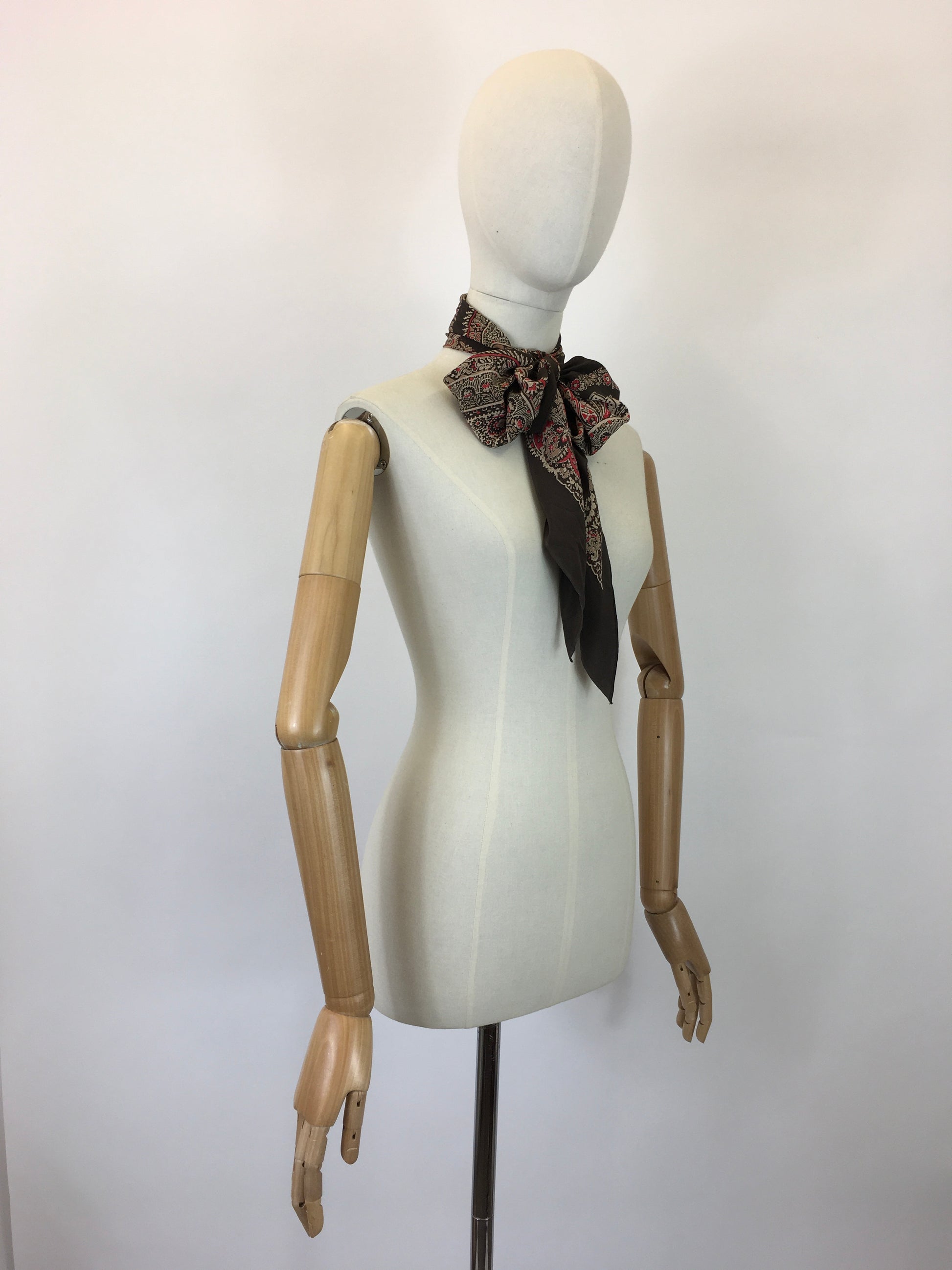 Vintage 1930's stunning deco pointed scarf in autumnal hues of warm browns, creams and berries. Measuring 12 1/2' x 68' total length this piece is joyous and can be worn in multiple ways including round the neck, in a bow, in the hair or even styled as a belt. A stunning piece from from this era which makes a lovely gift or treat to yourself. These are getting so hard to find !