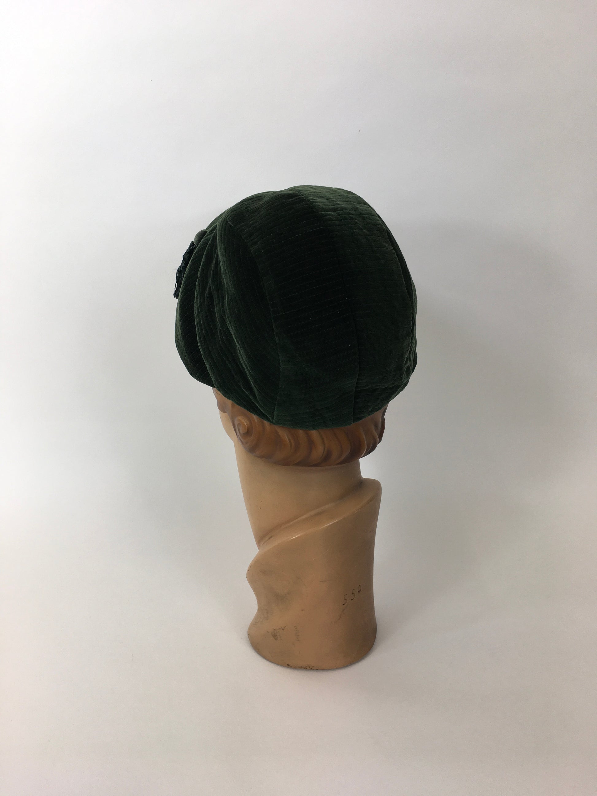 Original 1930’s Fabulous Sportswear Hat - In A Divine Rich Green Velvet with Tassel