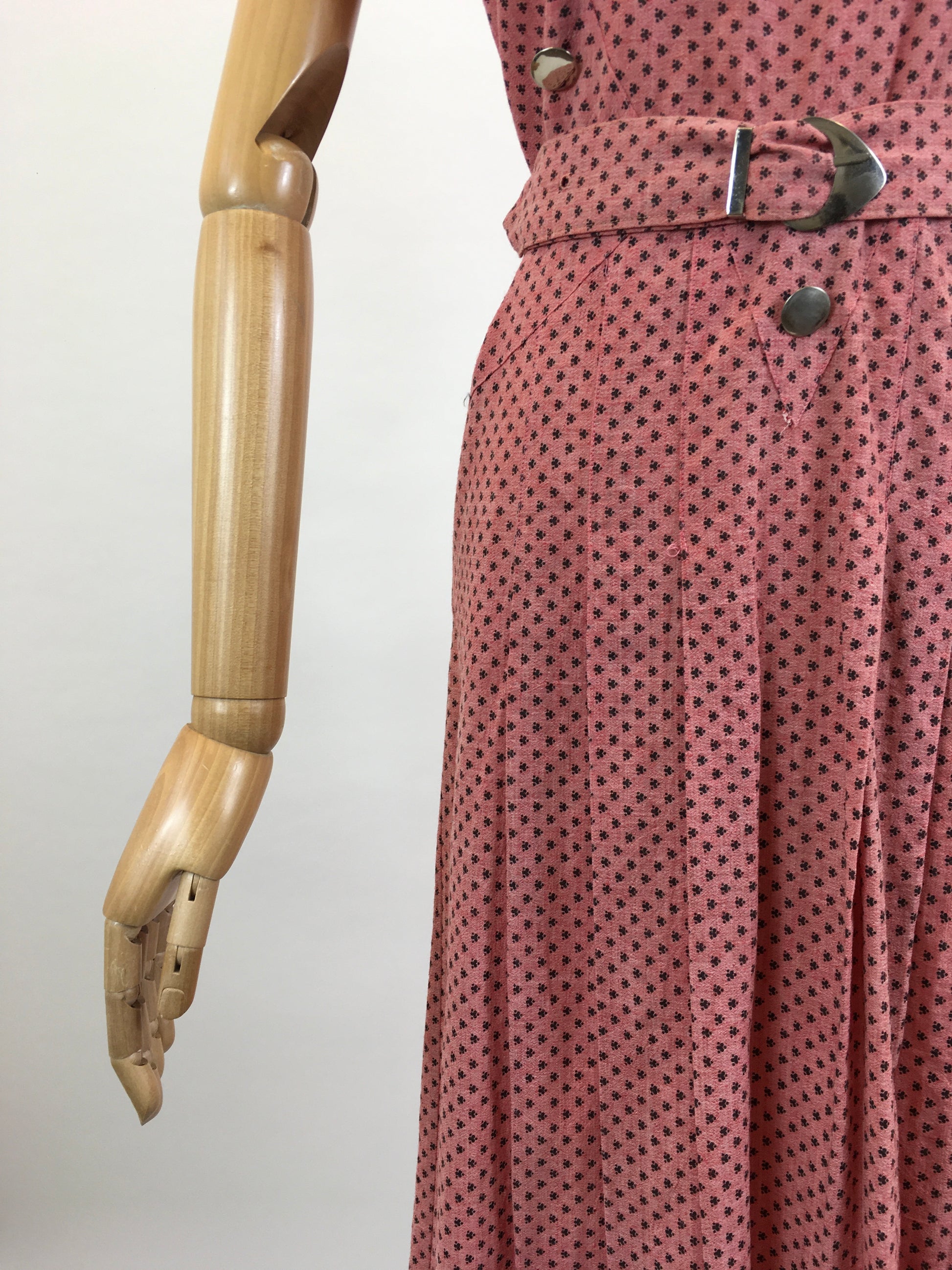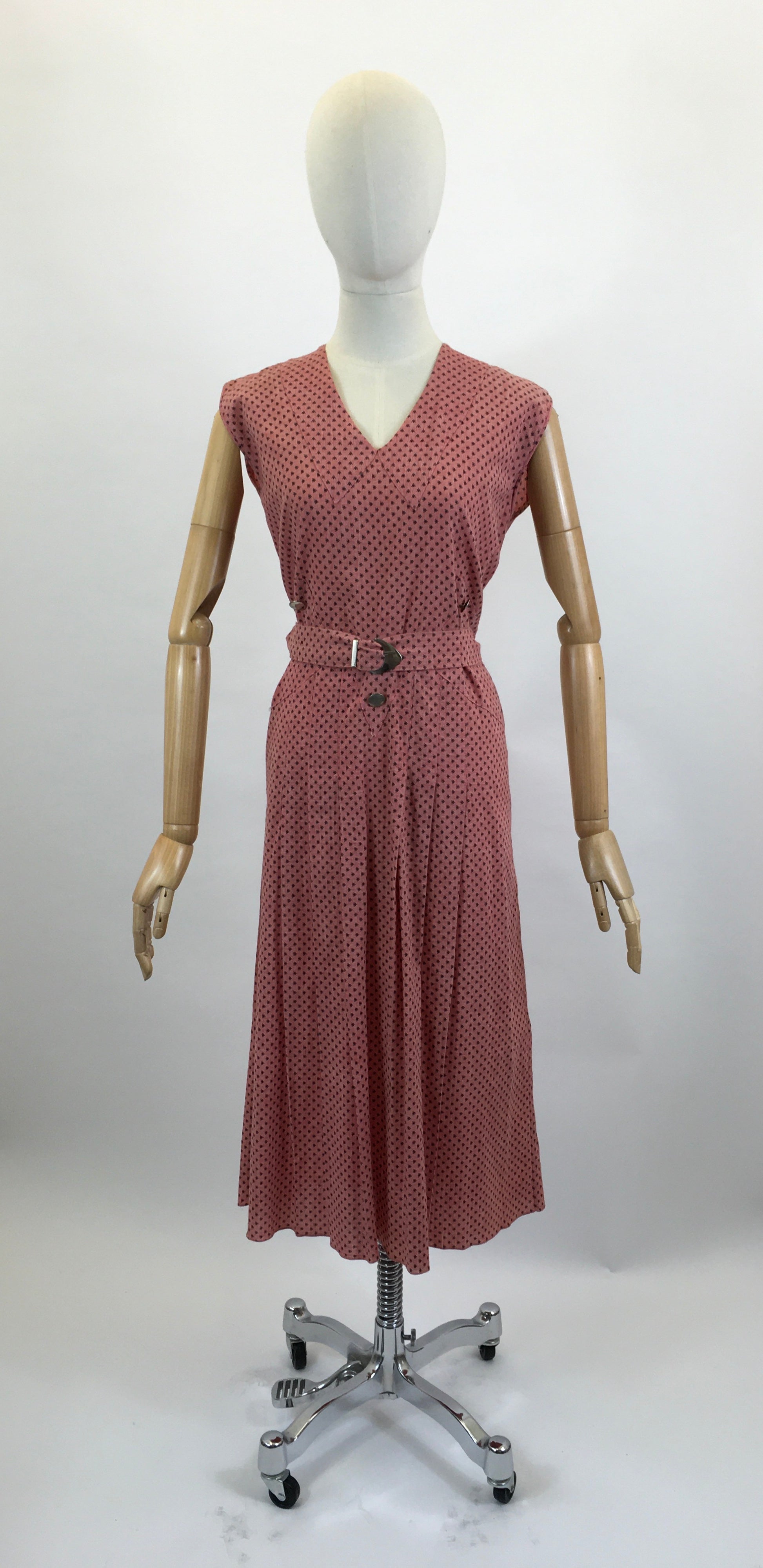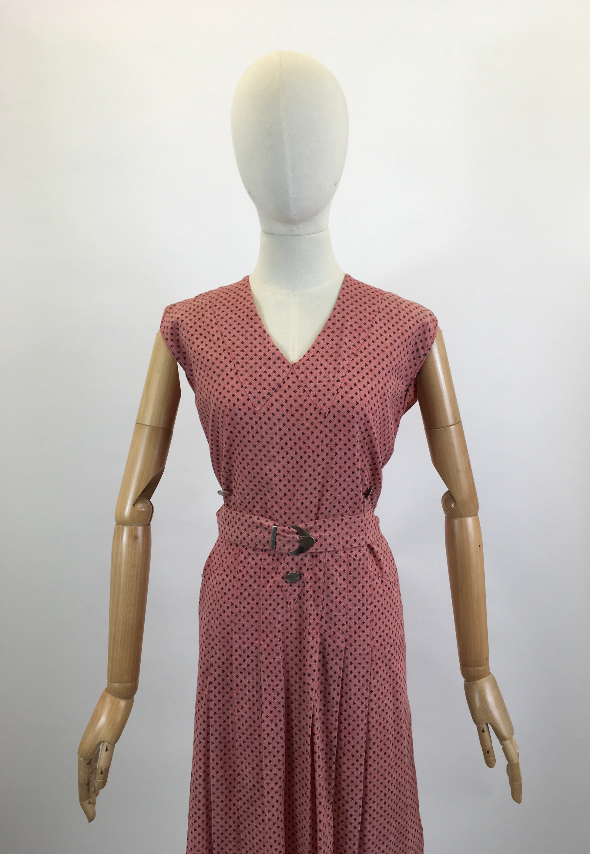 Original Late 1930's Beautiful dress - in Coral Pink with original belt