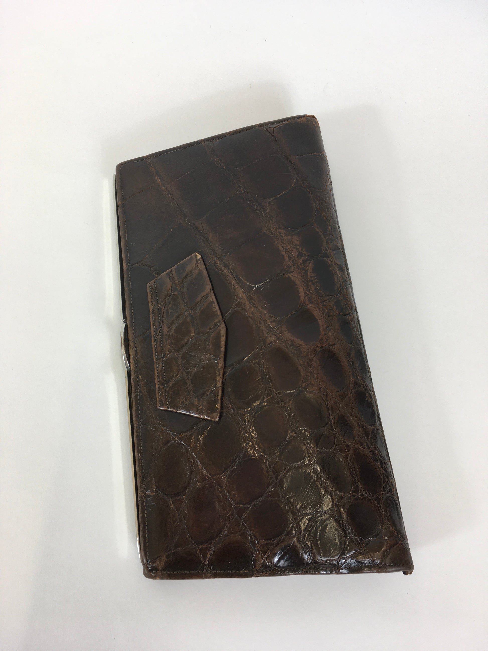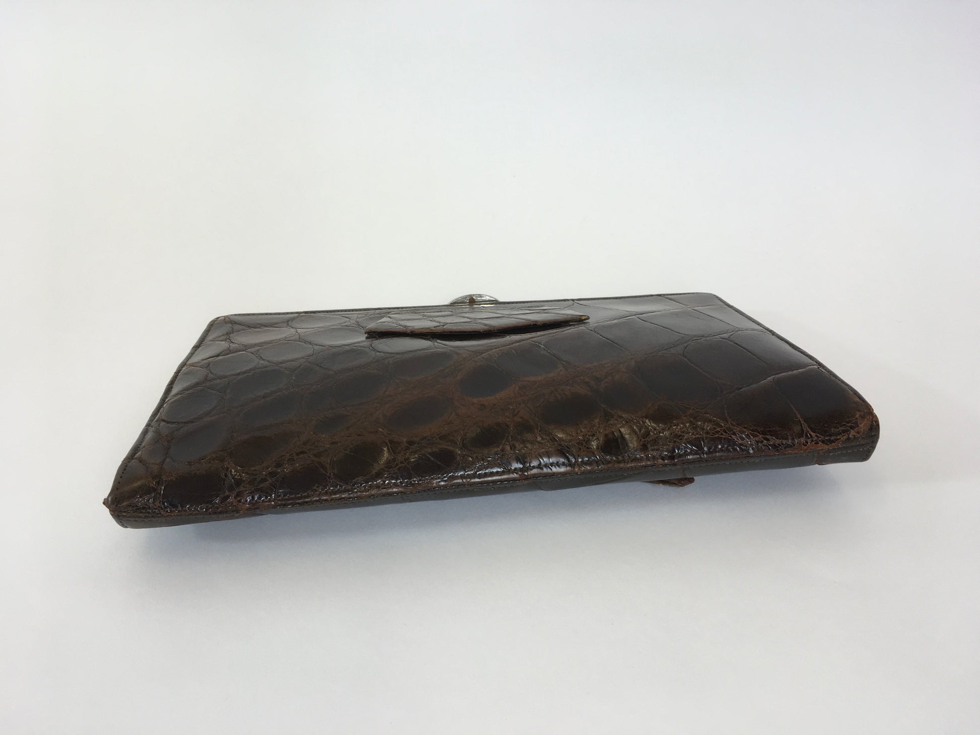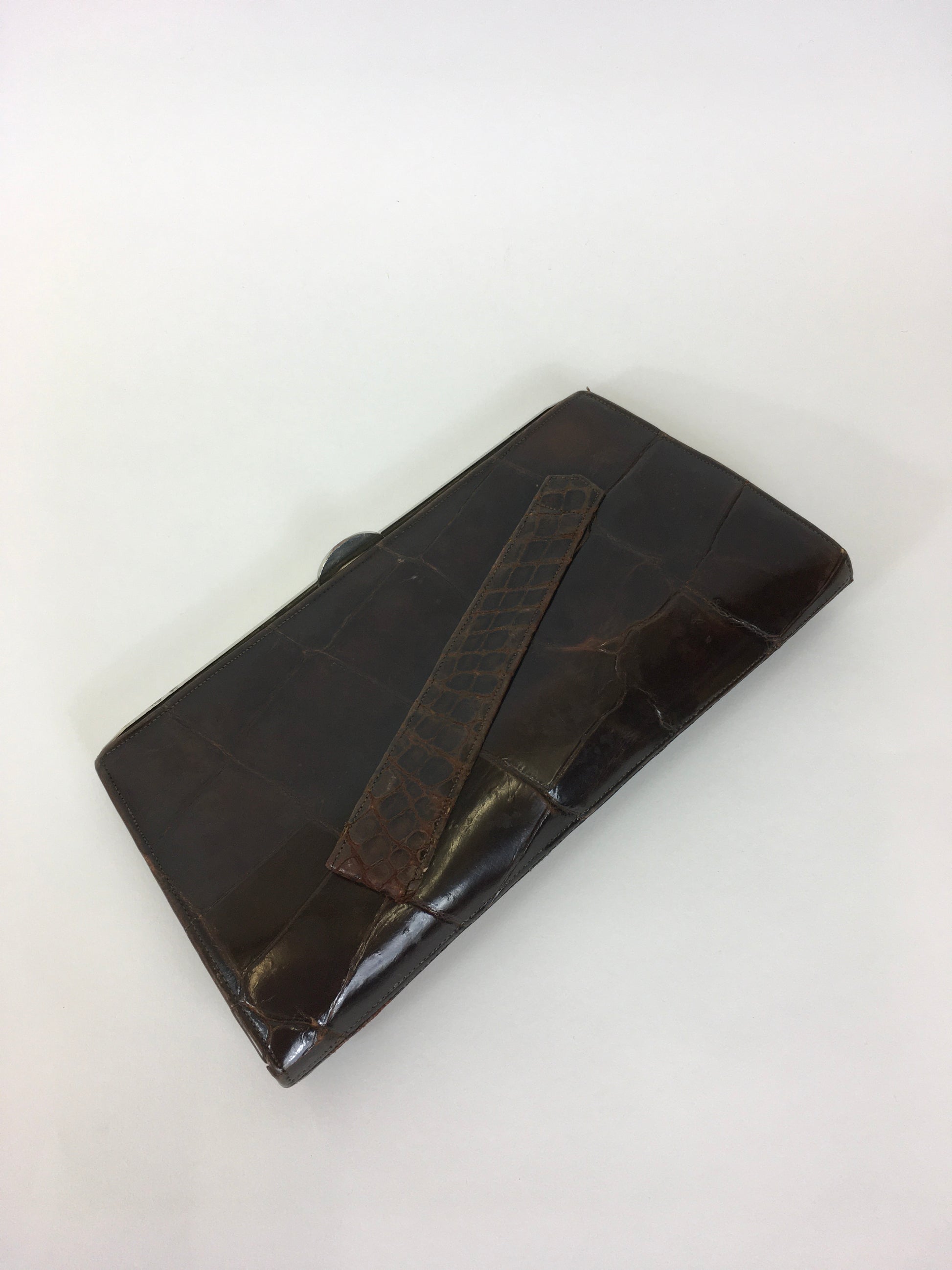 Original 1930’s Deco Crocodile Clutch Handbag - In A Warm Brown with Chrome Detailing